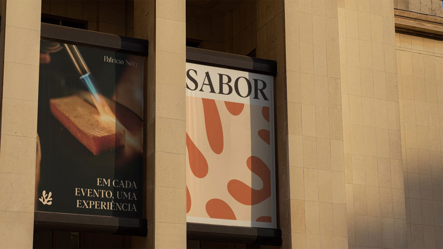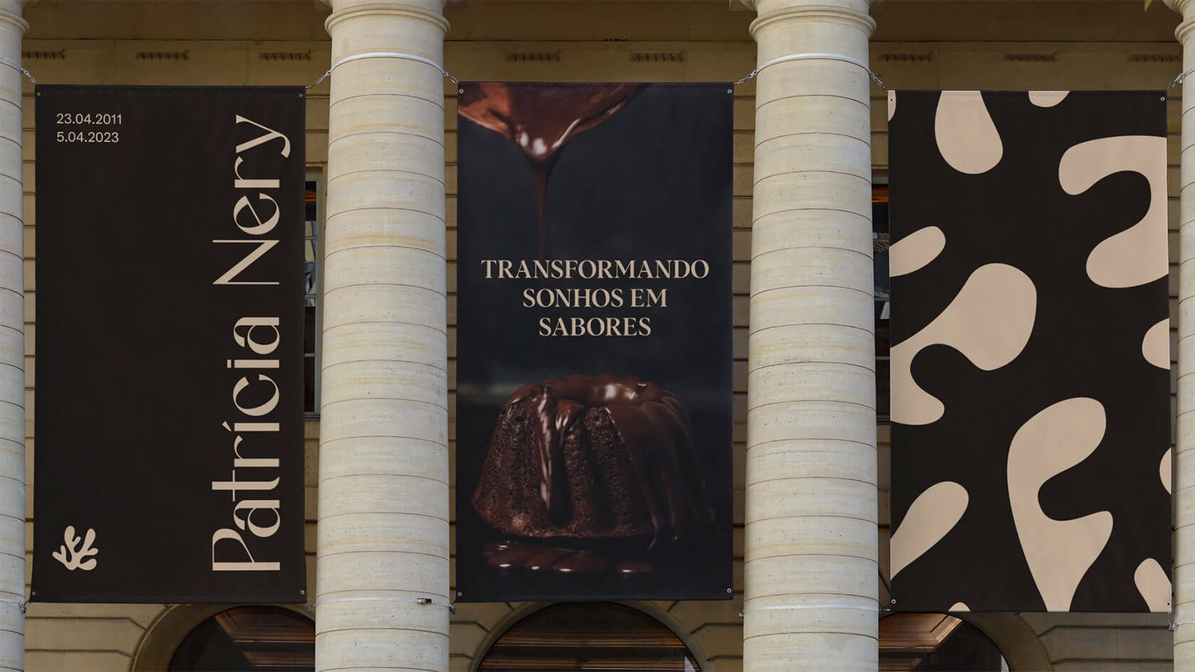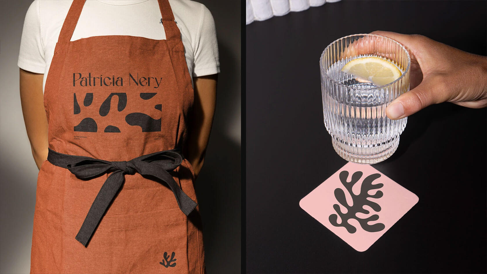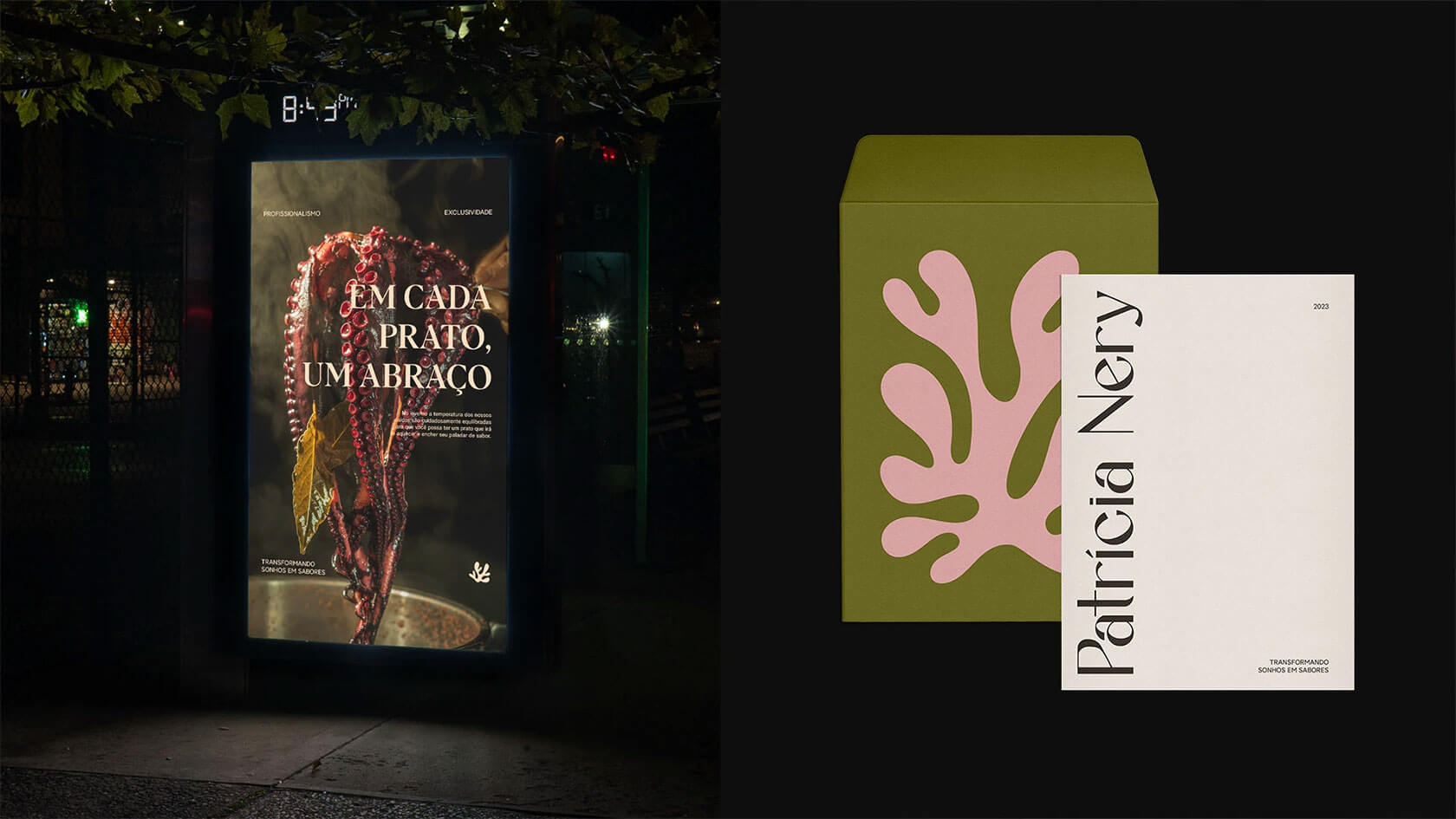 Organic shapes introduce rhythm and movement, hinting at the sensory flow of cooking while adding a contemporary edge to the layouts. These forms appear across posters, stationery, packaging and large scale applications, creating a sense of cohesion without rigidity. Matheus and Guilherme describe the identity as “a way to connect food with feeling.” And it works, capturing the duality at the heart of Patrícia’s work: refined technique and heartfelt care, presented with a modern touch.
