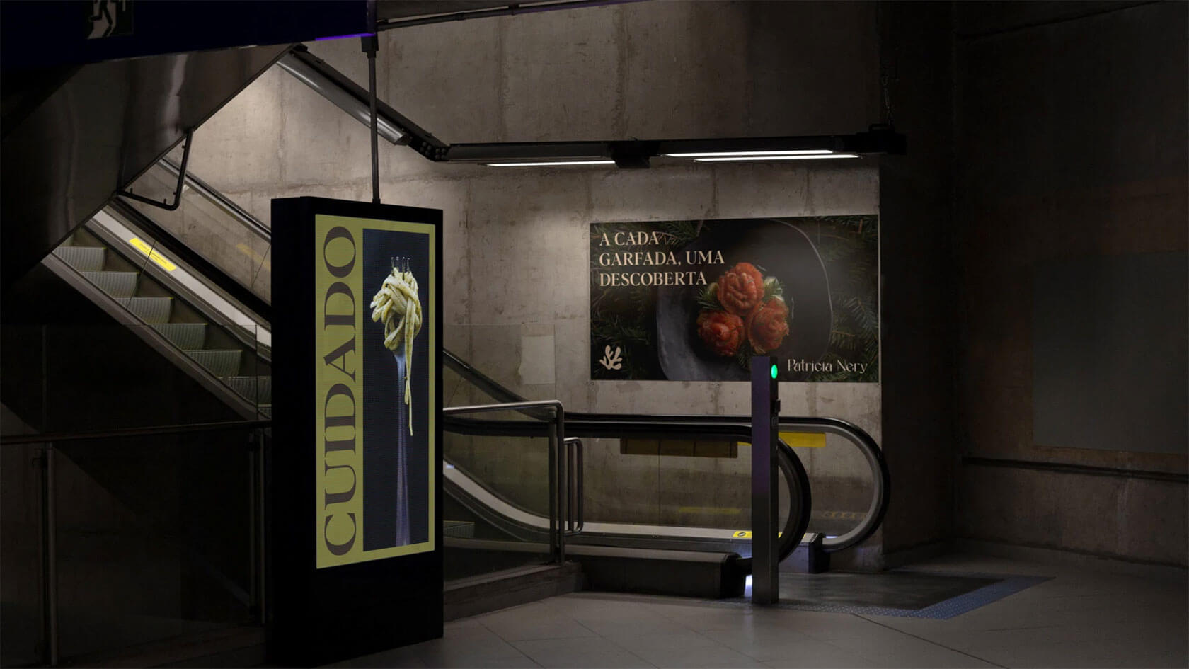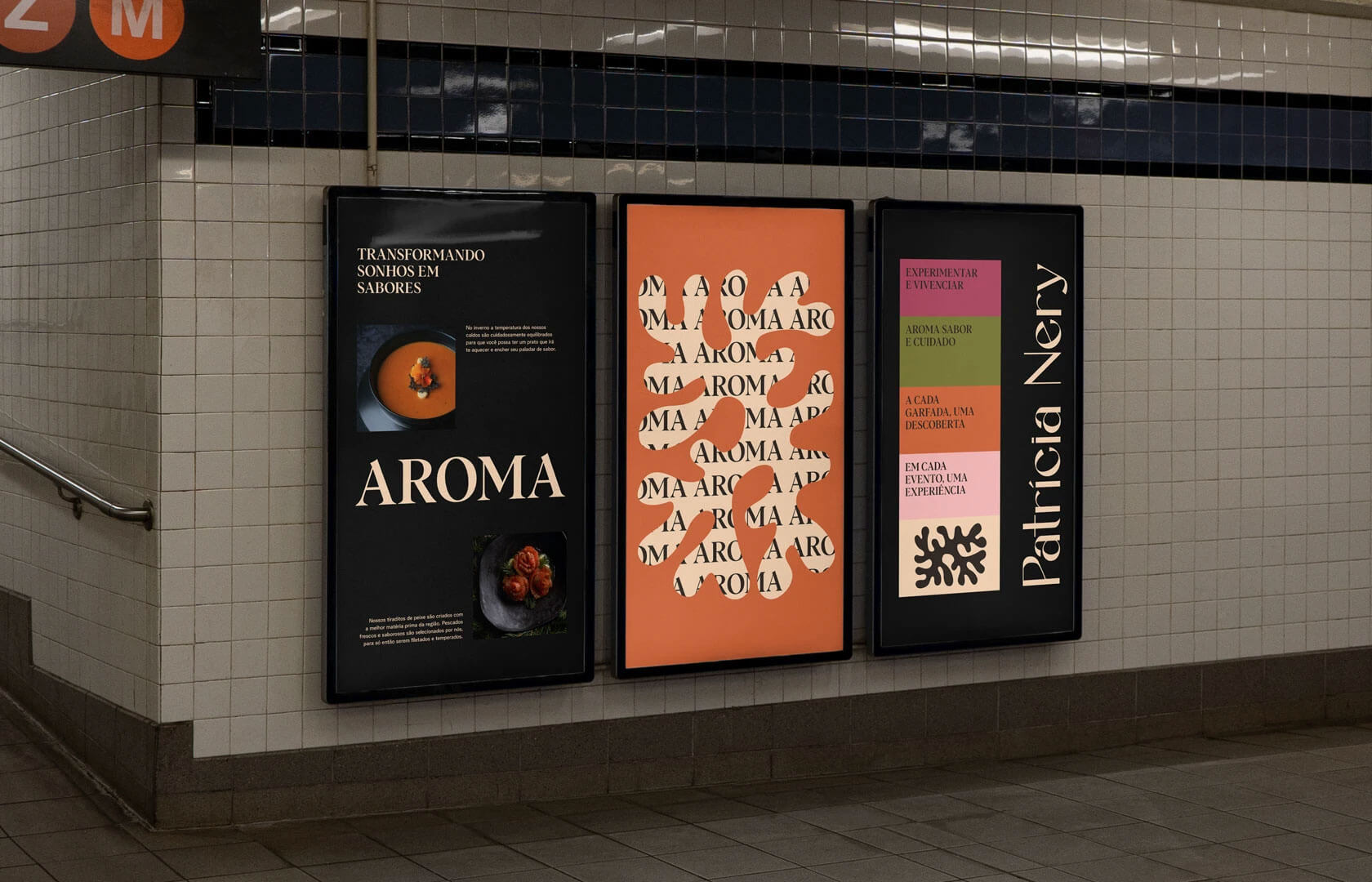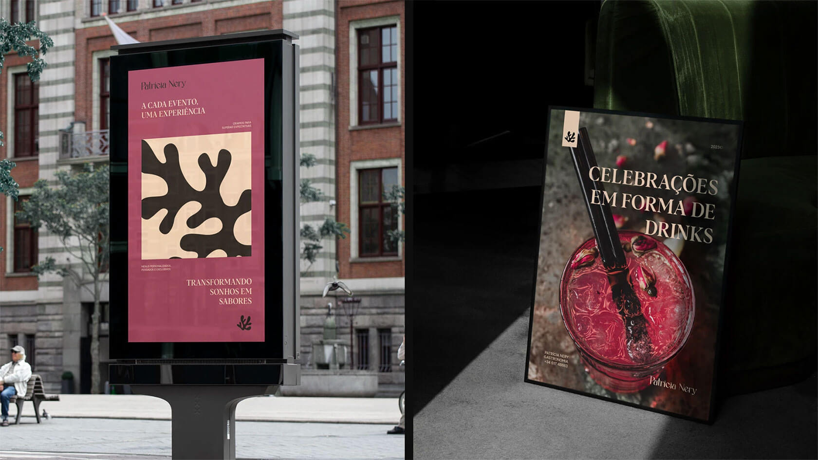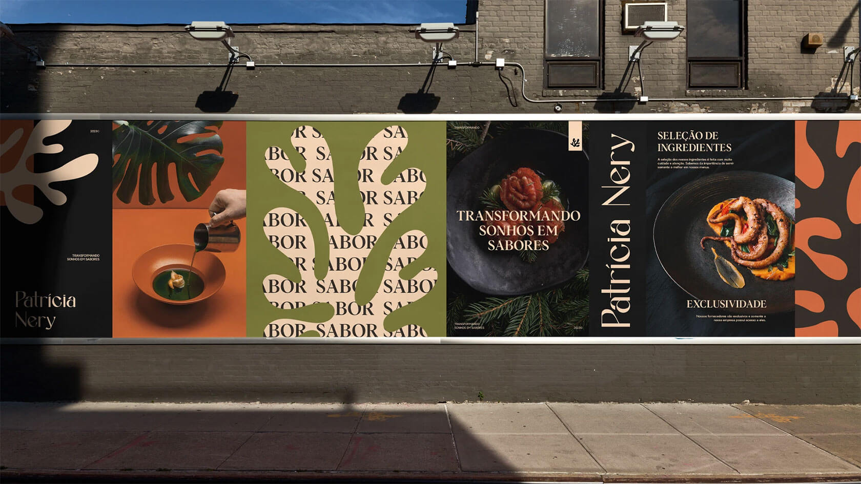 Organic shapes introduce rhythm and movement, hinting at the sensory flow of cooking while adding a contemporary edge to the layouts. These forms appear across posters, stationery, packaging and large scale applications, creating a sense of cohesion without rigidity. Matheus and Guilherme describe the identity as “a way to connect food with feeling.” And it works, capturing the duality at the heart of Patrícia’s work: refined technique and heartfelt care, presented with a modern touch.