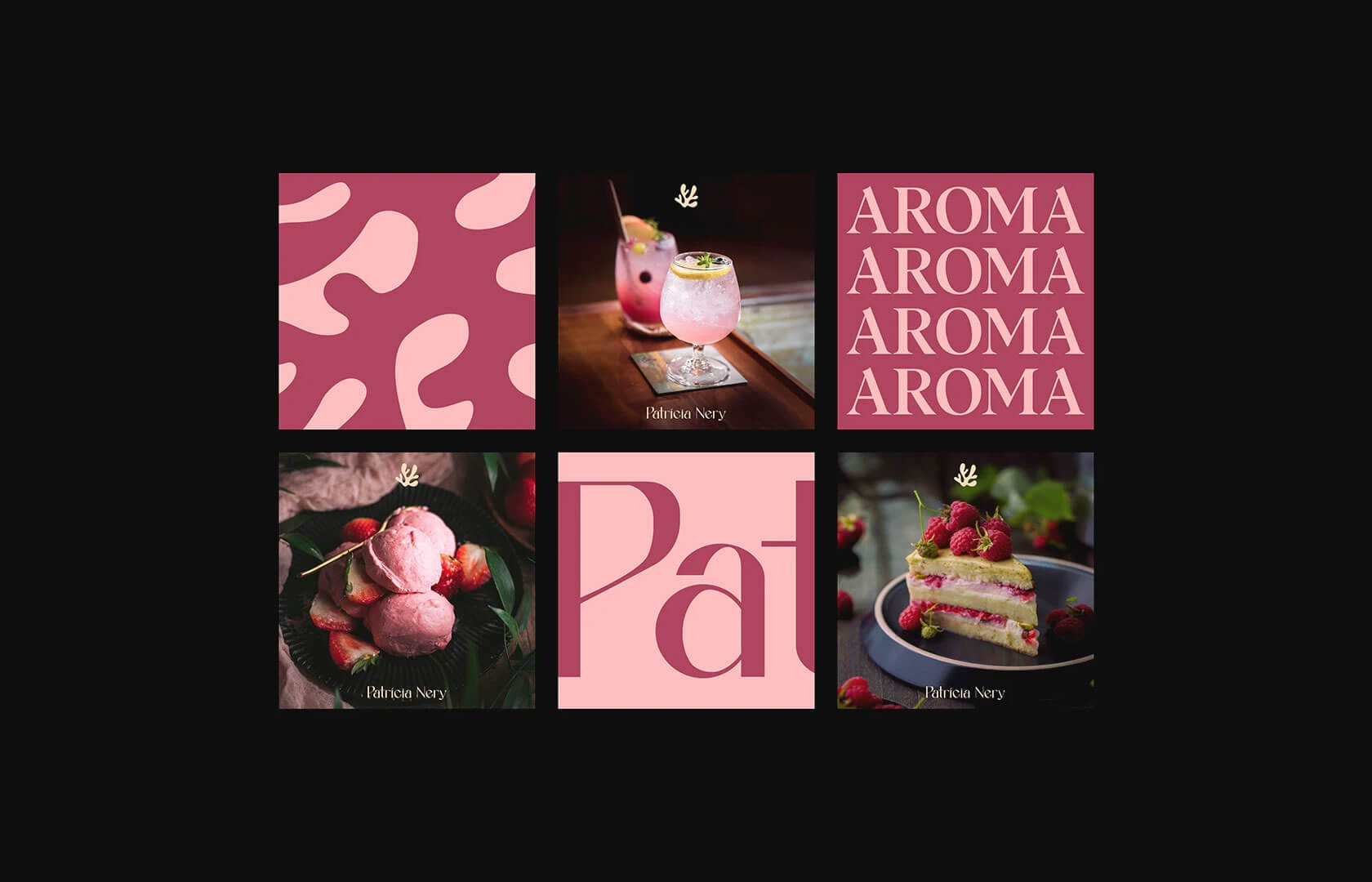 The designers centered the identity around a stylized typographic signature, tailoring the letterforms to feel both light and assured. It feels personal without becoming ornamental, giving Patrícia’s name a graceful weight that anchors the entire system. Around this signature, the visual language unfolds through warm tones, elegant serif typography, and photography that treats each plate or drink as a sculptural object.