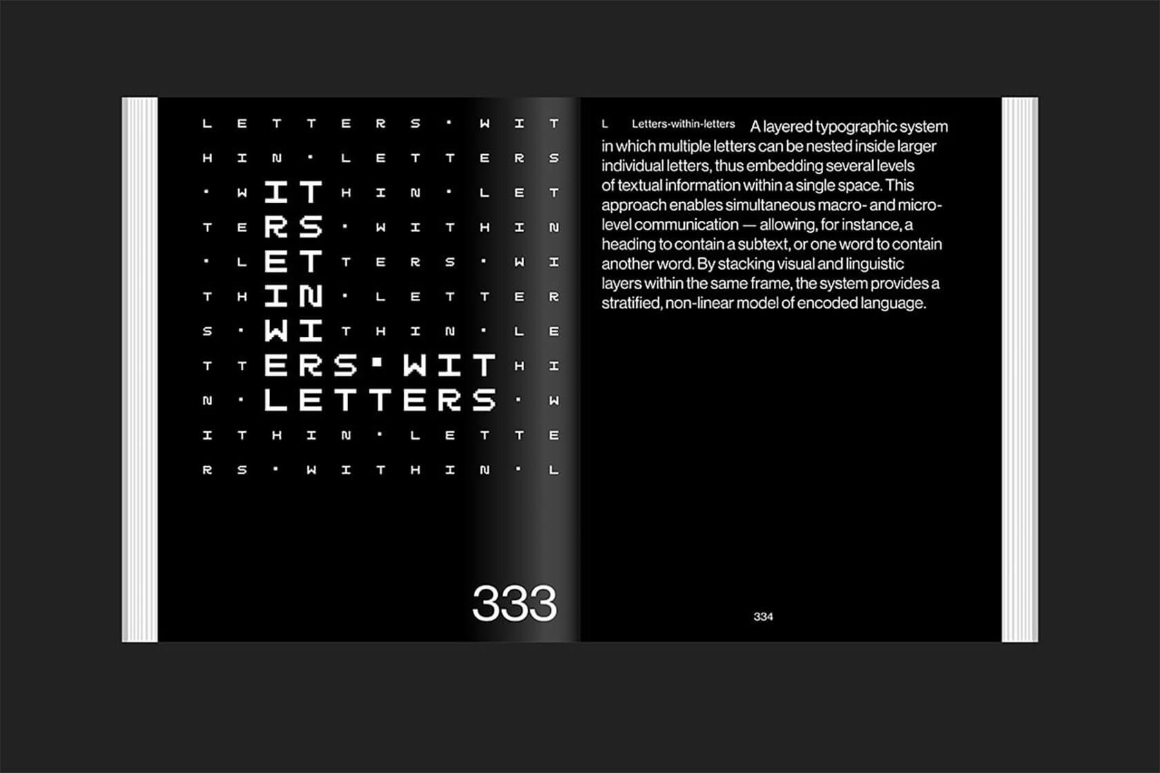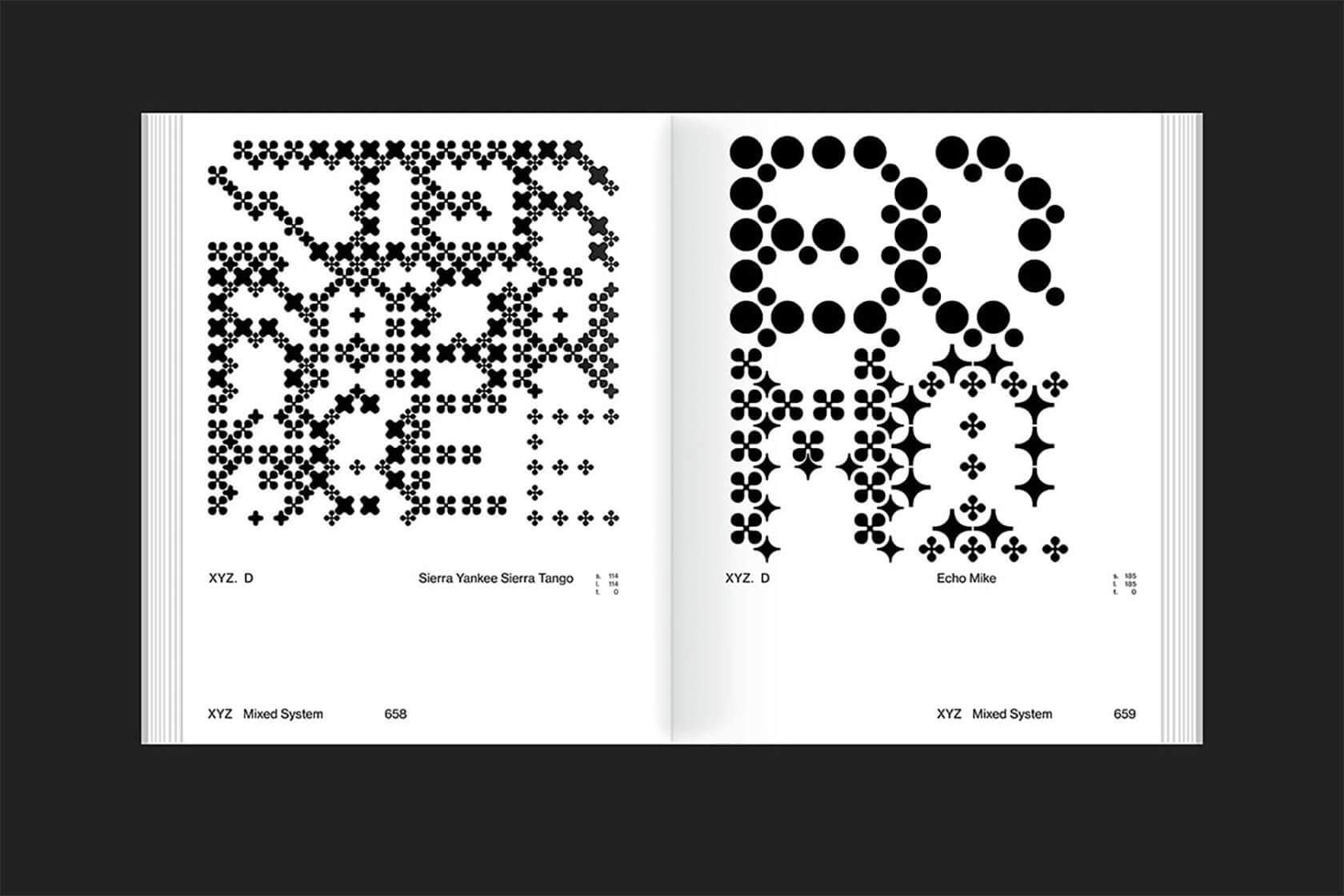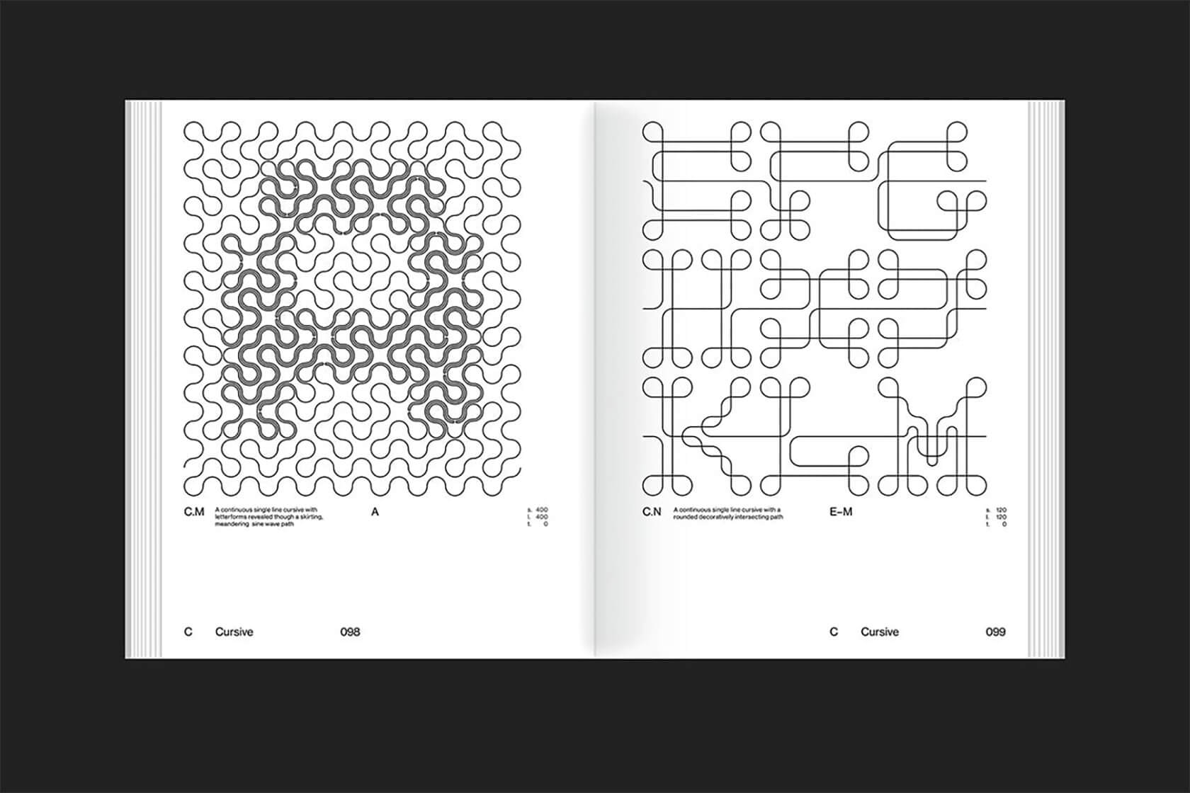 Across its comprehensive 696 pages, the book transforms familiar letterforms into a playground of visual systems, conceptual structures and graphic languages. What began as a collection of variable type studies, abandoned project ideas and speculative design experiments has evolved into a sweeping exploration of how far text can stretch beyond its utilitarian role. Every page demonstrates the alphabet’s potential to transcend communication and become a medium for pure creative expression, from intricate geometric compositions and continuous cursive grids to radical inversions of figure and ground.