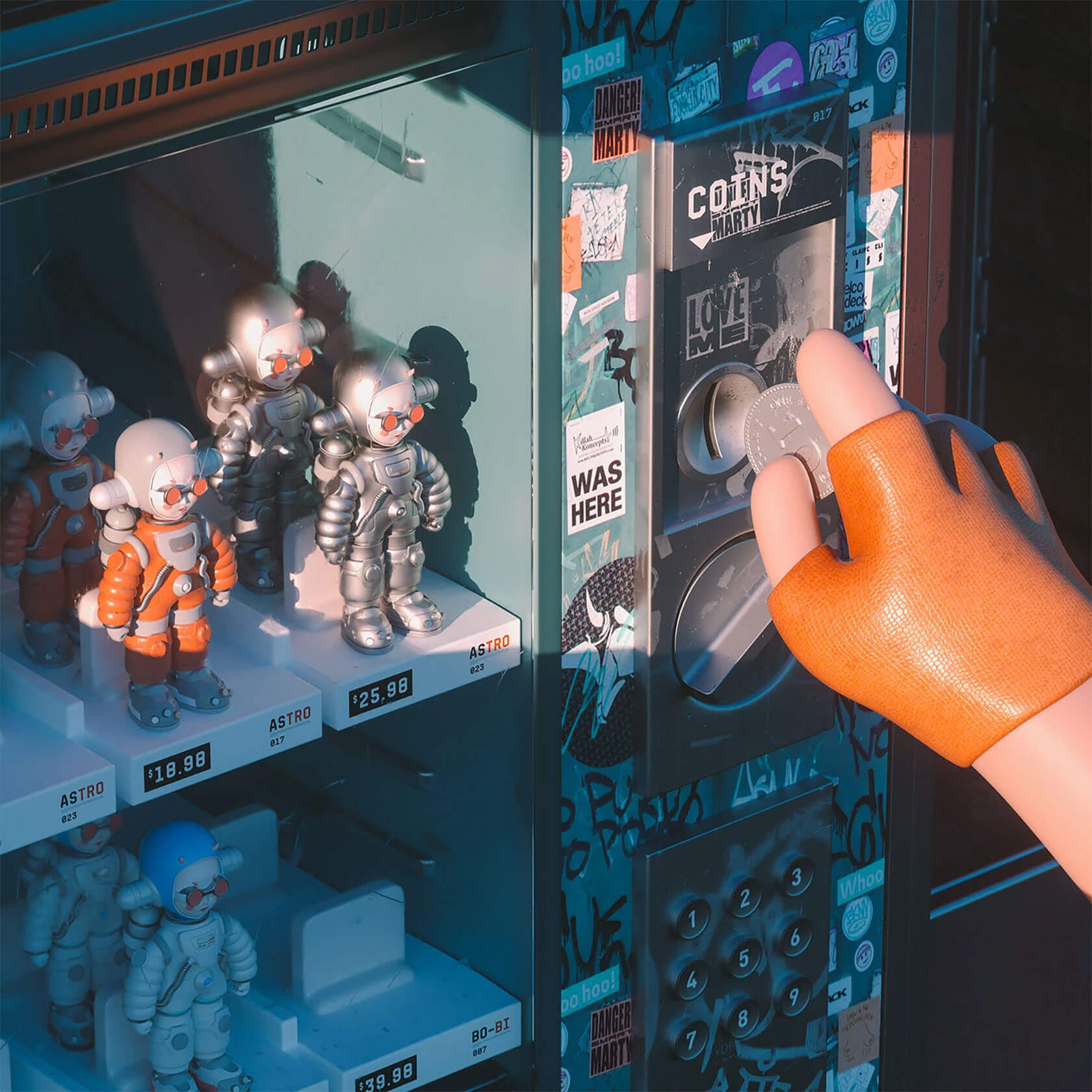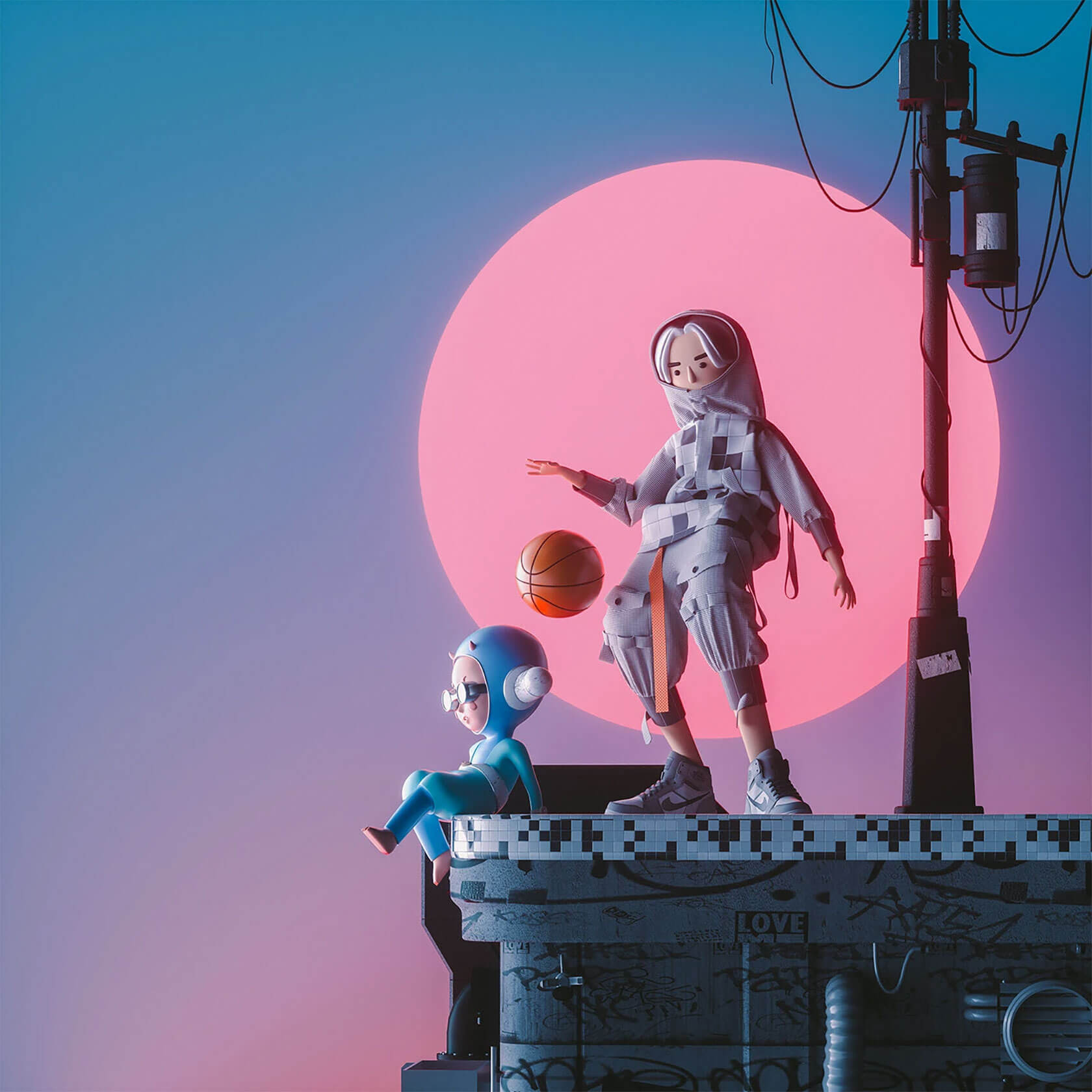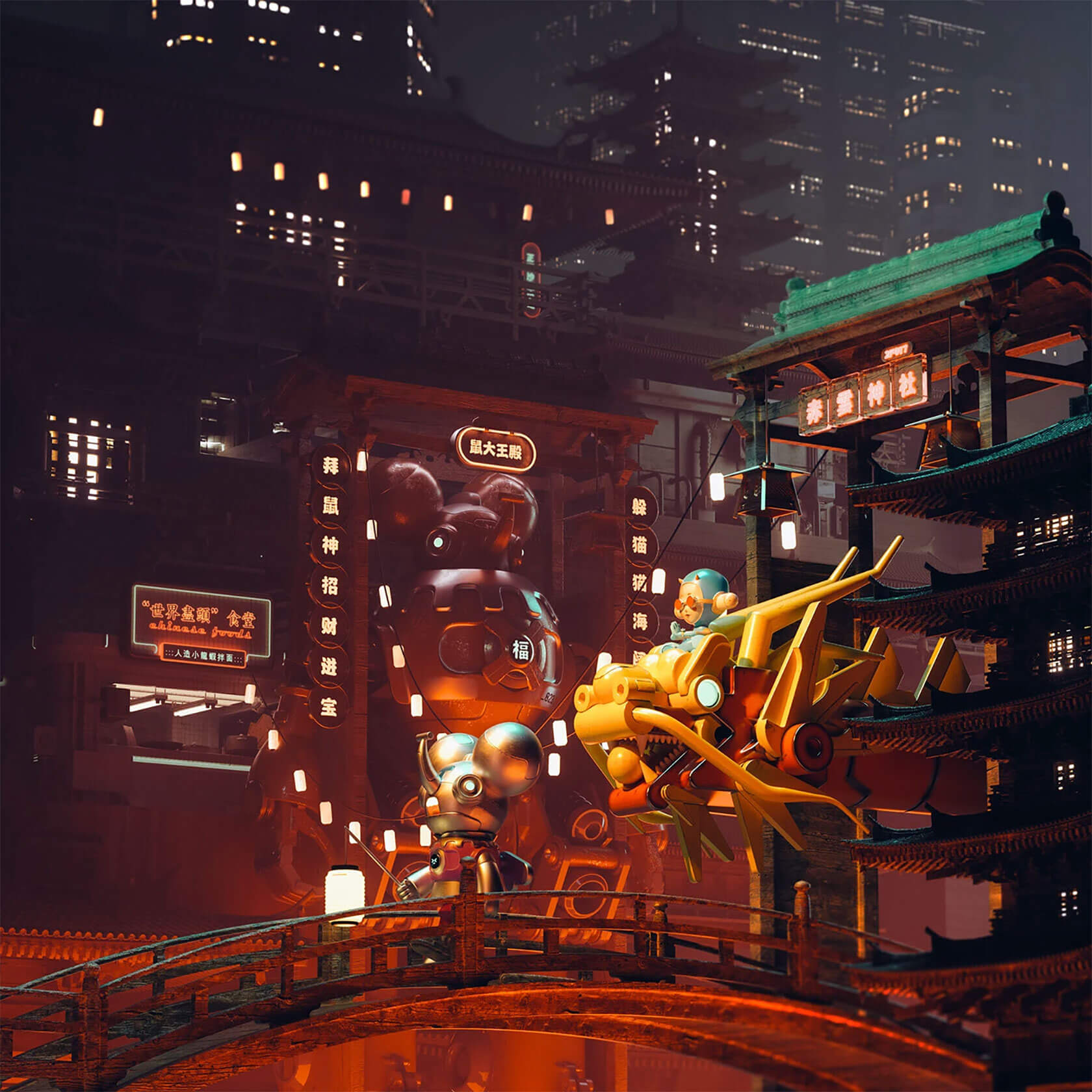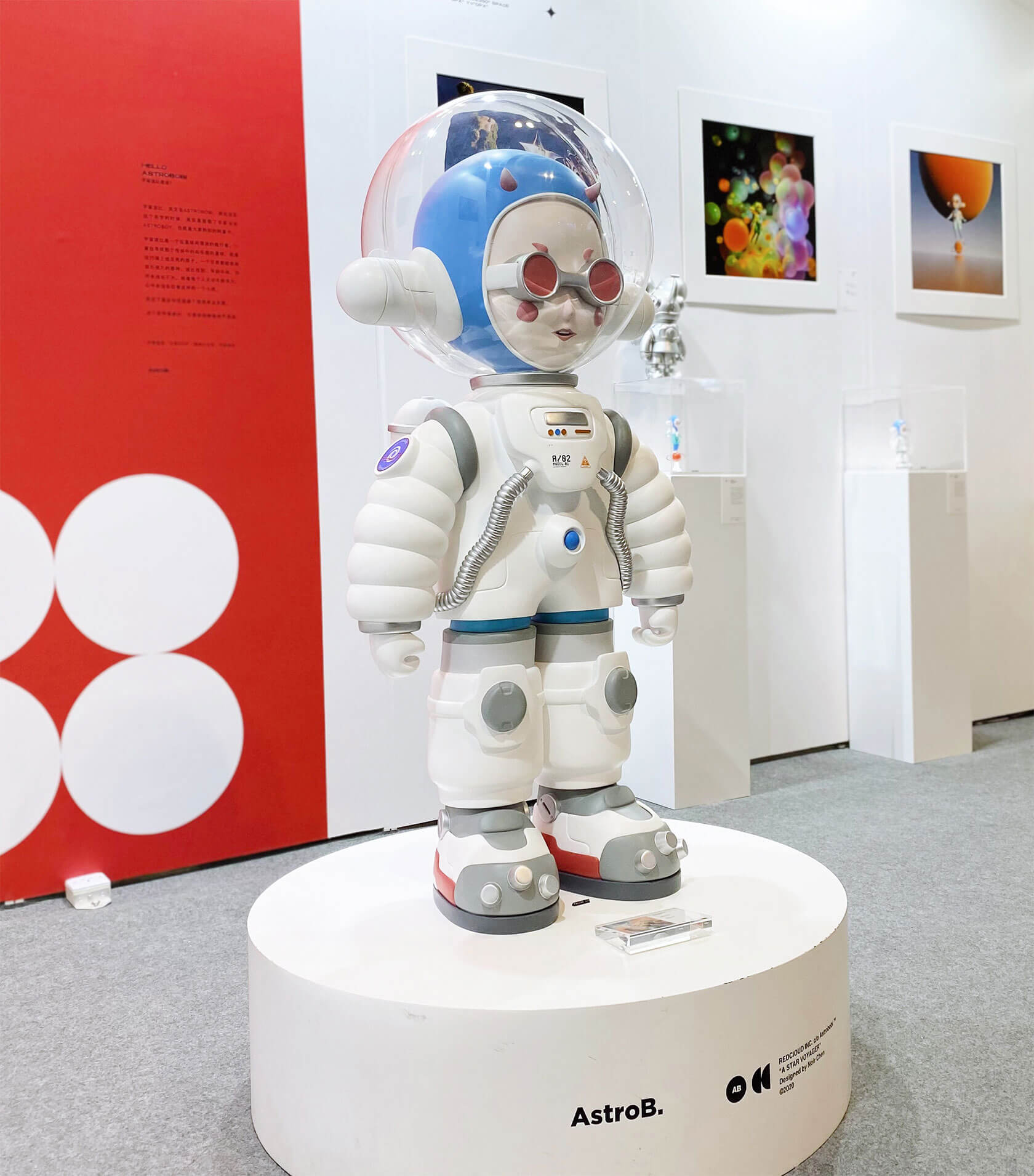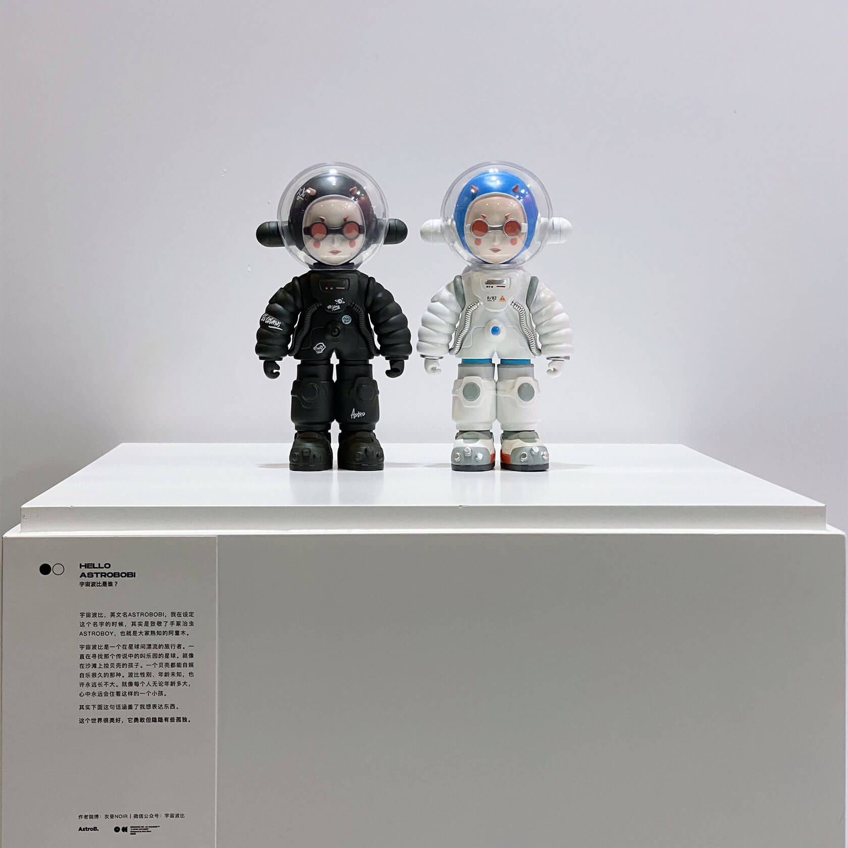 Beyond digital visuals, Noir has also brought his characters to life as life-size sculptures and collectible art toys, first exhibited at the Shanghai Toy Show in 2020. The result is a cross-medium narrative that merges digital art, sculpture, and storytelling into one cohesive cosmic dreamscape.