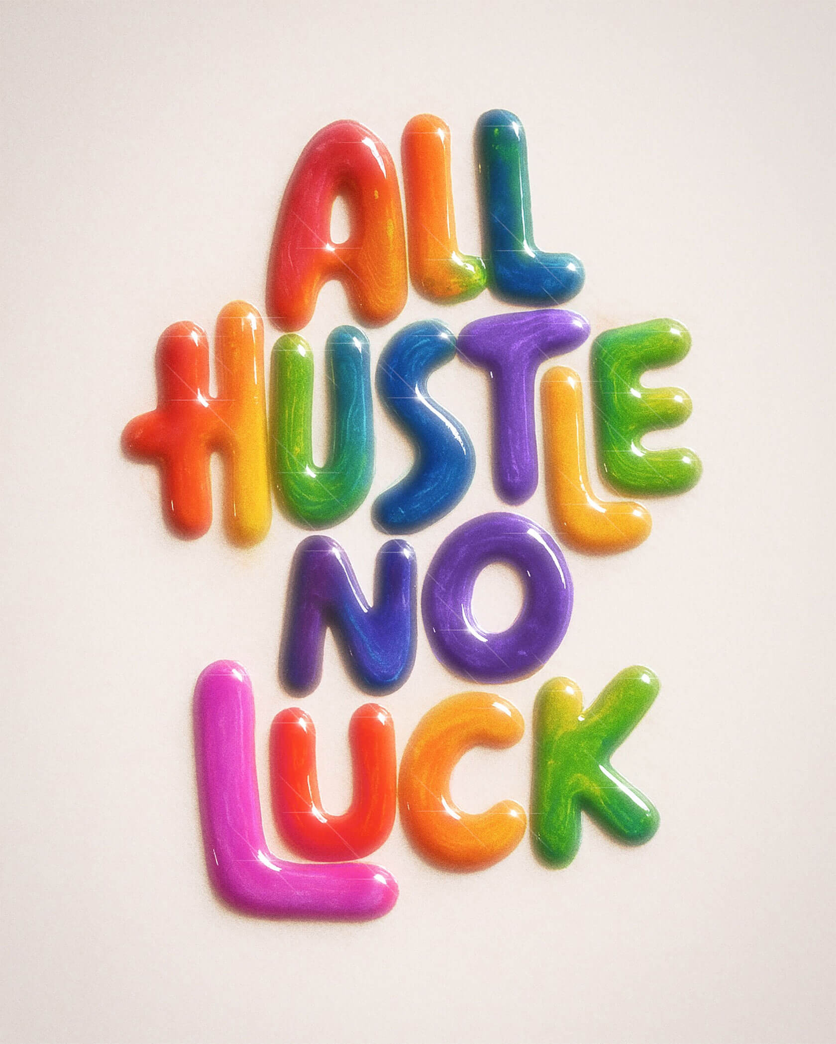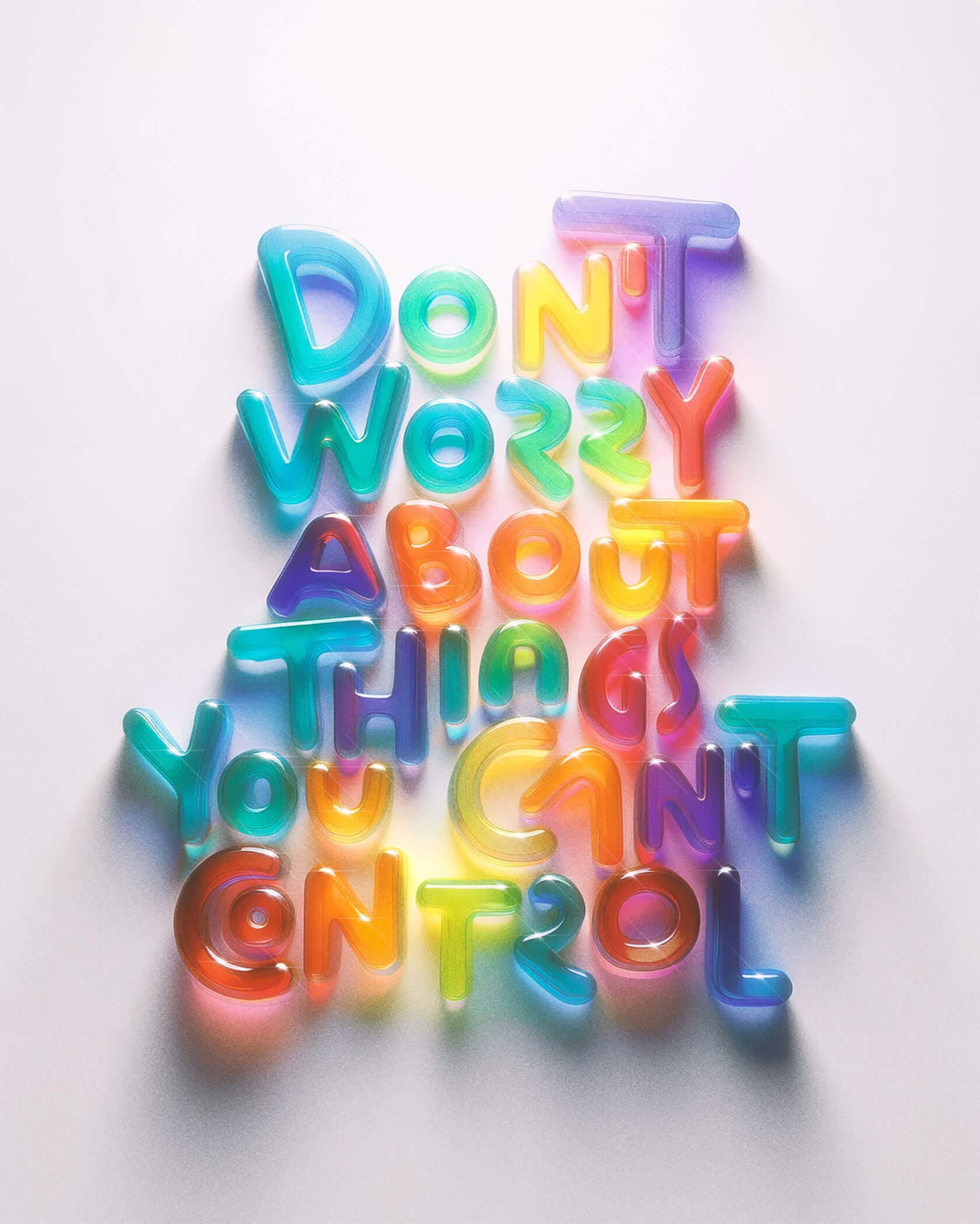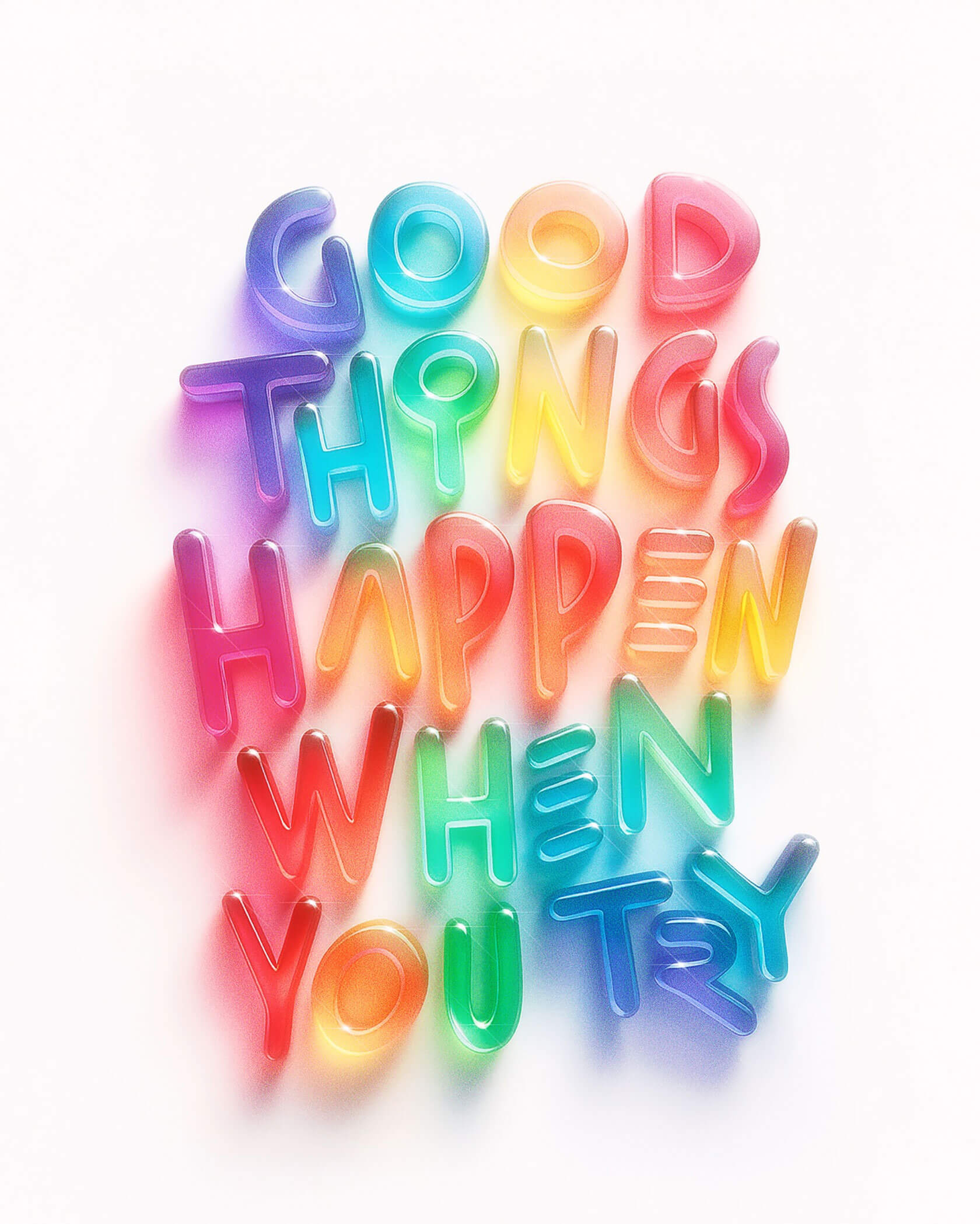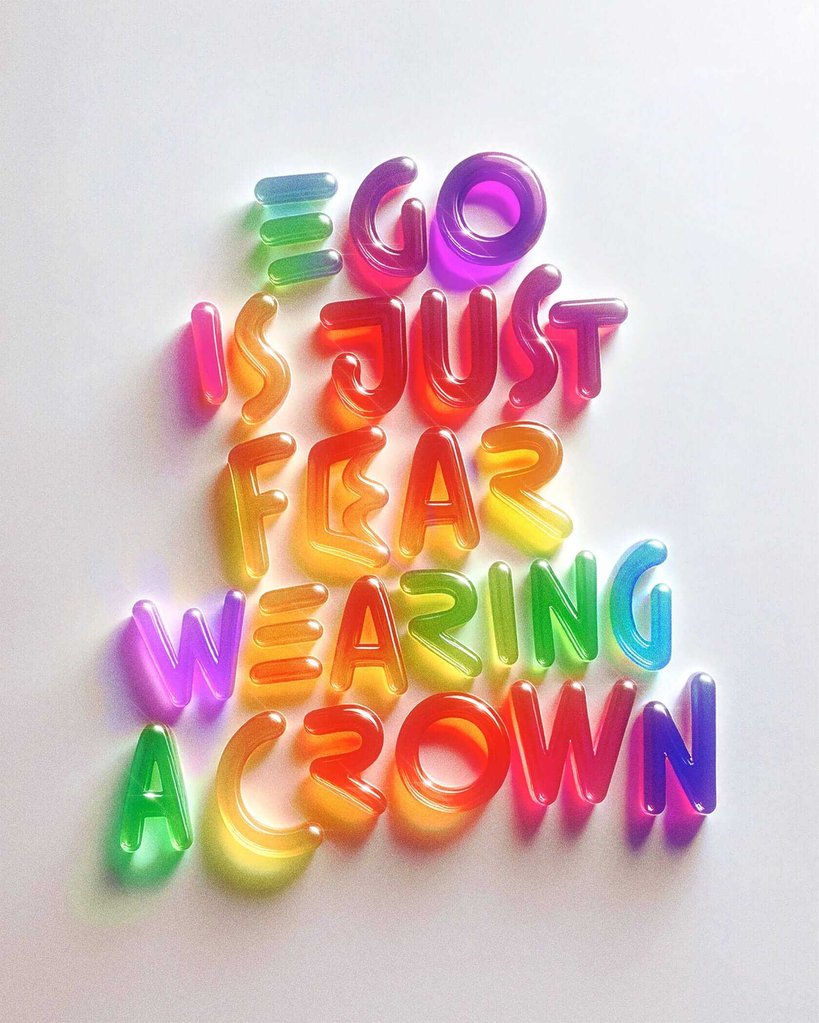 Mexican art director and designer Memo Vigil transforms motivational mantras into vibrant, three-dimensional artworks. His latest lettering explorations feature glossy, candy-colored typography that radiates positivity through color, light and form.