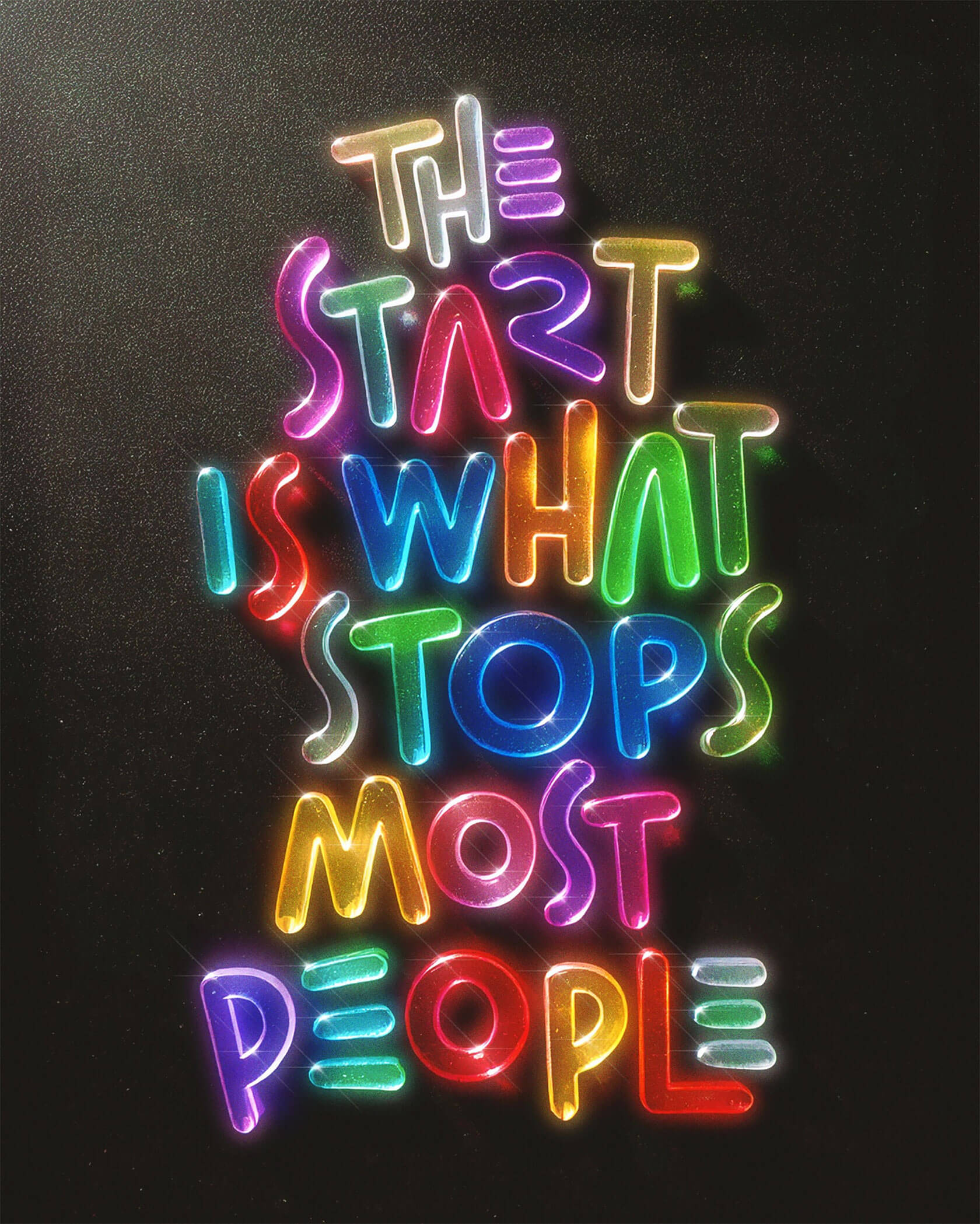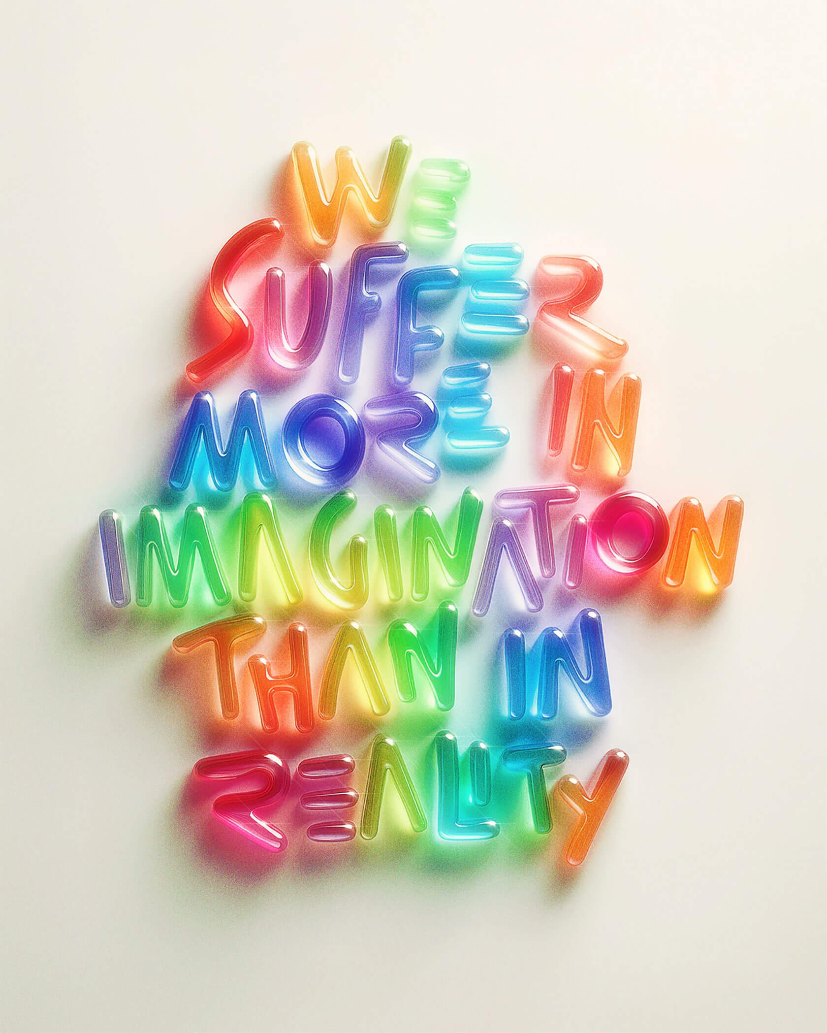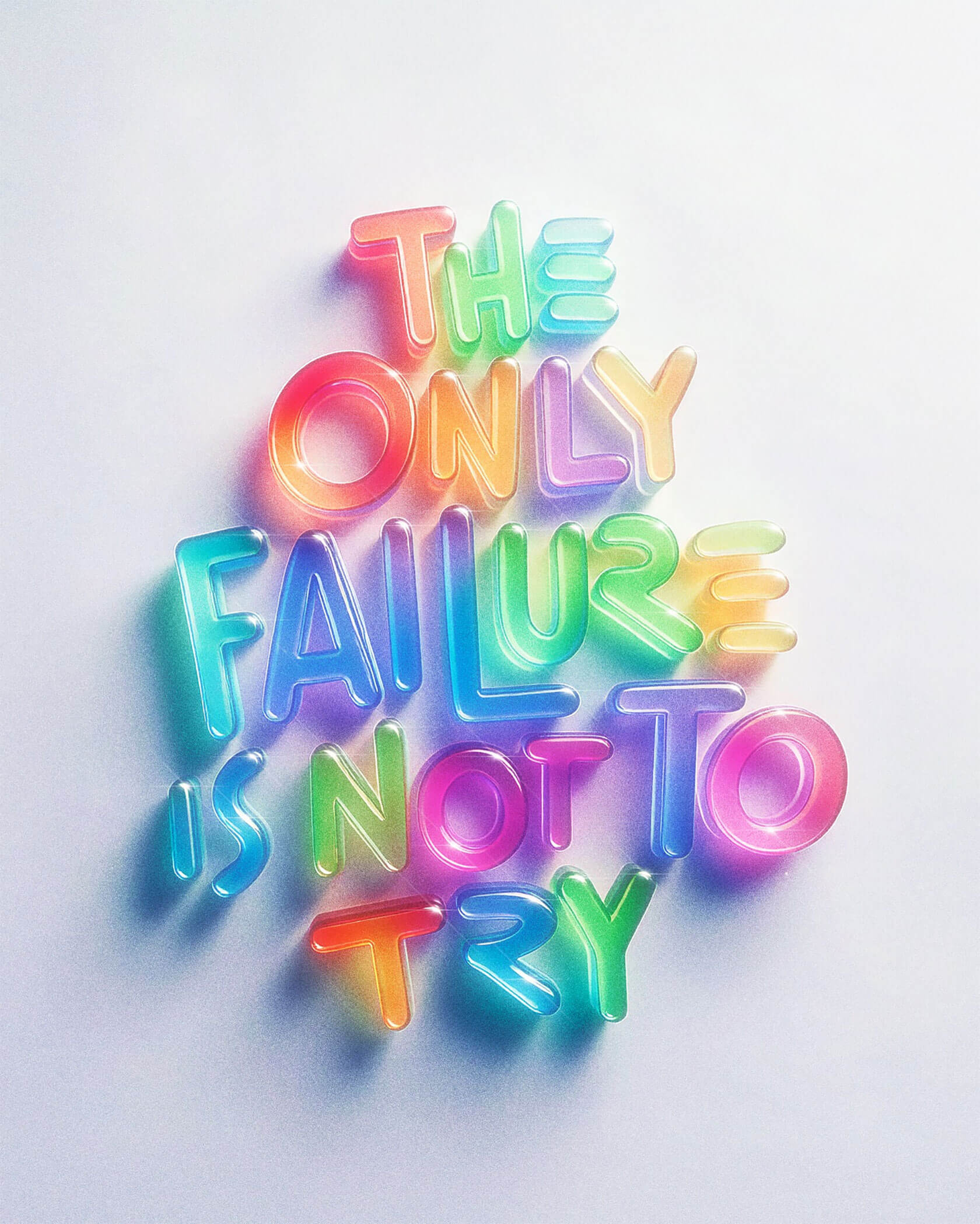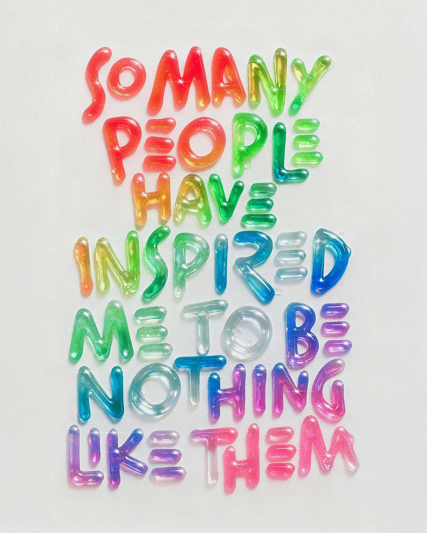 Mexican art director and designer Memo Vigil transforms motivational mantras into vibrant, three-dimensional artworks. His latest lettering explorations feature glossy, candy-colored typography that radiates positivity through color, light and form.