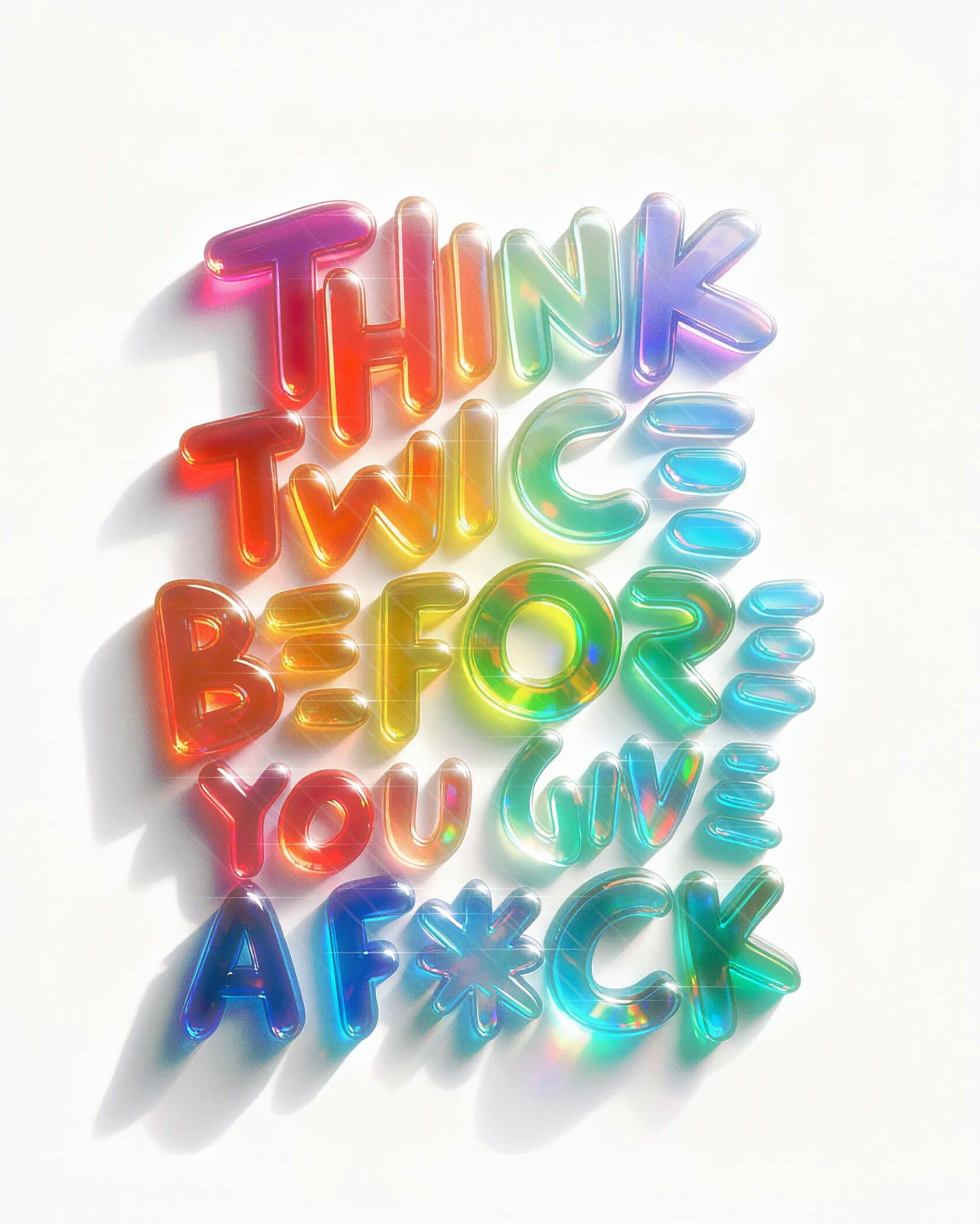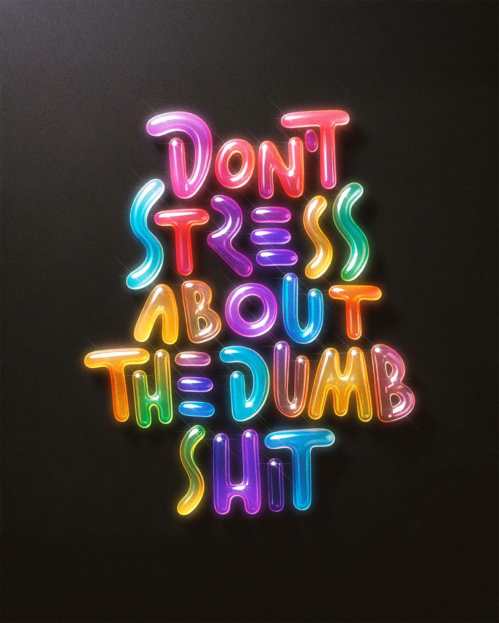 Using his own hand-drawn letterforms as a foundation, Memo uses generative AI tools like Adobe Firefly to produce captivating visual experiments. The playful, reflective and tactile pieces carry messages of optimism and self-awareness like “Good things happen when you try” and “Ego is just fear wearing a crown.”