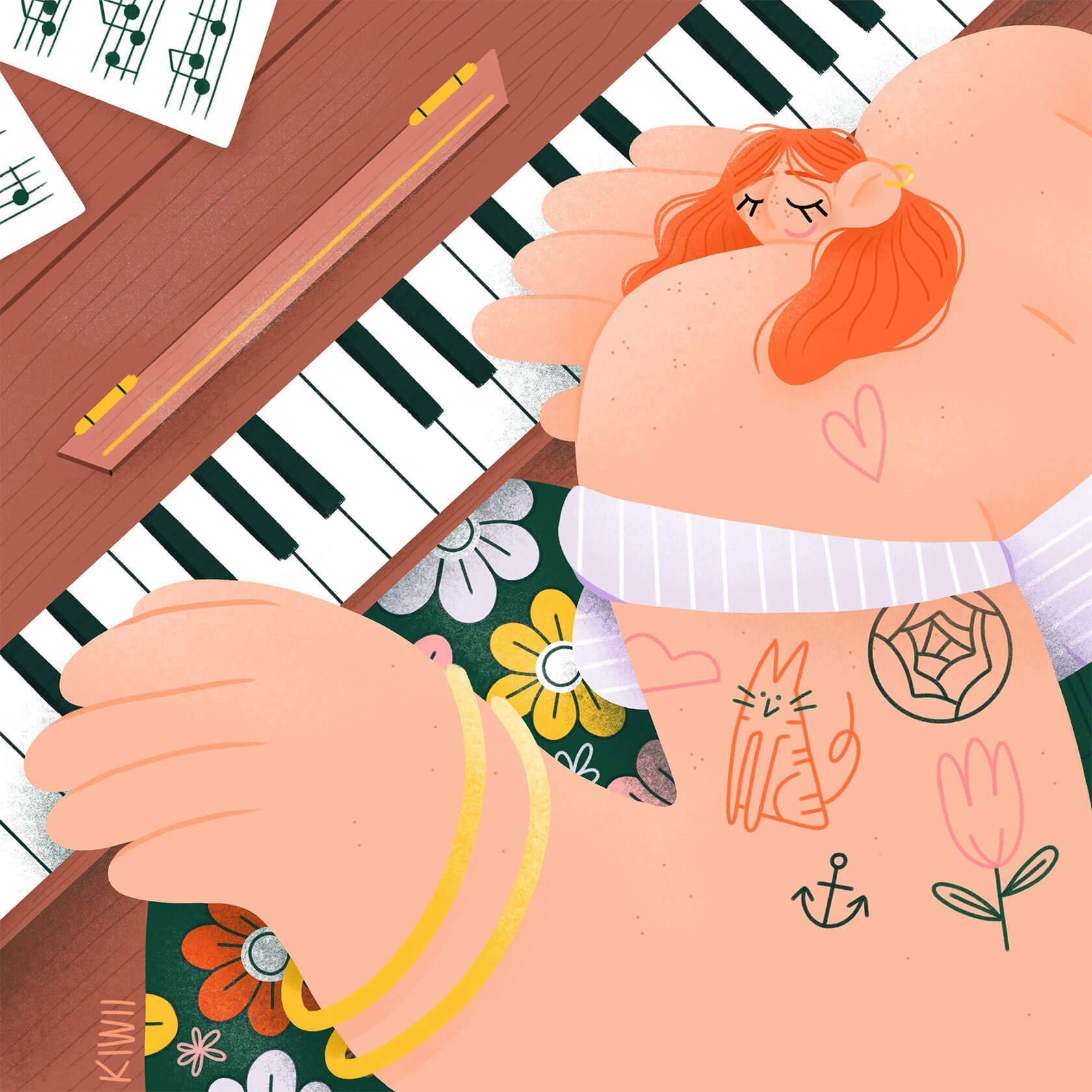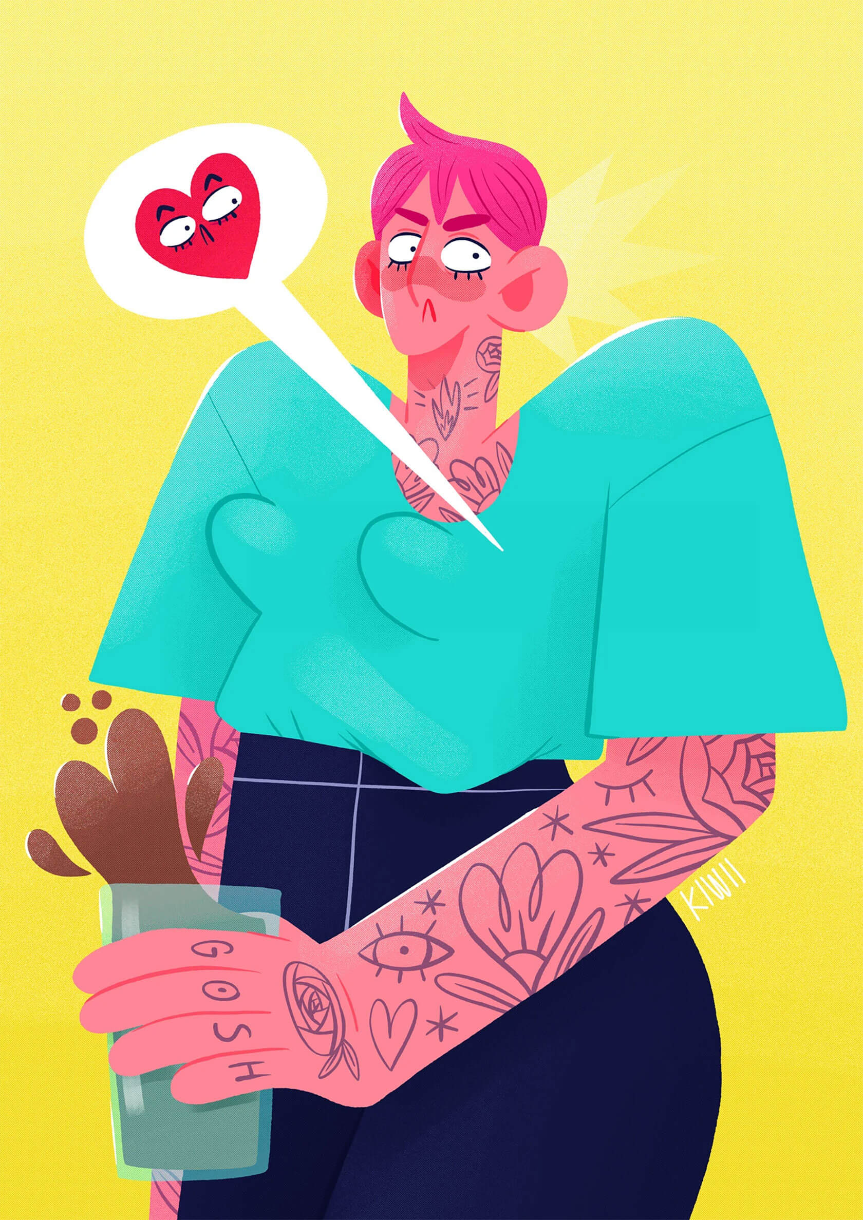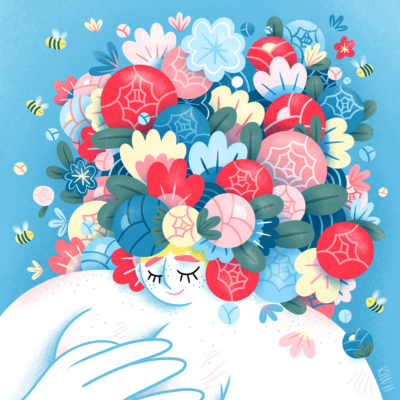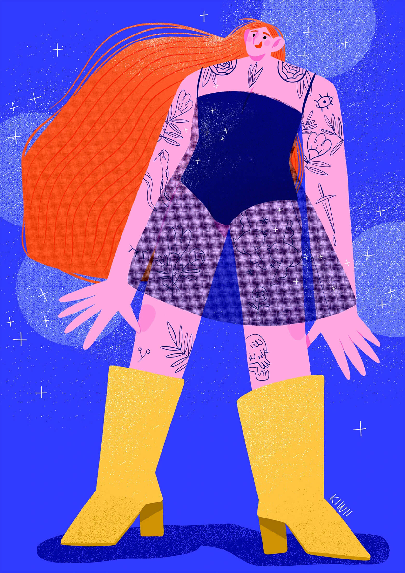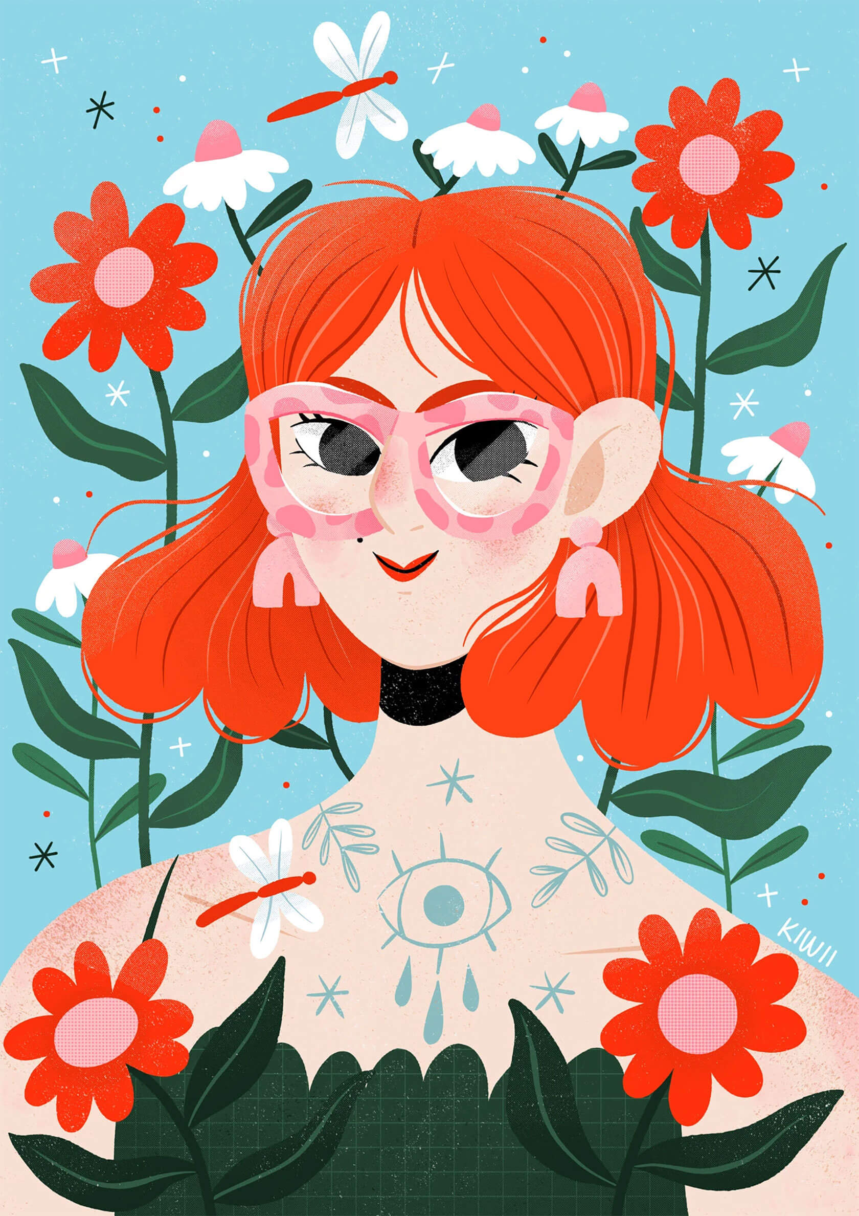Infused with literary sensitivity and poetic flair, her illustrations balance confidence with tenderness. Beneath the saturated hues and graphic forms lies a gentle reminder: beauty thrives in diversity, and softness can coexist with strength.