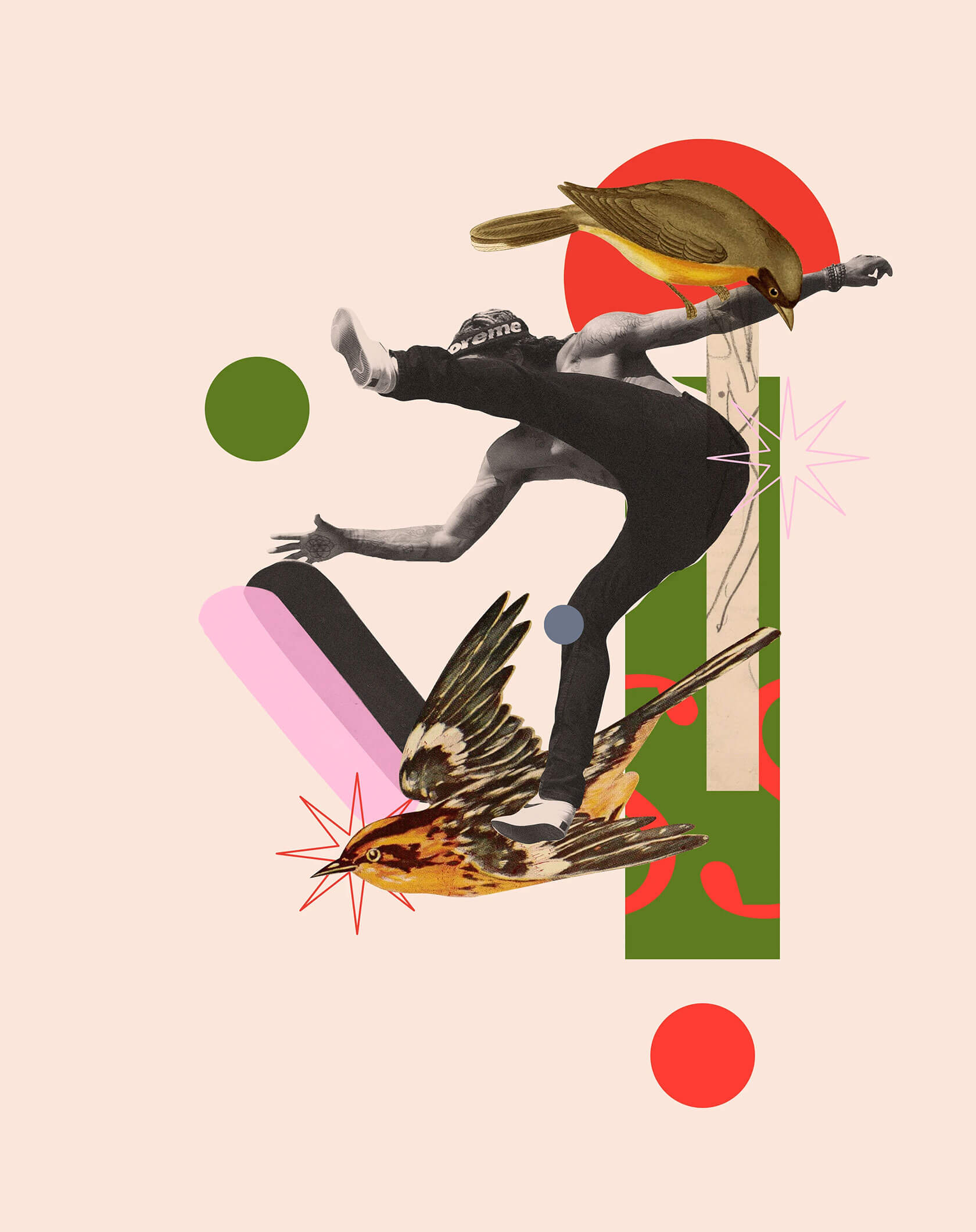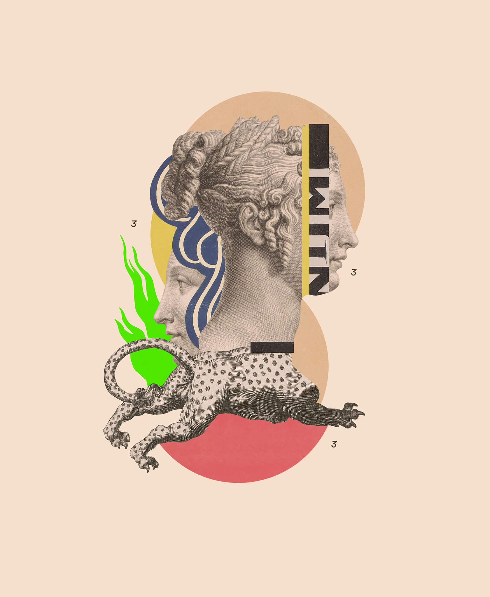 Throughout his career, his distinctive collage style has caught the eye of major names like Apple, Google, The New York Times, Tony Delfino and Masterclass. Today, he works as a Talent Researcher at Domestika, while also contributing to Mexico’s creative scene as part of Dealer, an illustration and design fair, and the Pictoline Illustration Biennial committee.
