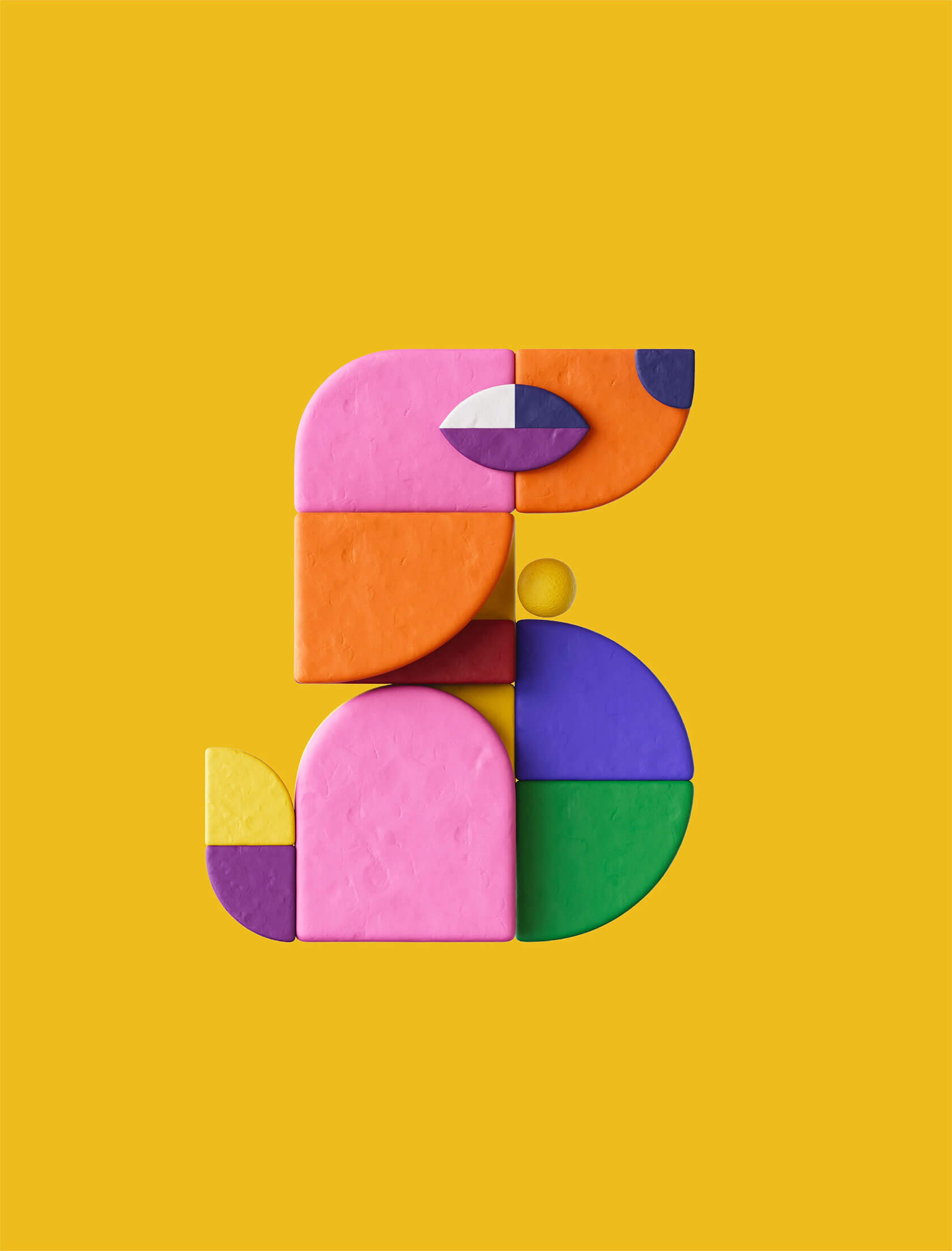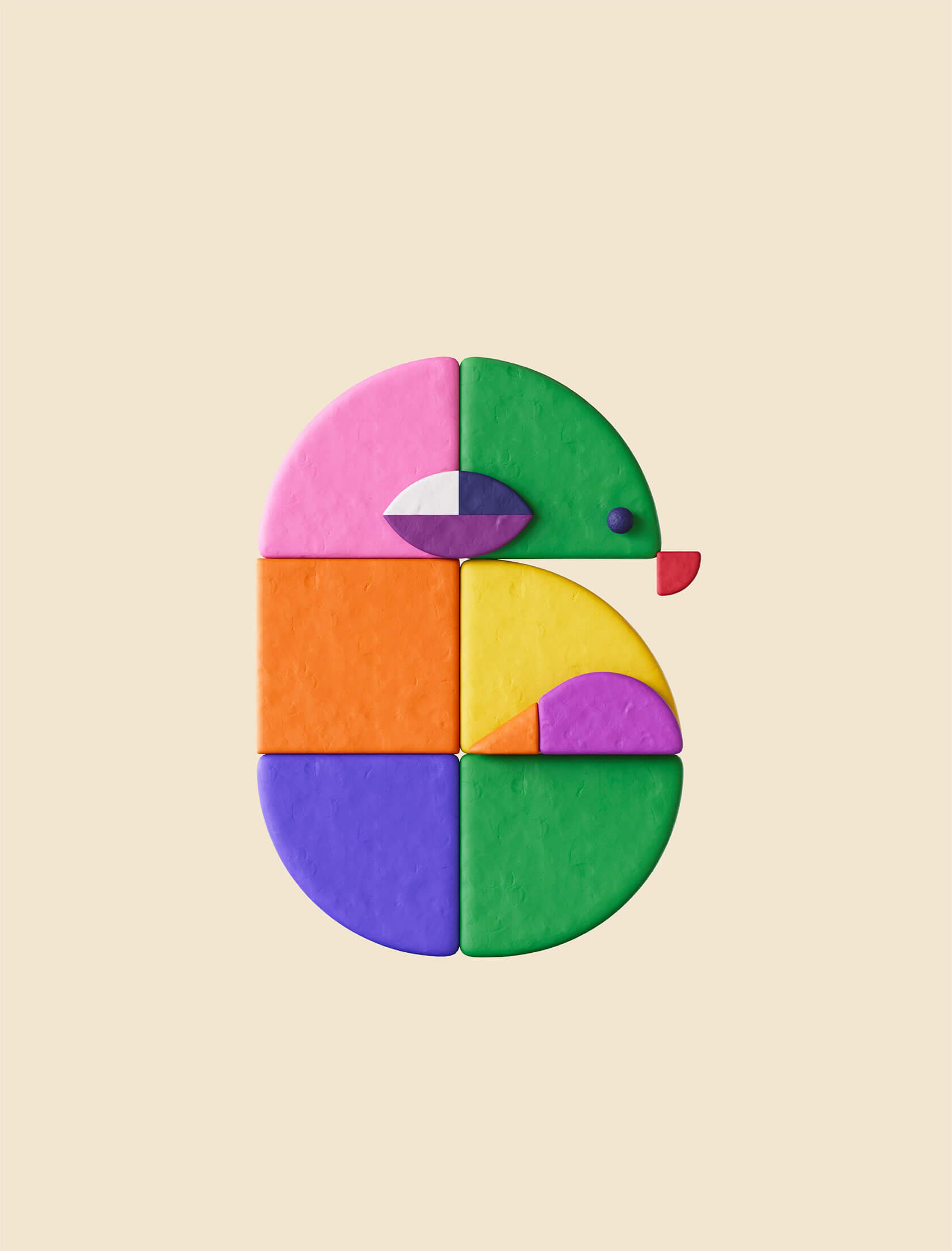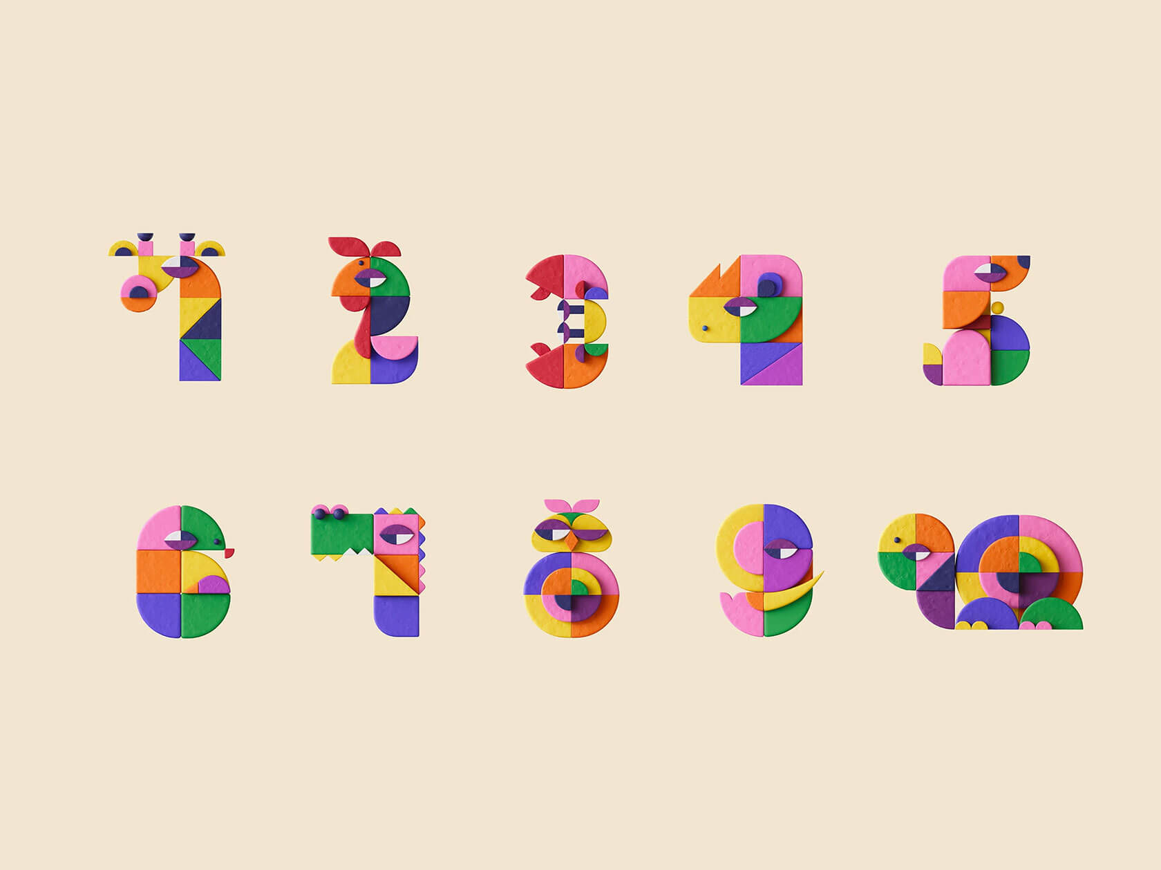 South African 3D illustrator Naydine Bosman brings numbers to life in her playful and colorful series Geometric Animal Numbers. The collection transforms the digits 1 through 10 into cheerful animal forms made of modular geometric blocks, arranged in bold compositions packed with personality.