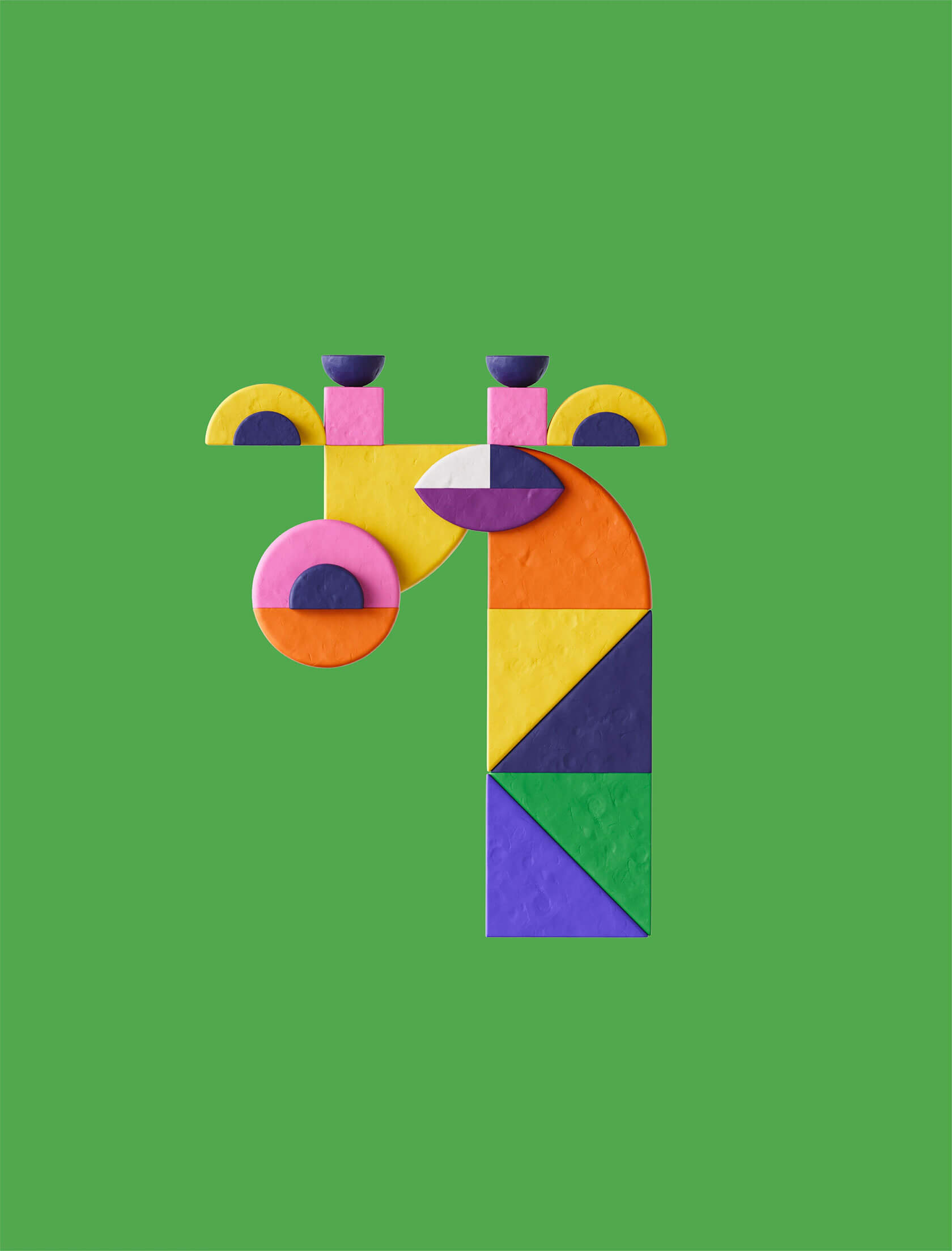 Designed to be used in window displays, the series mixes tactile 3D shapes and saturated hues with a sense of joy and childlike wonder. Each number is both a character and a sculpture, forming a flexible system that can be rearranged across different layouts and scales.