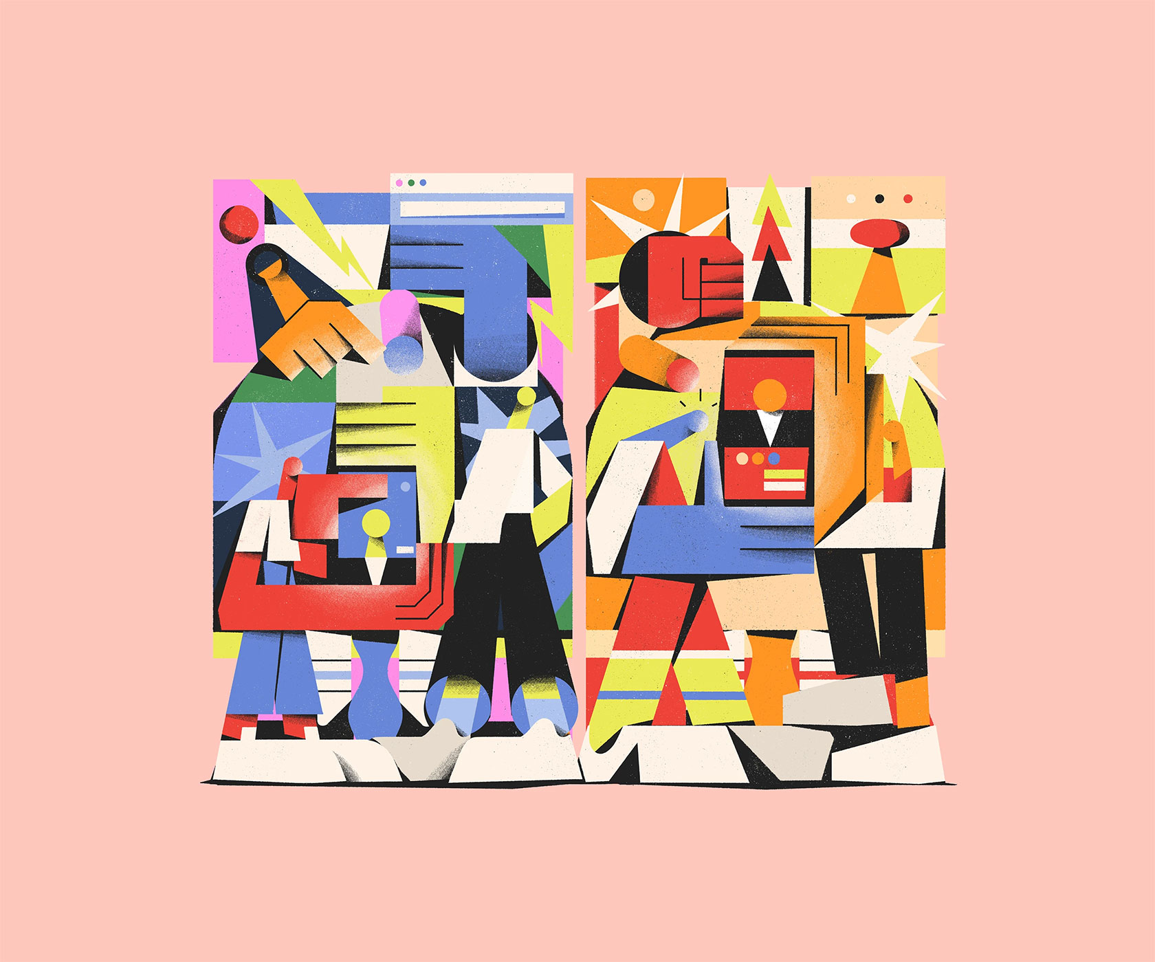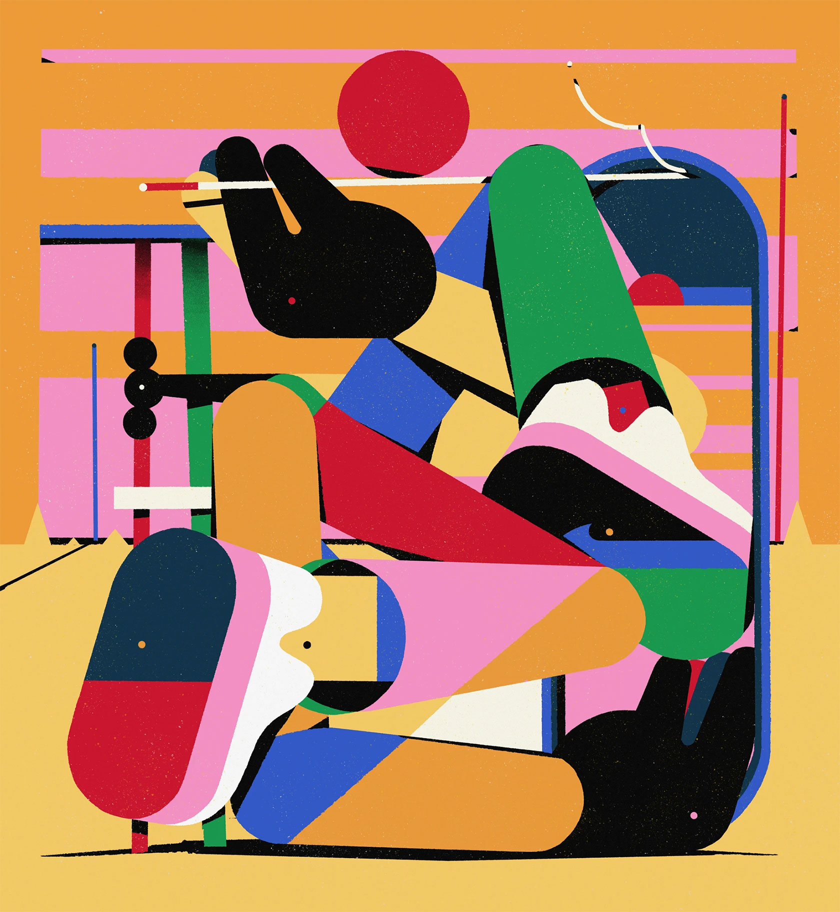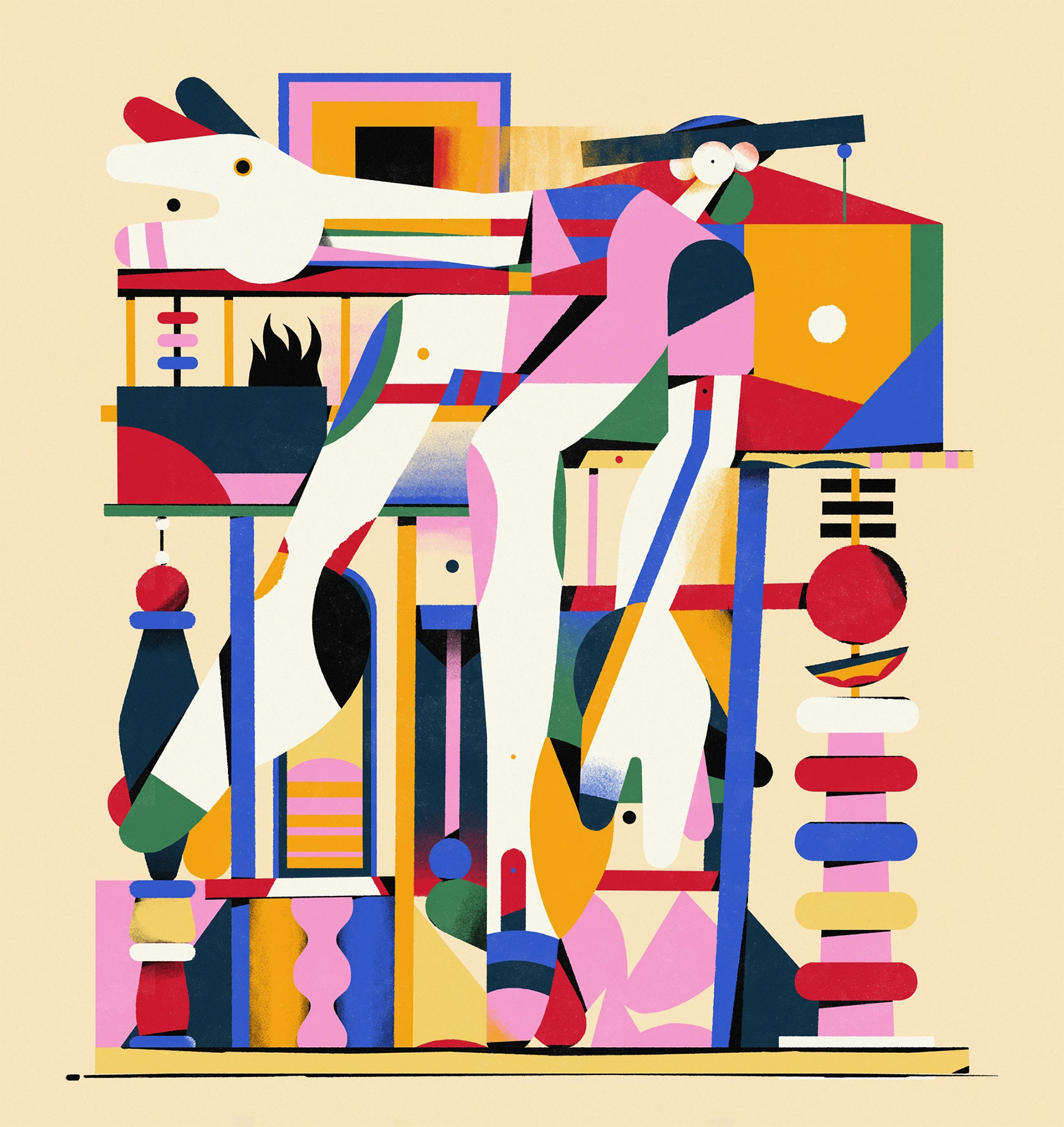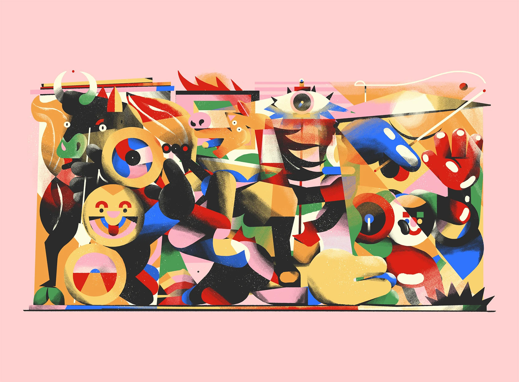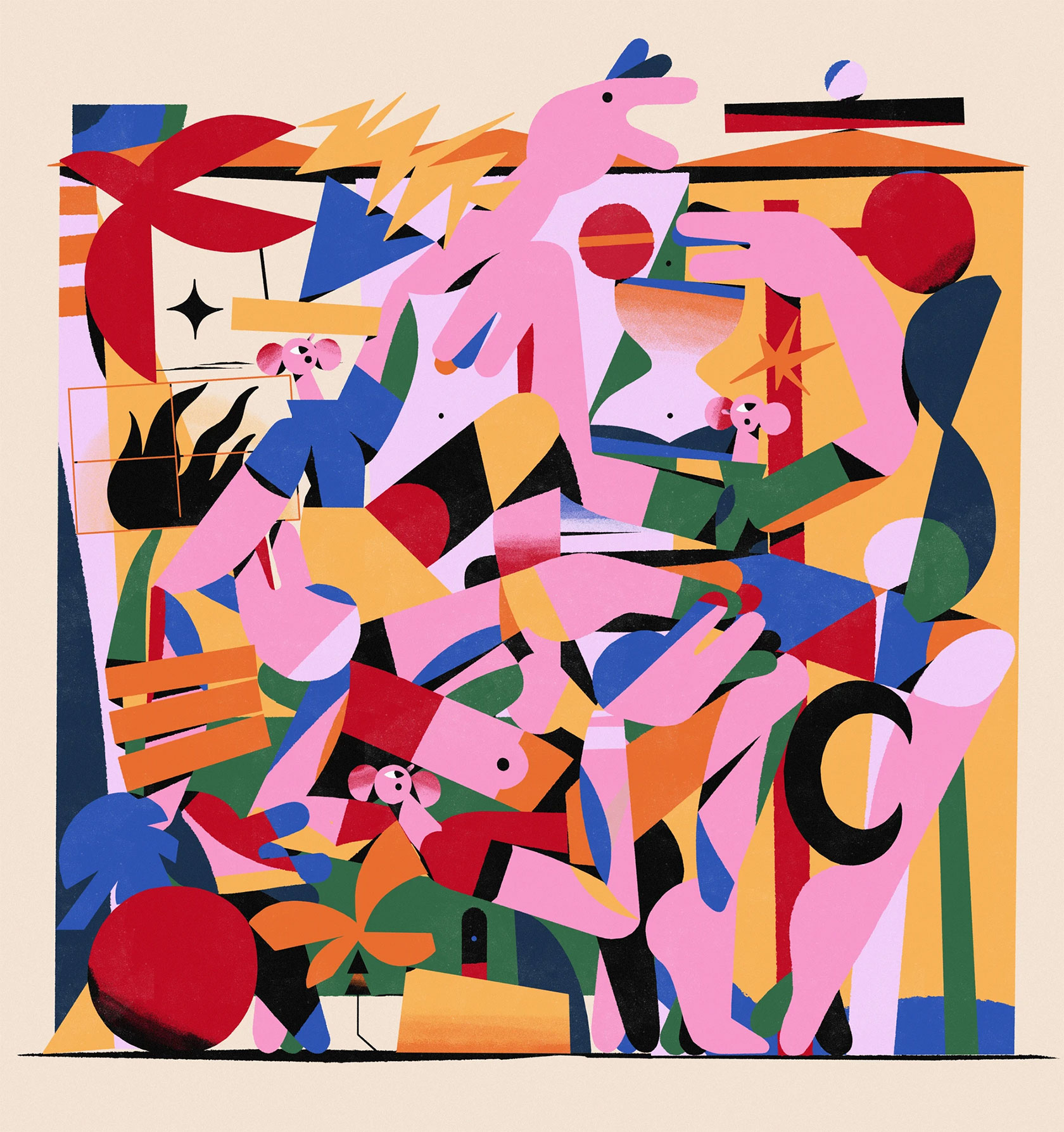 Brazilian illustrator, art director and graphic designer Fernando Molina creates multilayered worlds where color and chaos coexist in perfect balance. His dynamic compositions combine punchy tones, geometric forms and tactile textures, transforming simple elements into vivid scenes packed with rhythm and motion.
