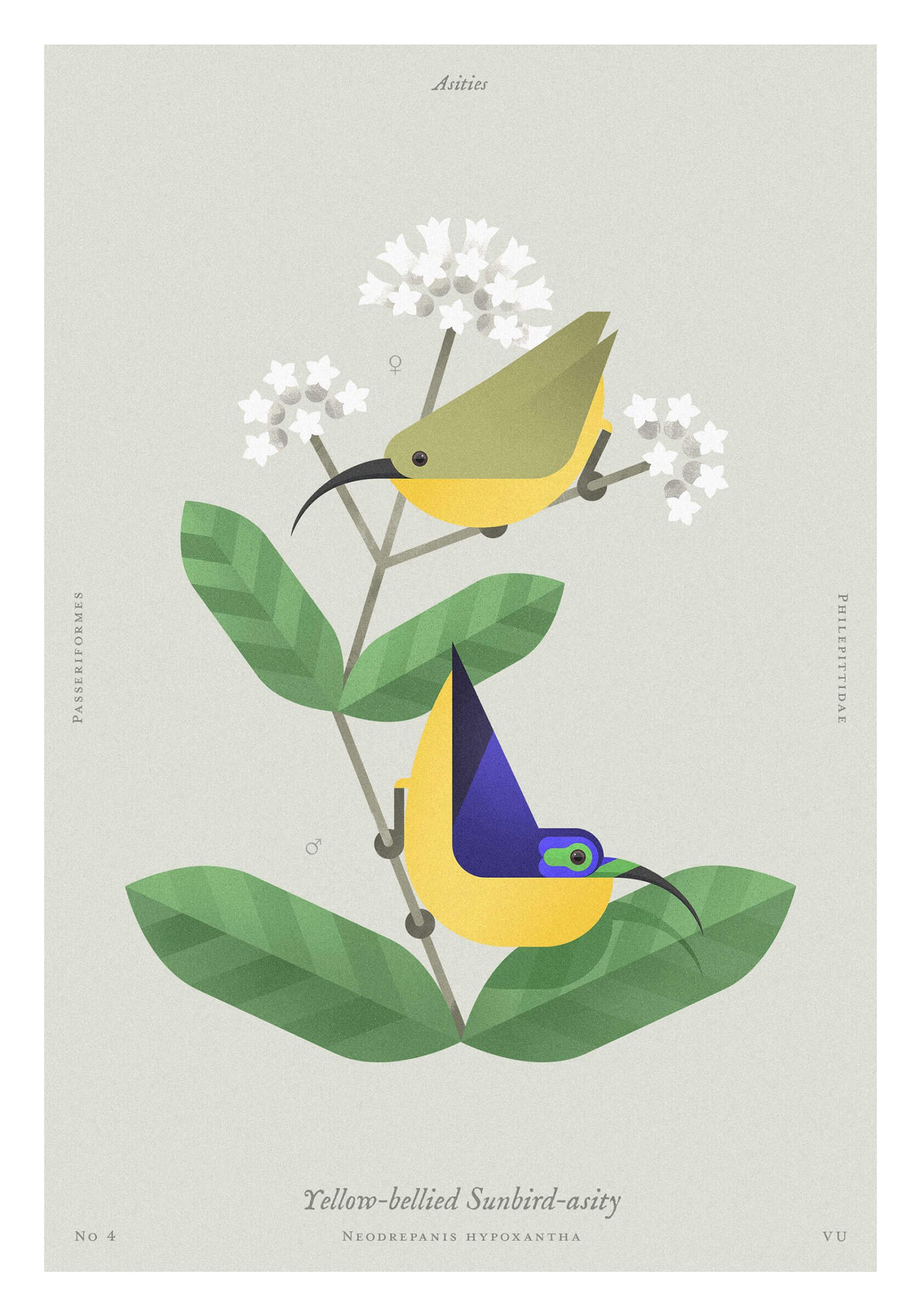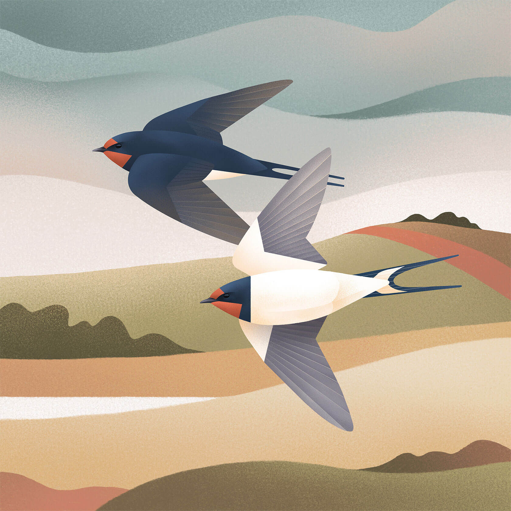 With an interesting background in biology and twelve years of experience in graphic design, her style reflects a balance of scientific observation and playful abstraction. Since shifting to full-time illustration in 2018, she has built a versatile practice spanning packaging, publishing, branding and educational projects. But it’s her bird illustrations that particularly caught our attention. Aga’s minimalist avian depictions emerge from clean shapes, subtle gradients and a refined sense of colour harmony.