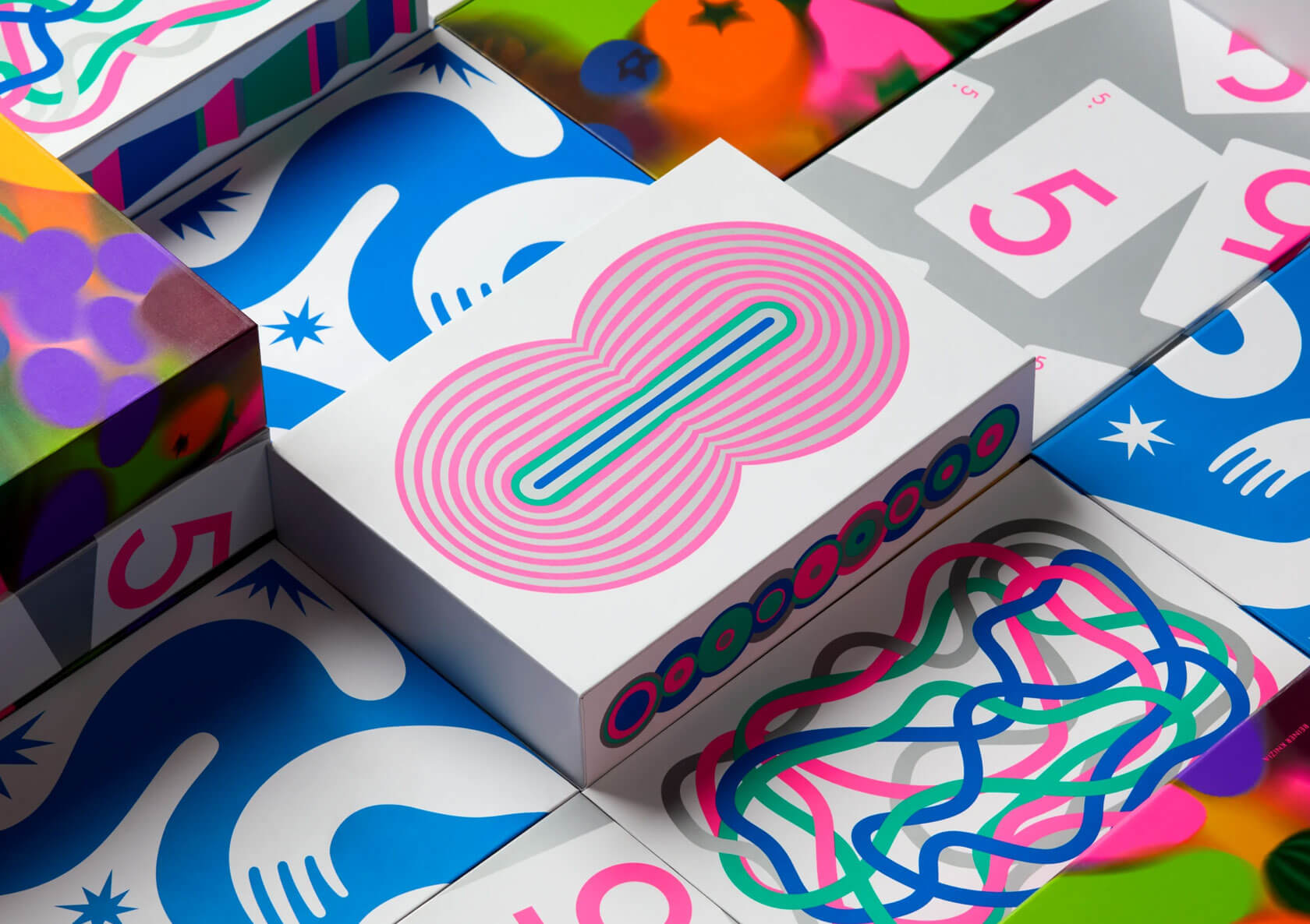 The packaging is split into two distinct layers. On the outside, a unified magenta shell establishes strong shelf presence and reinforces the collection as a whole. Inside, each game reveals its own graphic language through die-cut windows and illustrated covers that align with the card backs, introducing variation within a consistent structure.