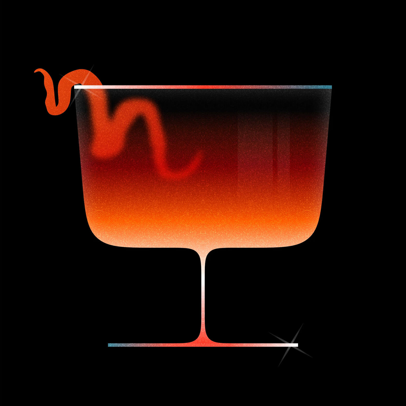 The compositions are beautifully simple: translucent glassware, bold tones and just enough detail to hint at each classic cocktail. Even with the pared-back approach, Matteo’s images feel vibrant and atmospheric, almost like neon signs reimagined as crisp, modern illustrations.