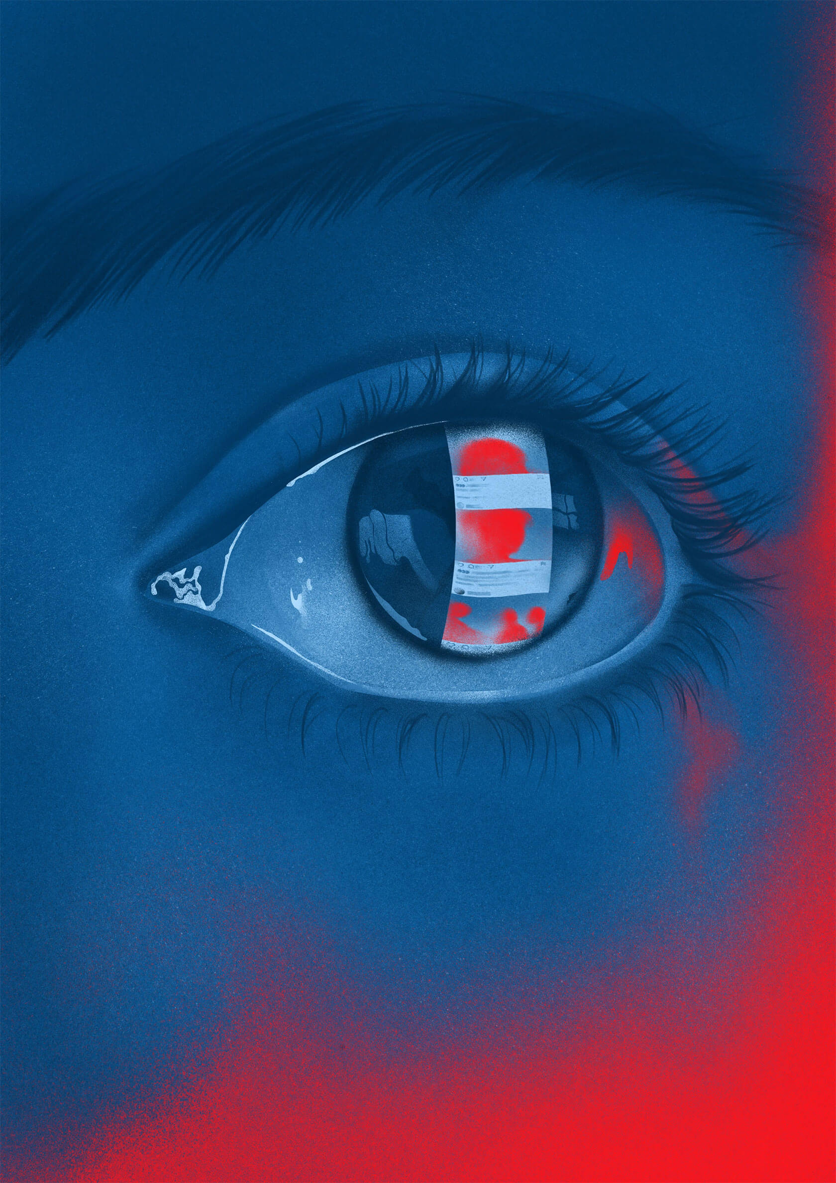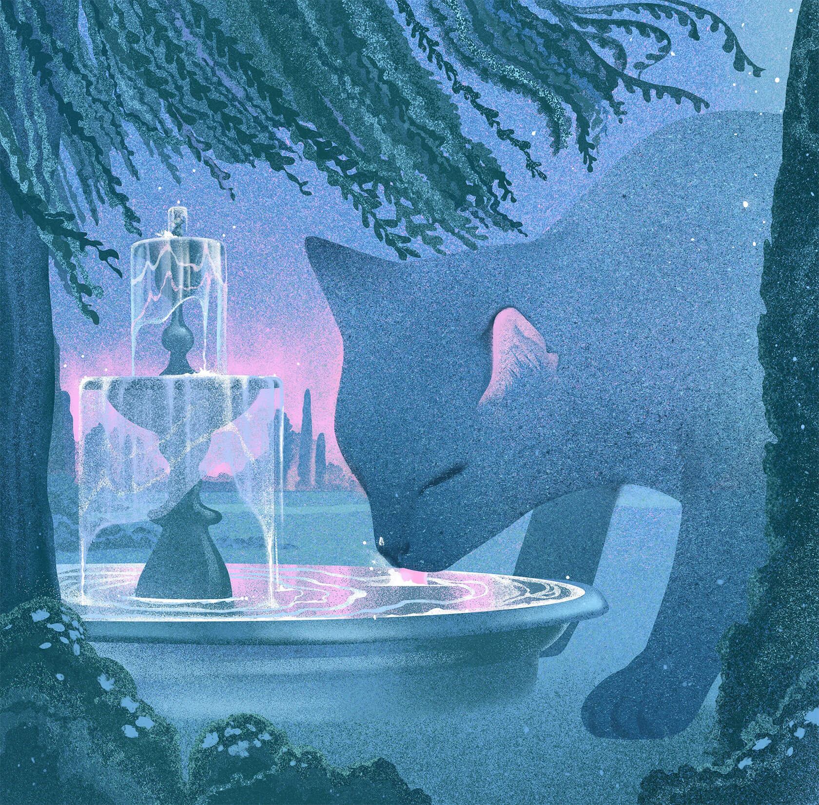 Masha’s compositions are full of tiny, thoughtful details, but they never feel cluttered. Even in her more figurative works, like the introspective portraits or the eye catching a flicker of digital light, the illustrations carry a gentle sense of calm and mystery.