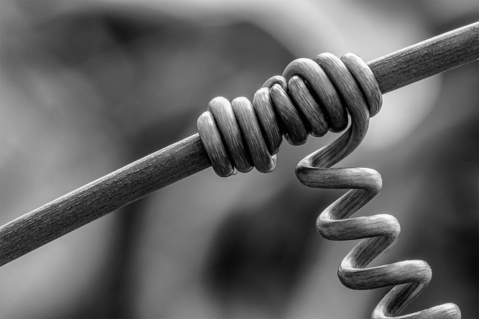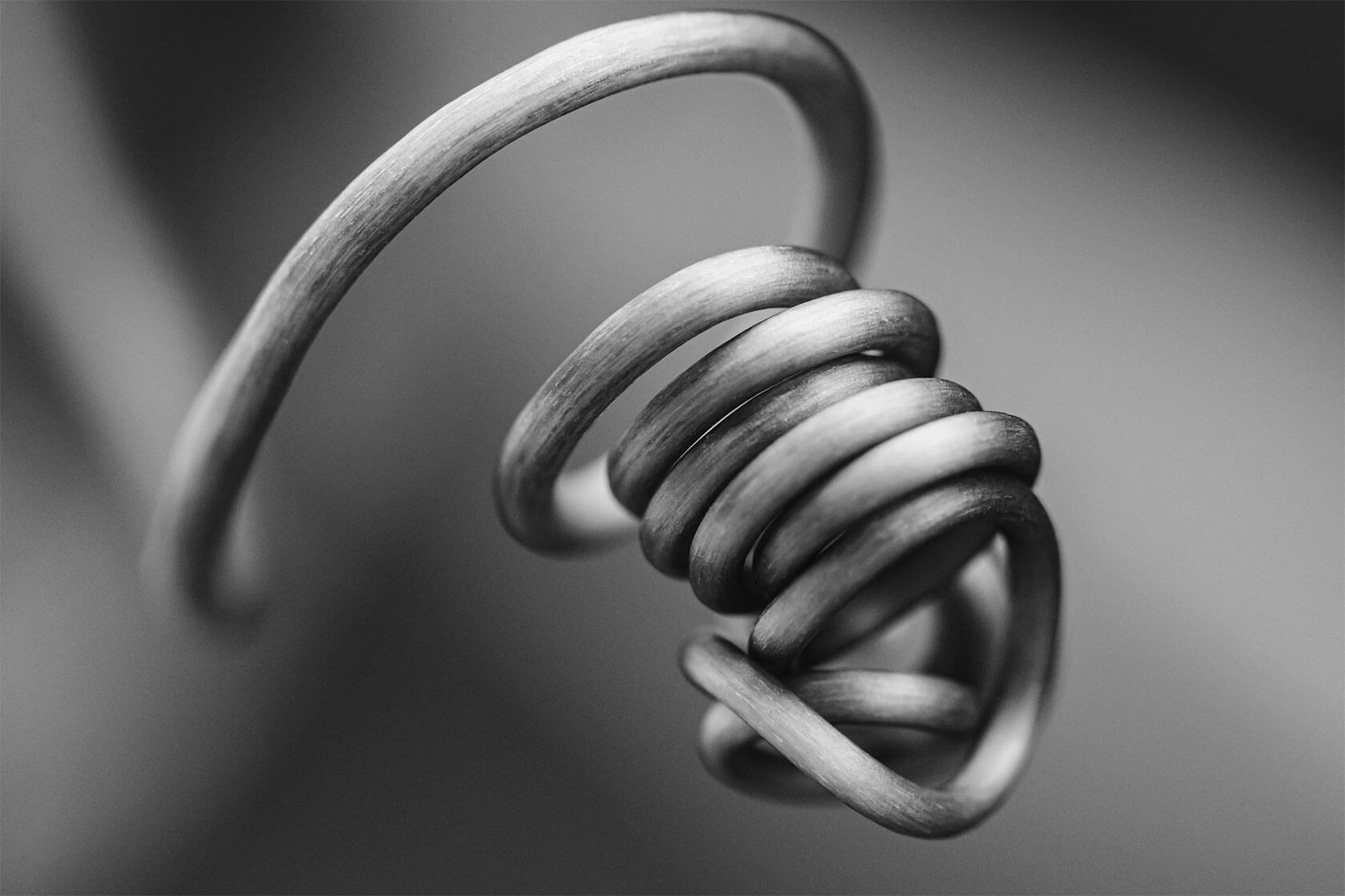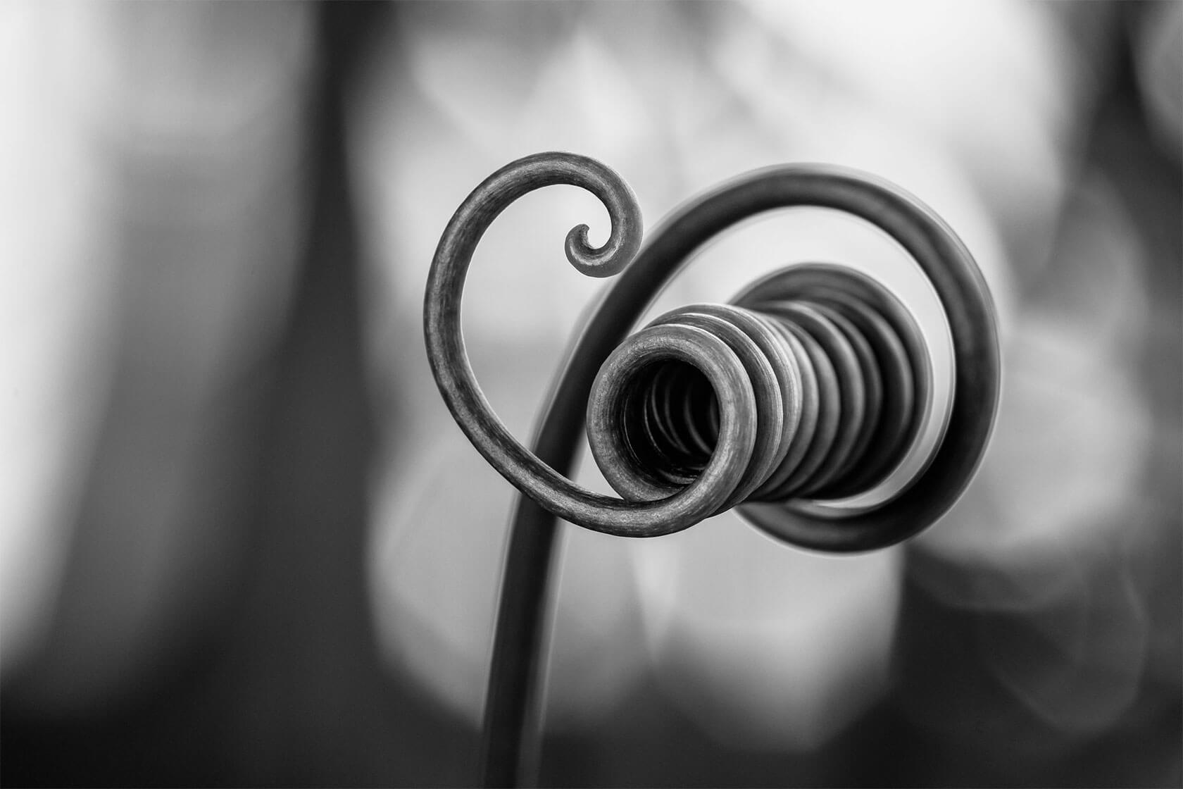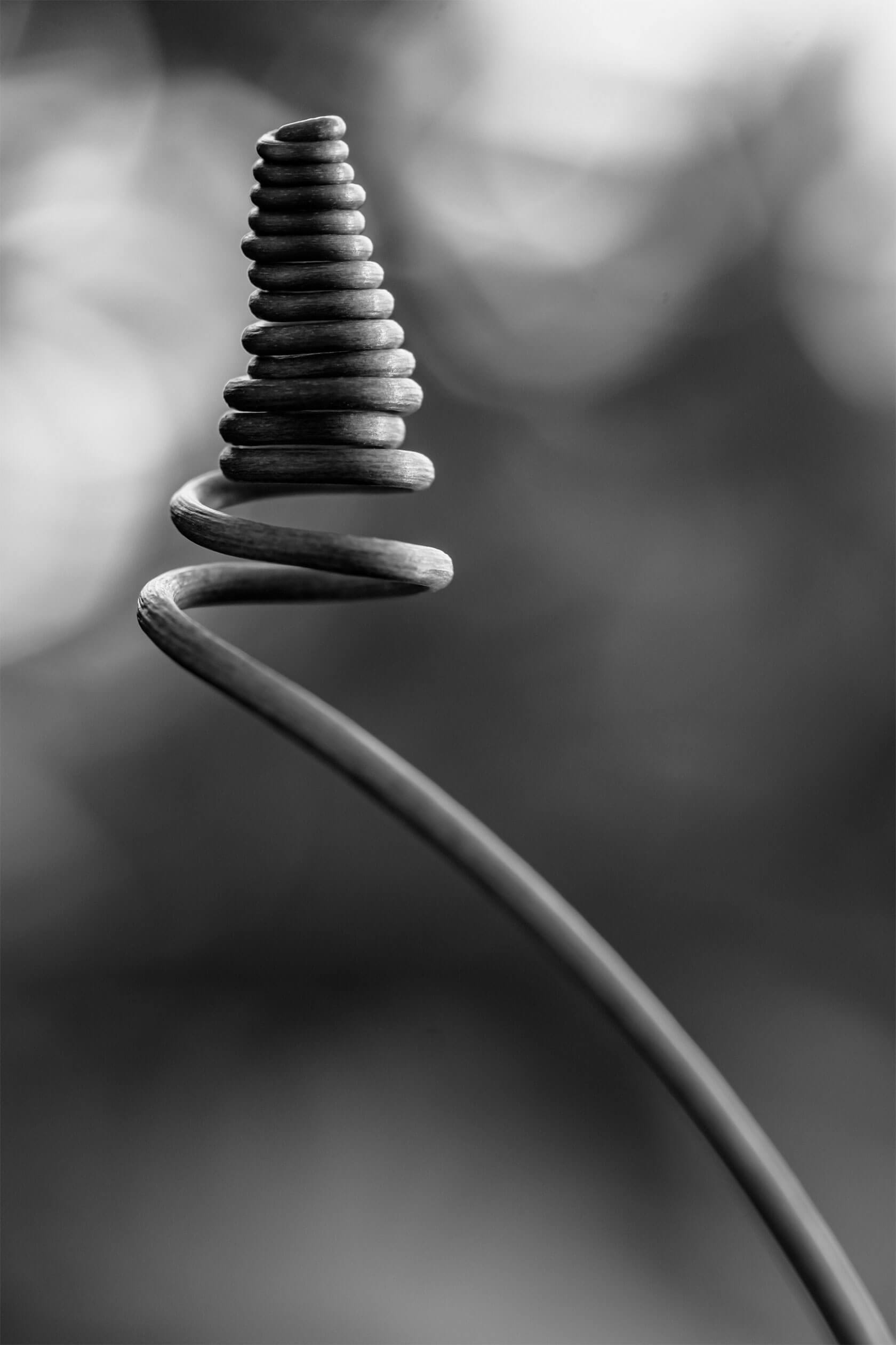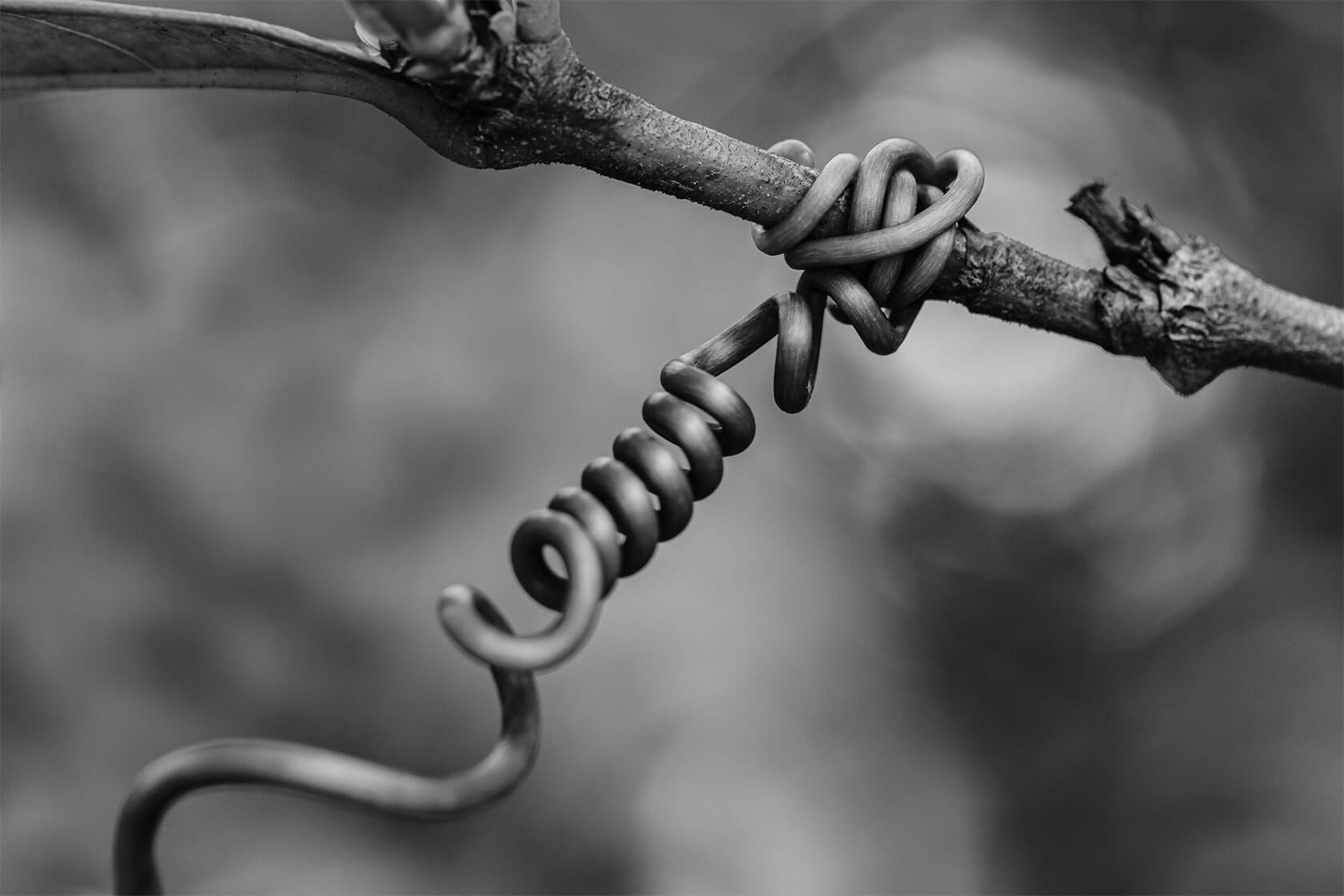 The project focuses on the intricate tendrils that allow climbing plants to anchor, stretch and thrive. Bruno isolates these tiny structures with striking clarity, revealing elegant loops, tight coils and striking geometric twists. Stripped of color, each frame becomes a sculptural study in texture and rhythm, highlighting the organic engineering behind the plant’s growth.