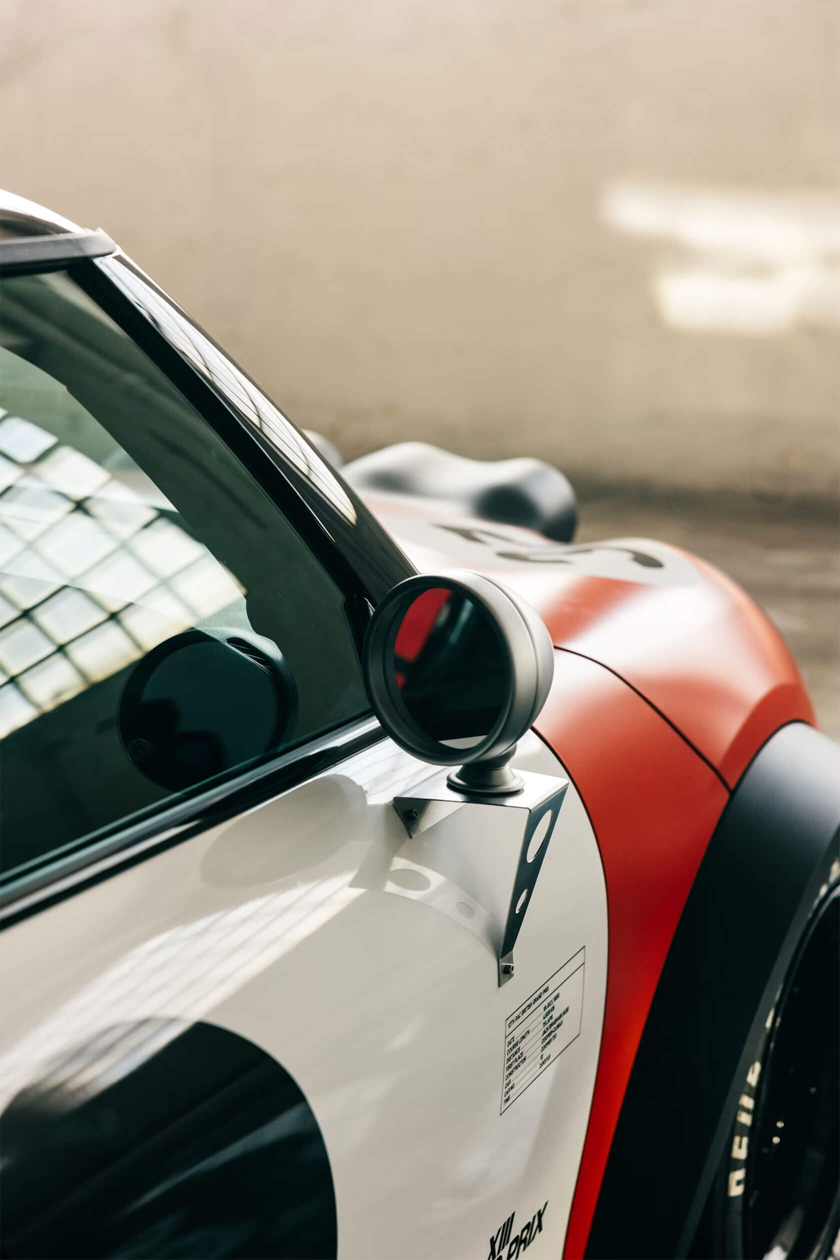The collaboration came to life after years of friendship and shared passion for motorsport. After designing a custom livery for a historic Mini Cooper S in 2023, Matt reunited with Deus creative director Carby Tuckwell and brought Piotr into the mix. What began as a graphic design project soon expanded into the full physical form of the cars, with Pentagram and Deus shaping everything from body materials to bespoke typefaces.