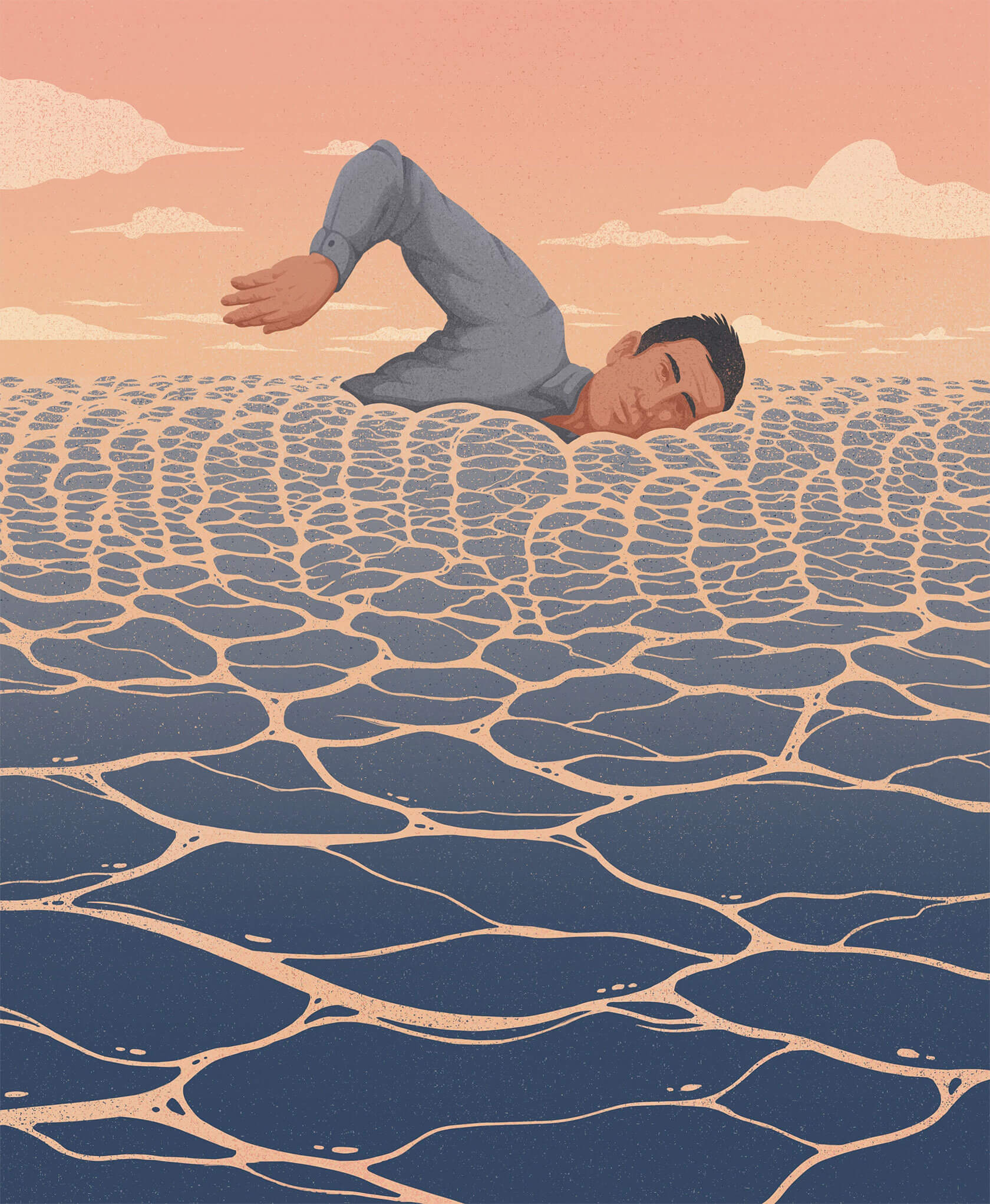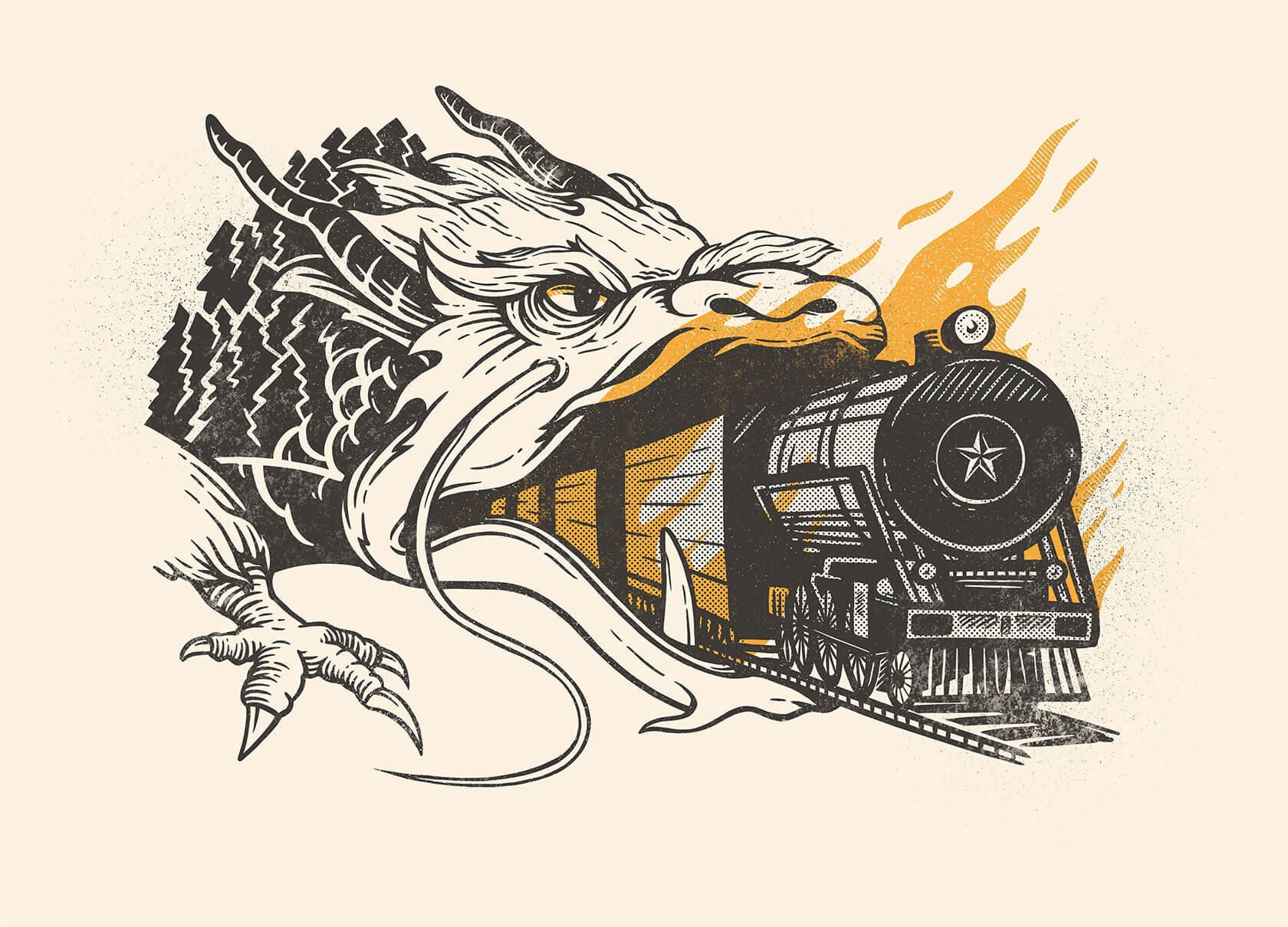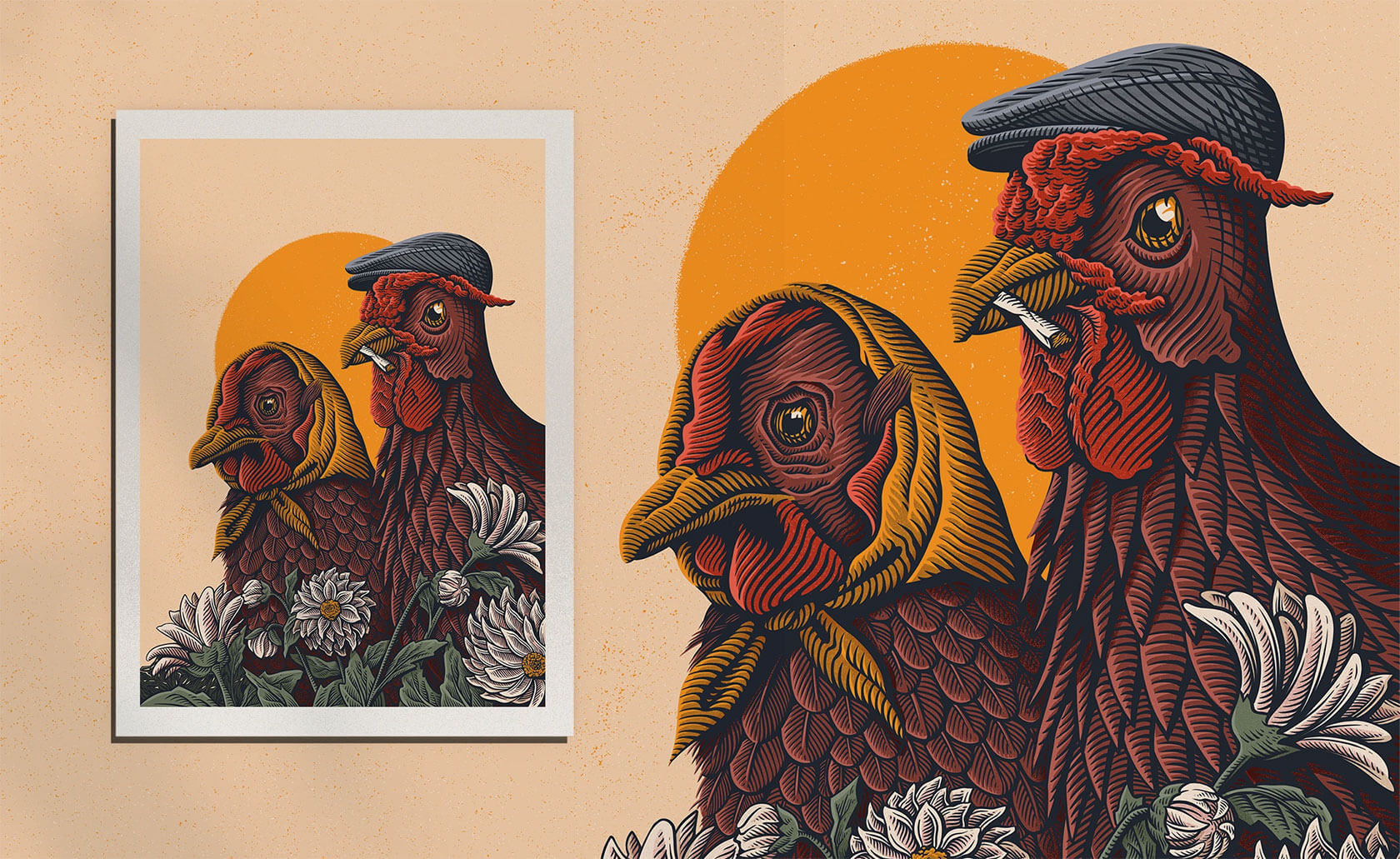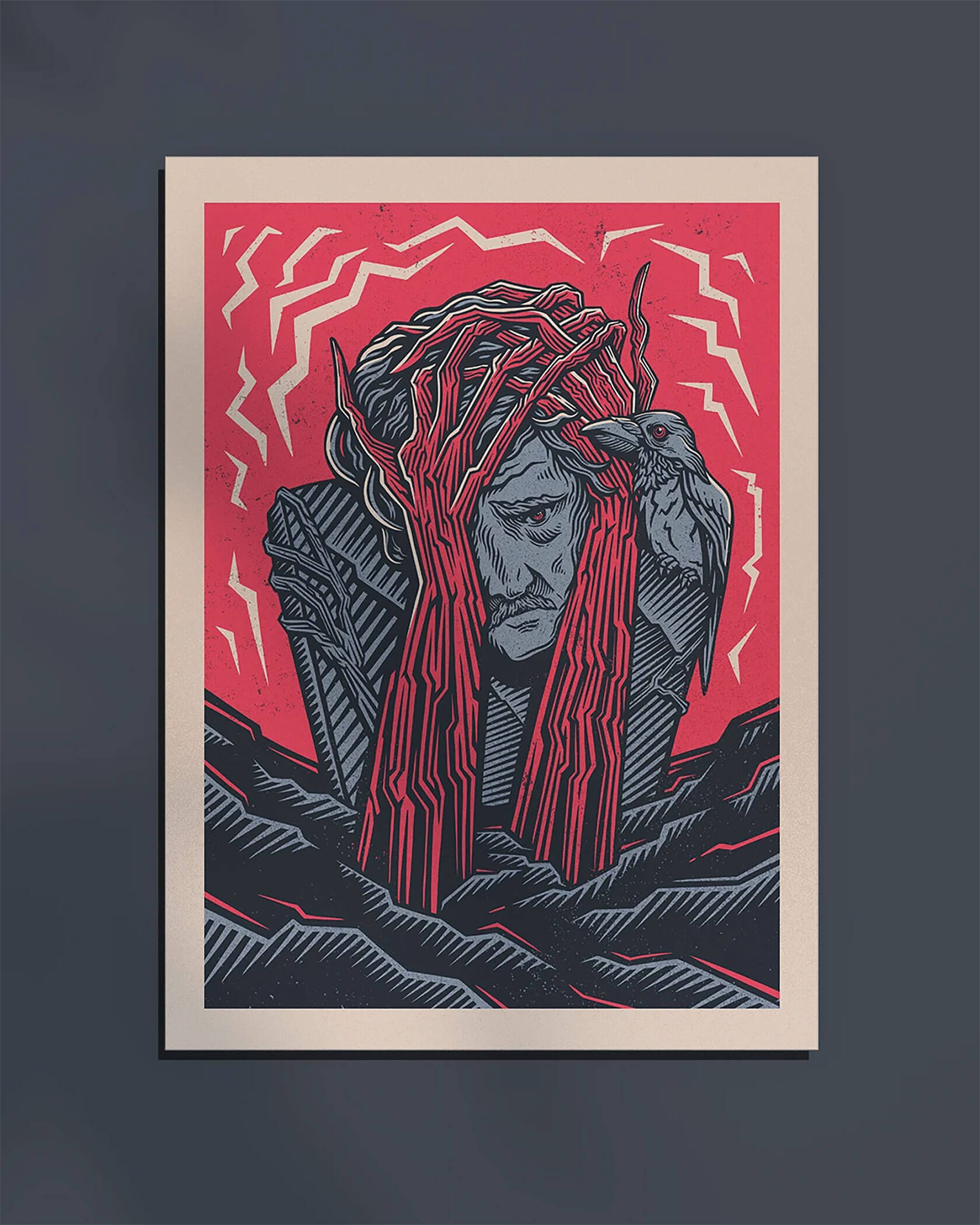 From concert posters to editorial illustrations, Serhii’s art strikes the perfect balance of grit and imagination. His unique style blends bold color palettes with woodcut-inspired textures and intricate linework, often weaving together myth and metaphor. Skeletal figures wander through forests, lions bloom with daisies, and octopuses sprout watchful eyes across their tentacles.