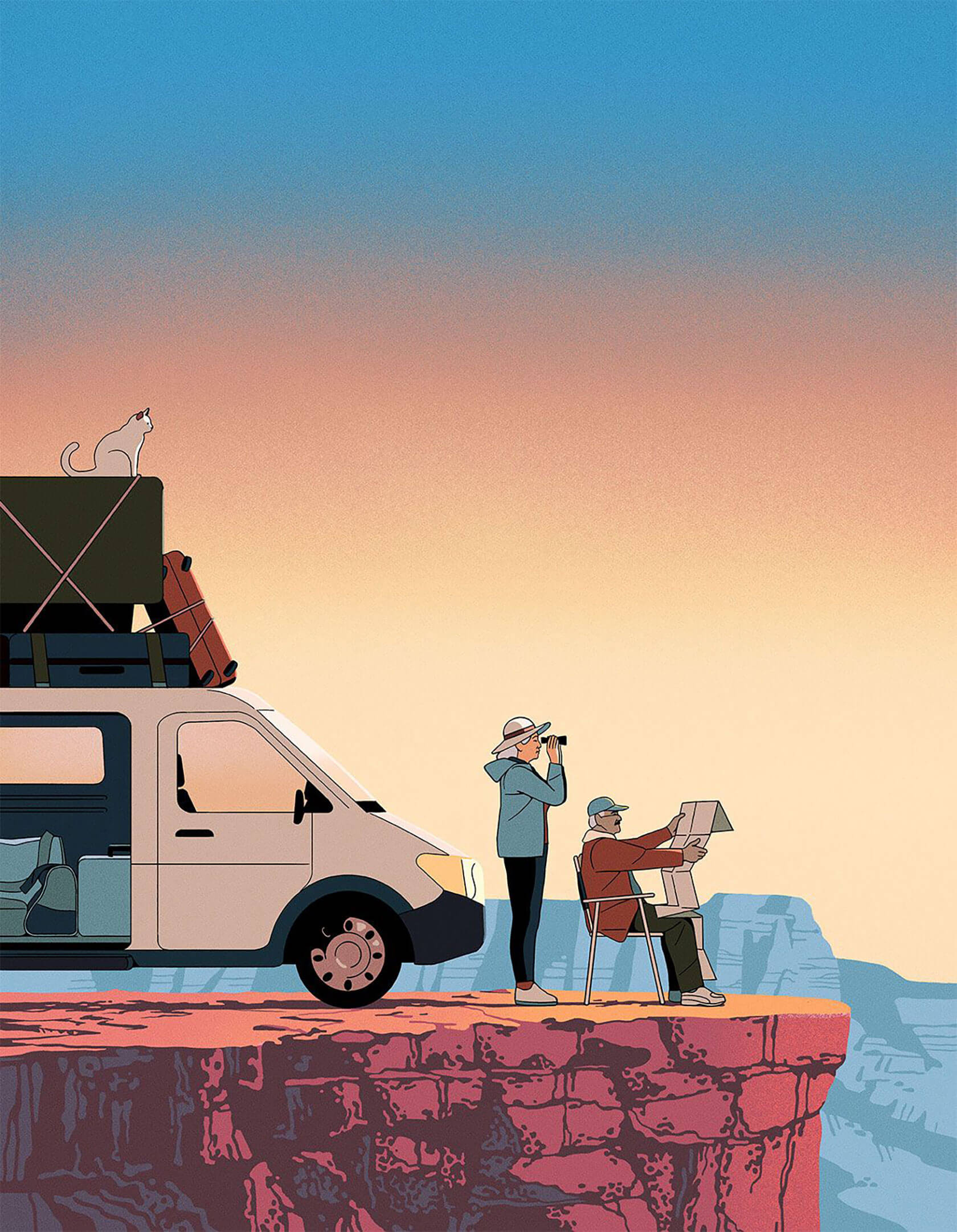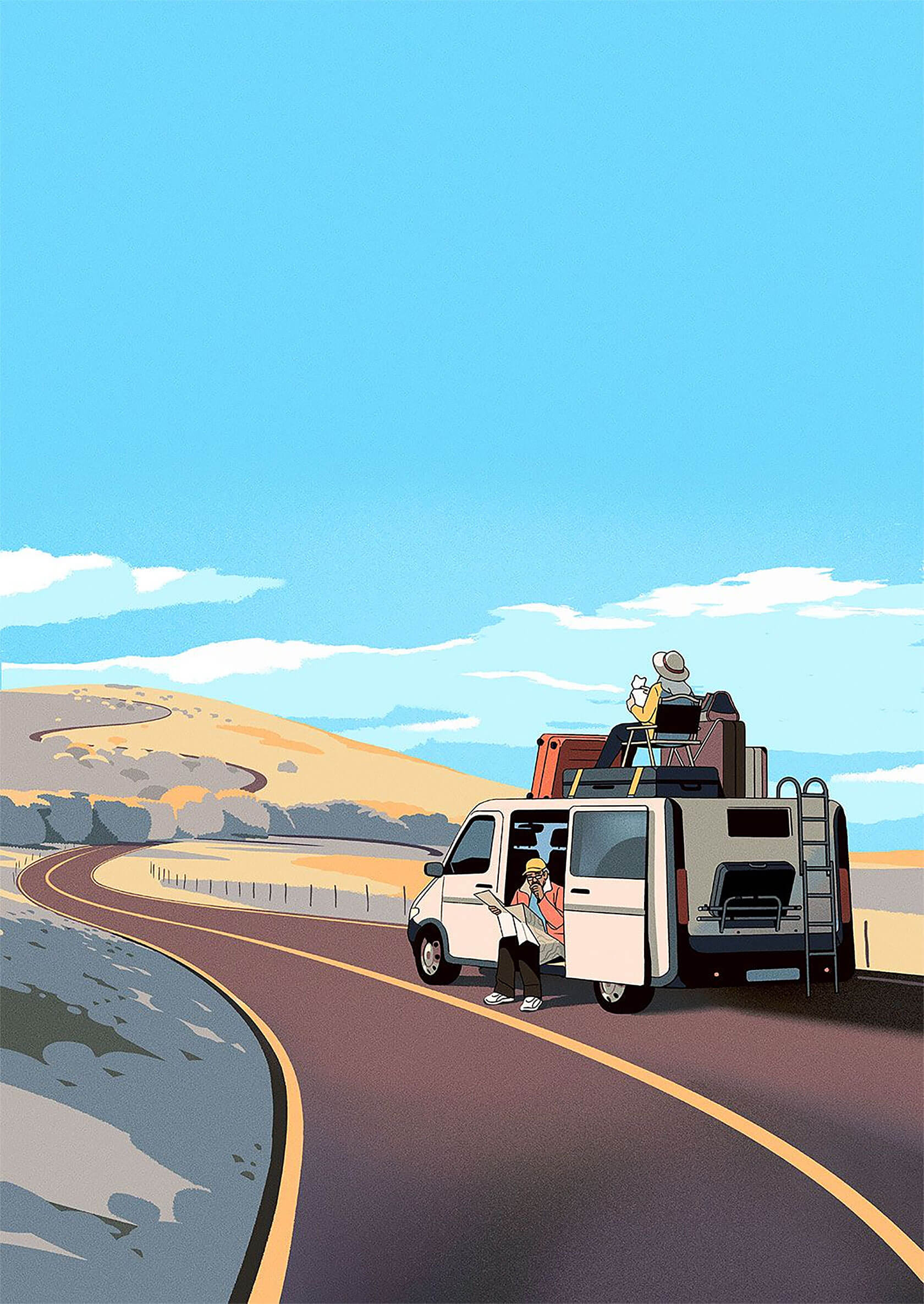 Paris-based illustrator, animator and director Bruno Mangyoku crafts scenes that feel lifted straight from a beautifully composed film frame. Educated at the legendary Gobelins school, Bruno brings a cinematic sensibility to his illustrations, focusing on gesture, silhouette and atmosphere as much as color or detail.