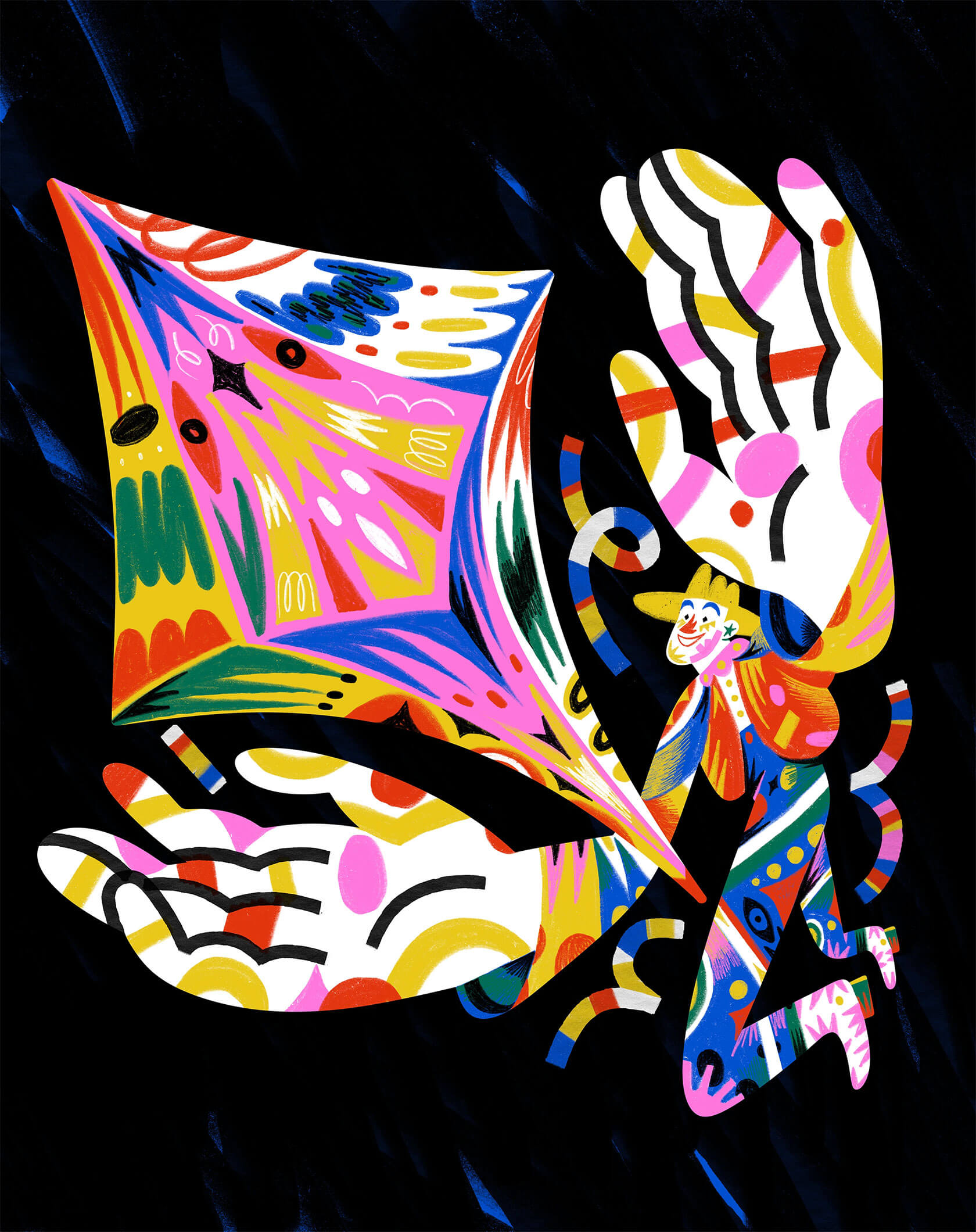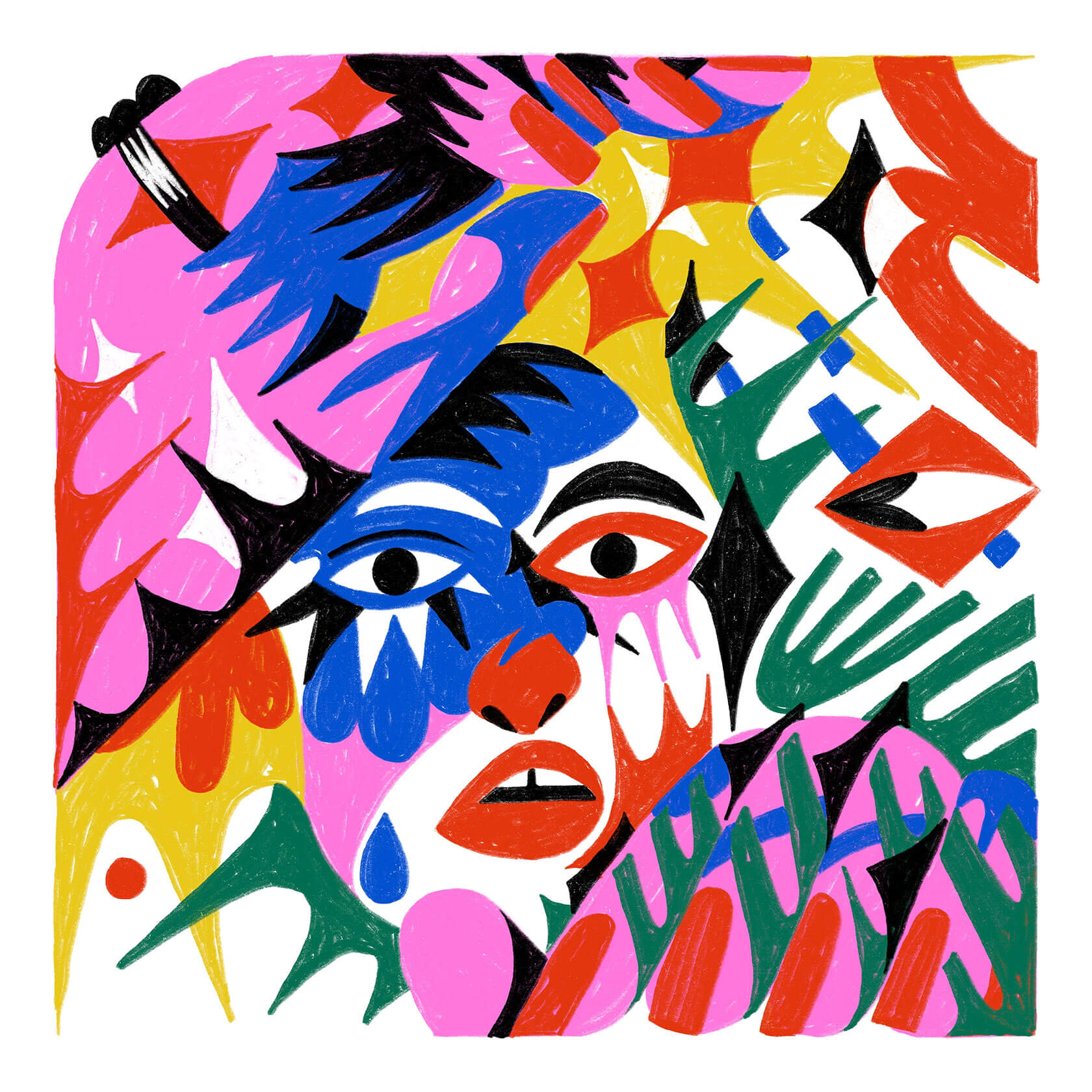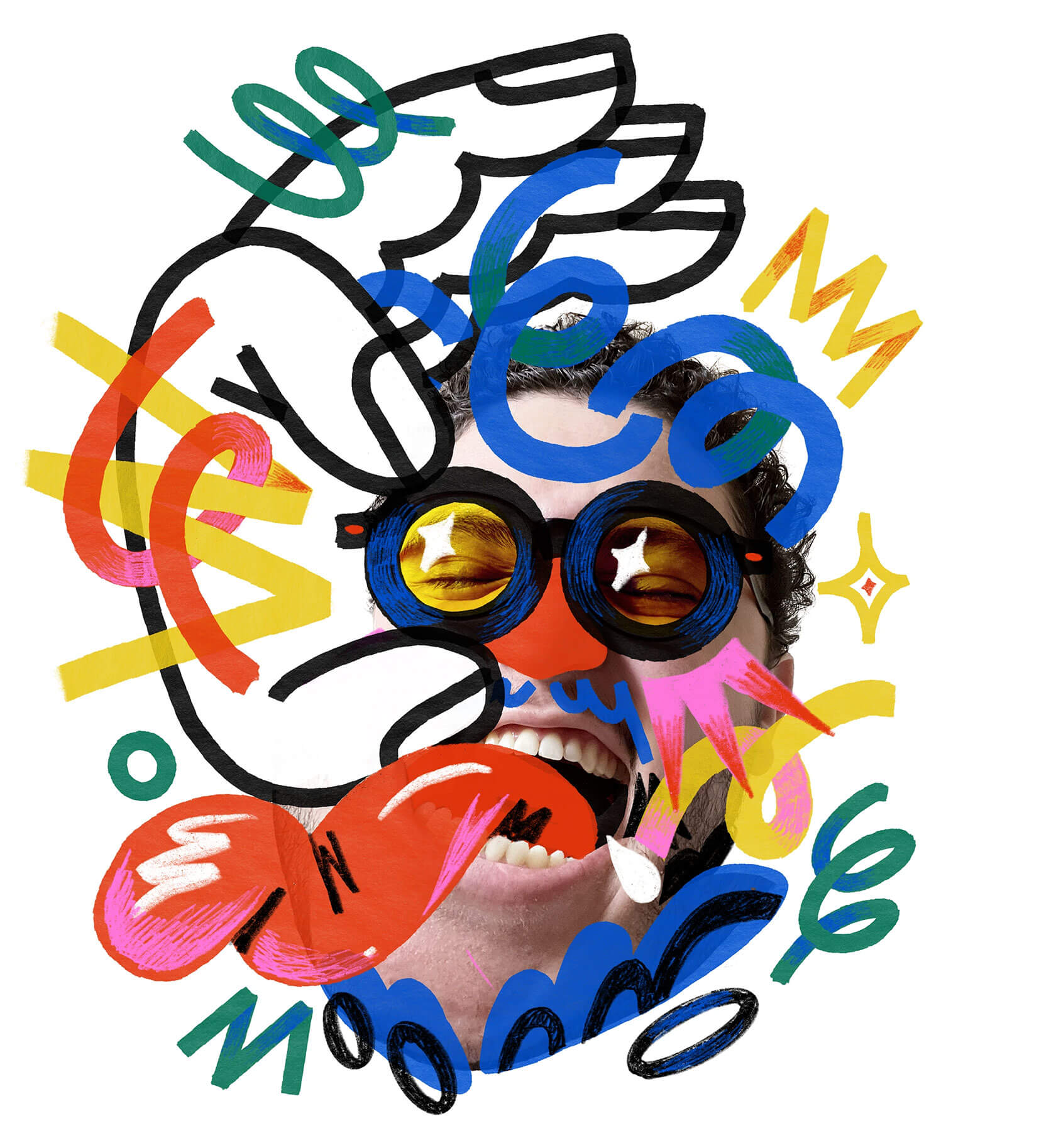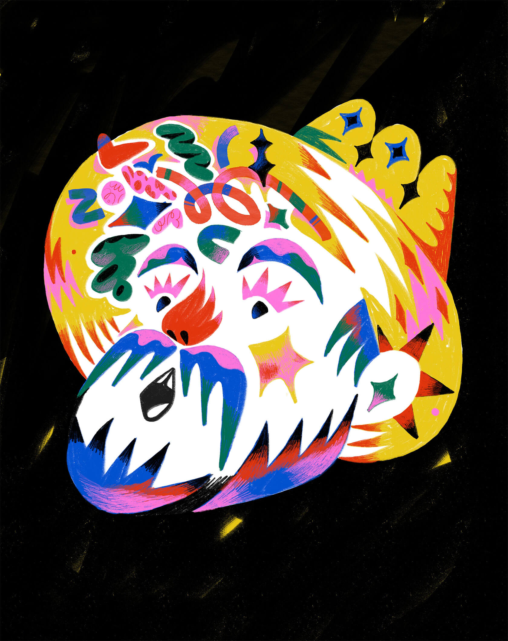 With a background in art direction and creative design, Yann brings a strong sense of visual rhythm and composition to his illustrations. His style is instantly recognizable — joyful, surreal, and unapologetically loud. Whether he’s creating expressive characters or abstract, dreamlike scenes, every stroke seems to vibrate with emotion and intent.