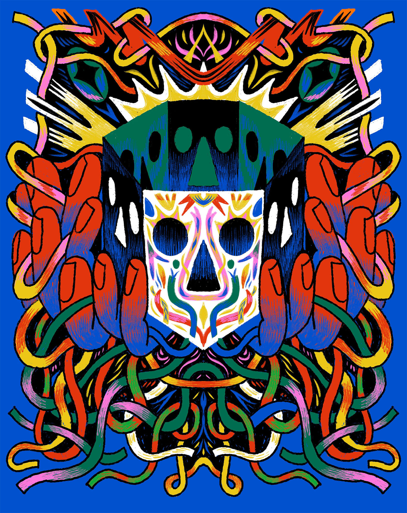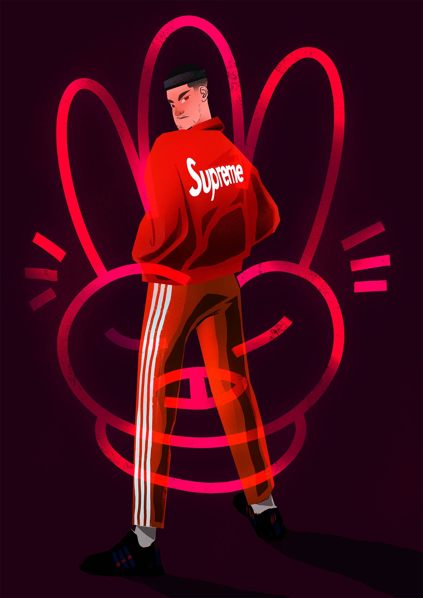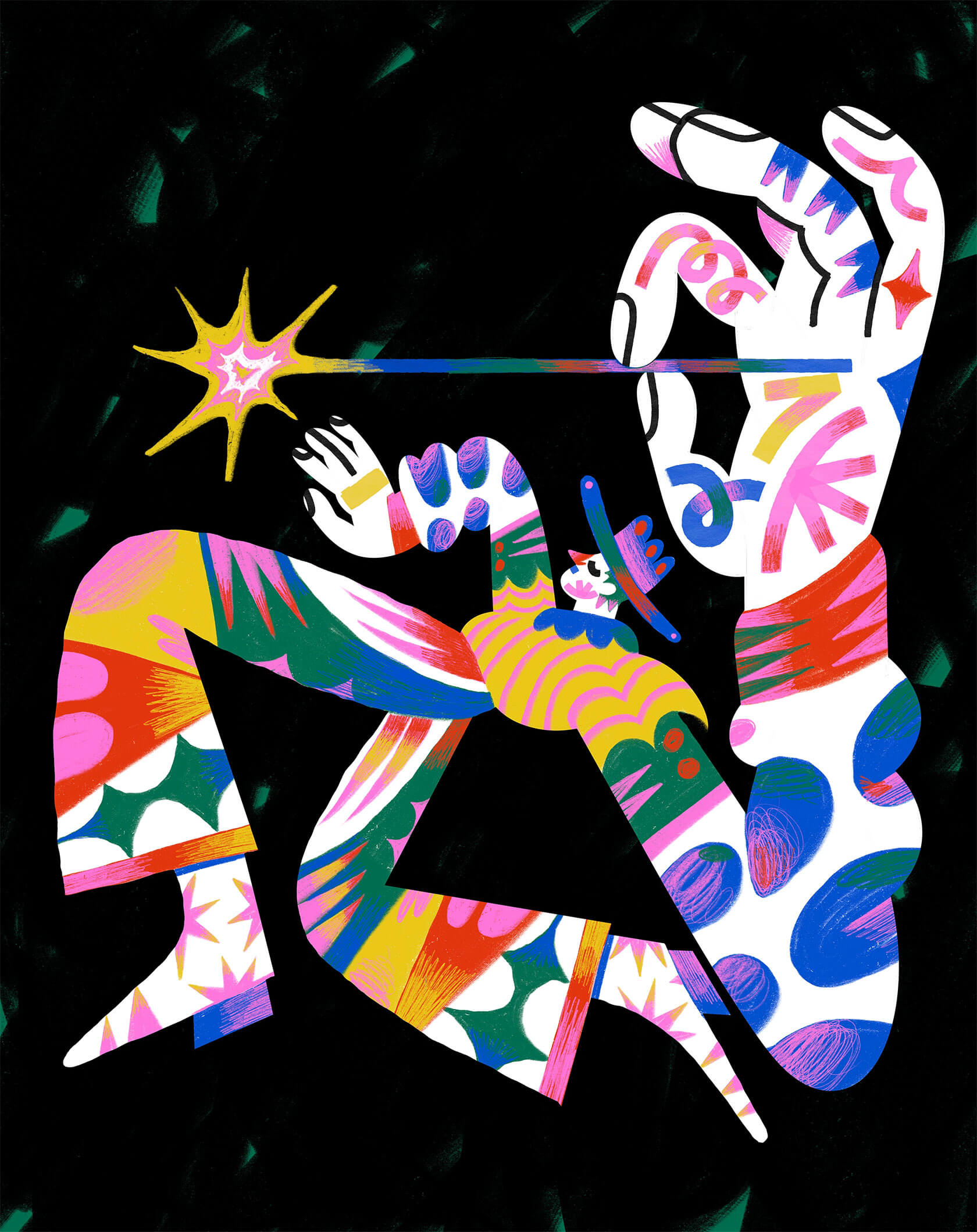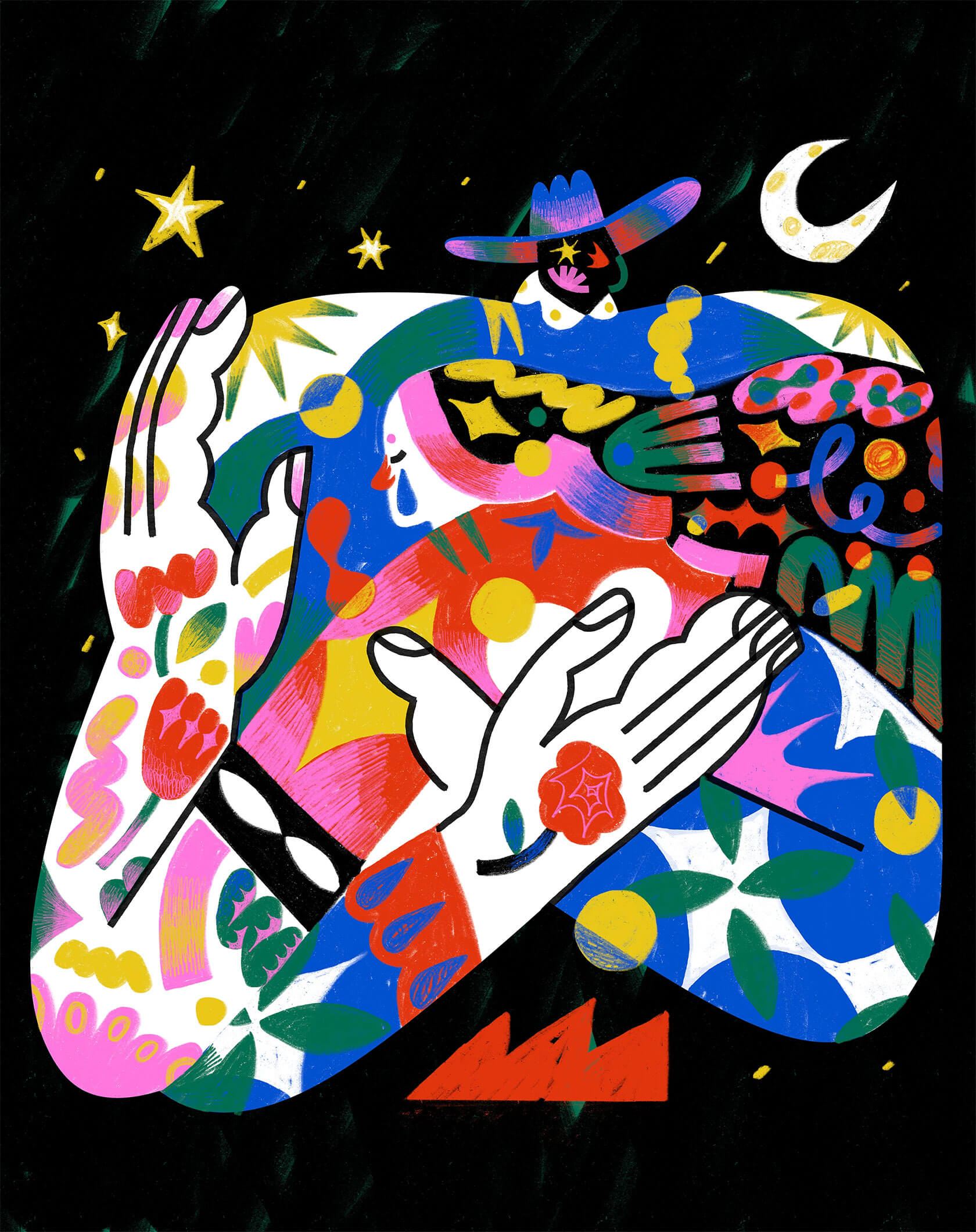 With a background in art direction and creative design, Yann brings a strong sense of visual rhythm and composition to his illustrations. His style is instantly recognizable — joyful, surreal, and unapologetically loud. Whether he’s creating expressive characters or abstract, dreamlike scenes, every stroke seems to vibrate with emotion and intent.
