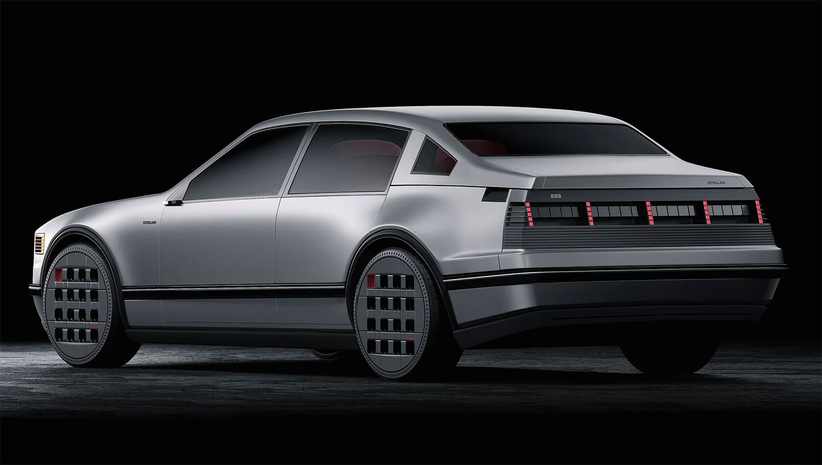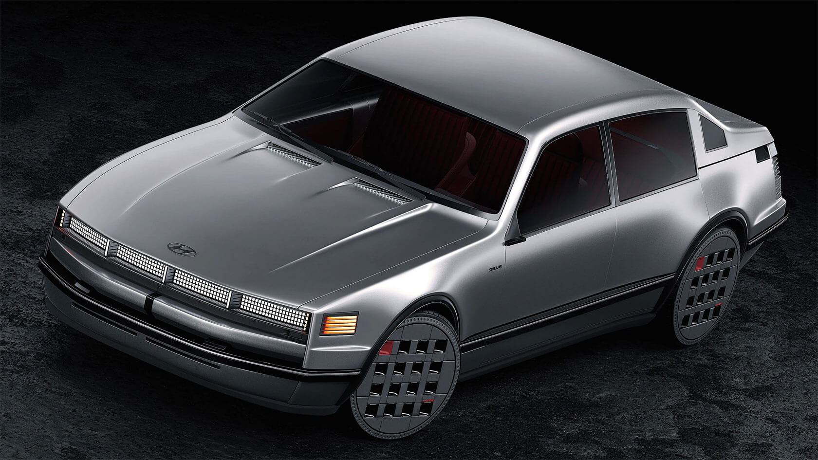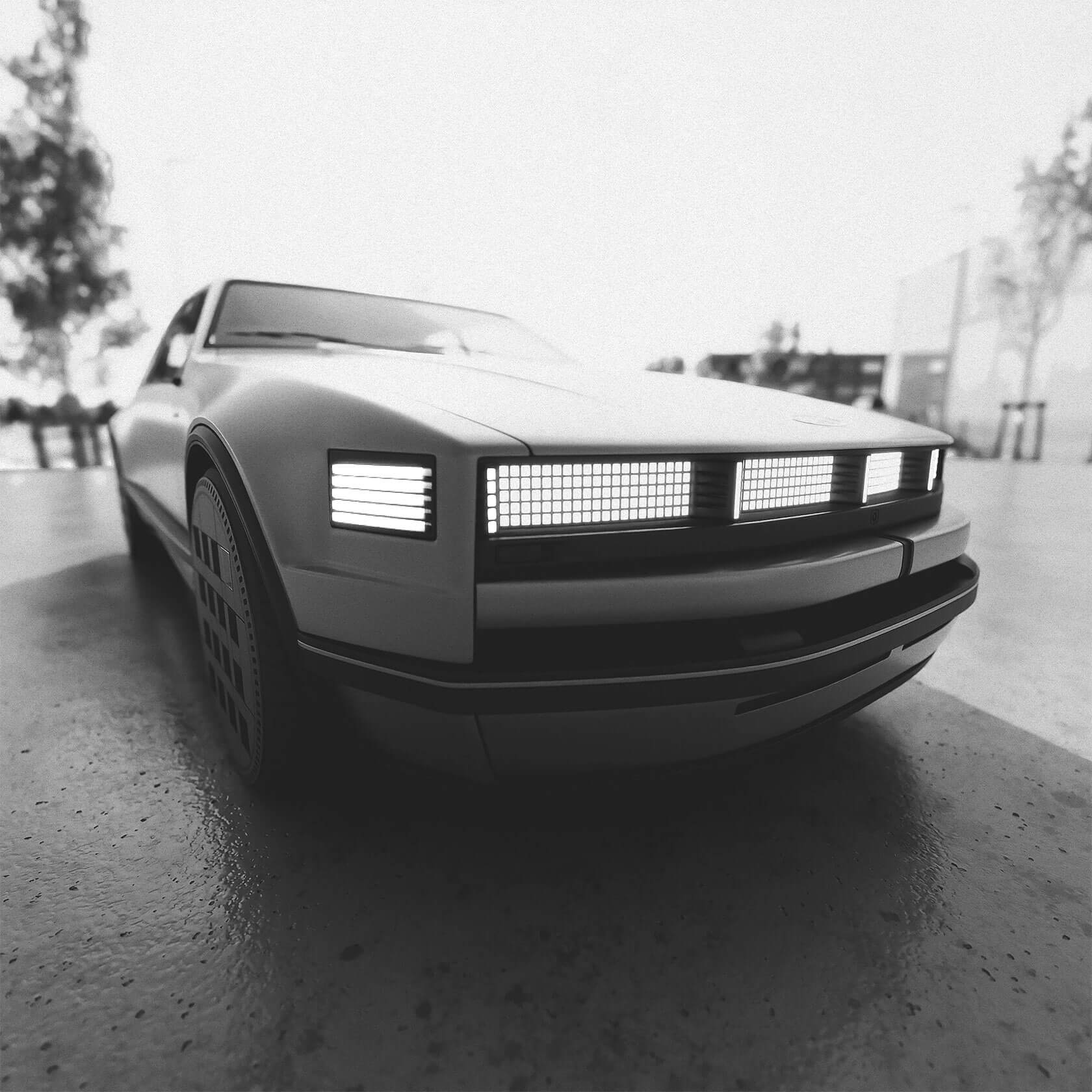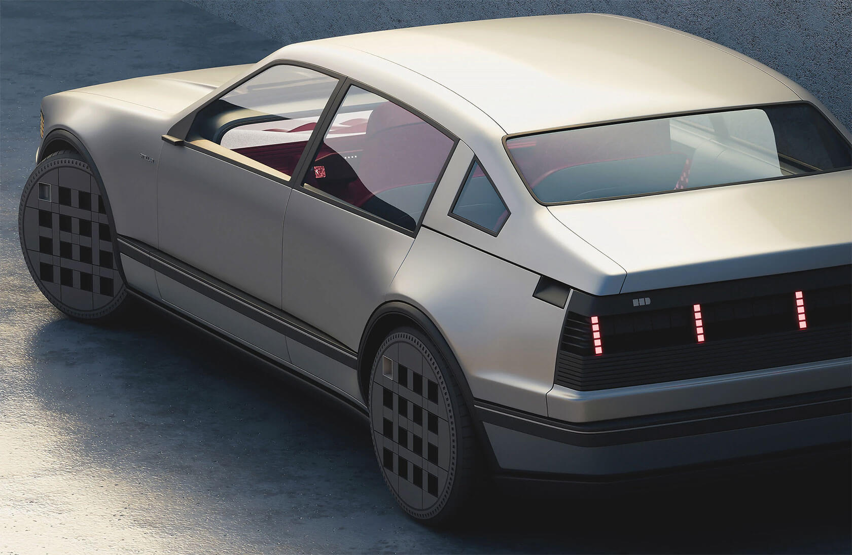 That idea of continuity shapes every part of the project. The exterior retains the clean, understated geometry of the 1980s sedan, but its proportions and surfaces are refined into something sharper and more sculptural. Pixel-like lighting details and bold, grid-pattern wheels add a modern edge, but the car still feels true to its heritage.
