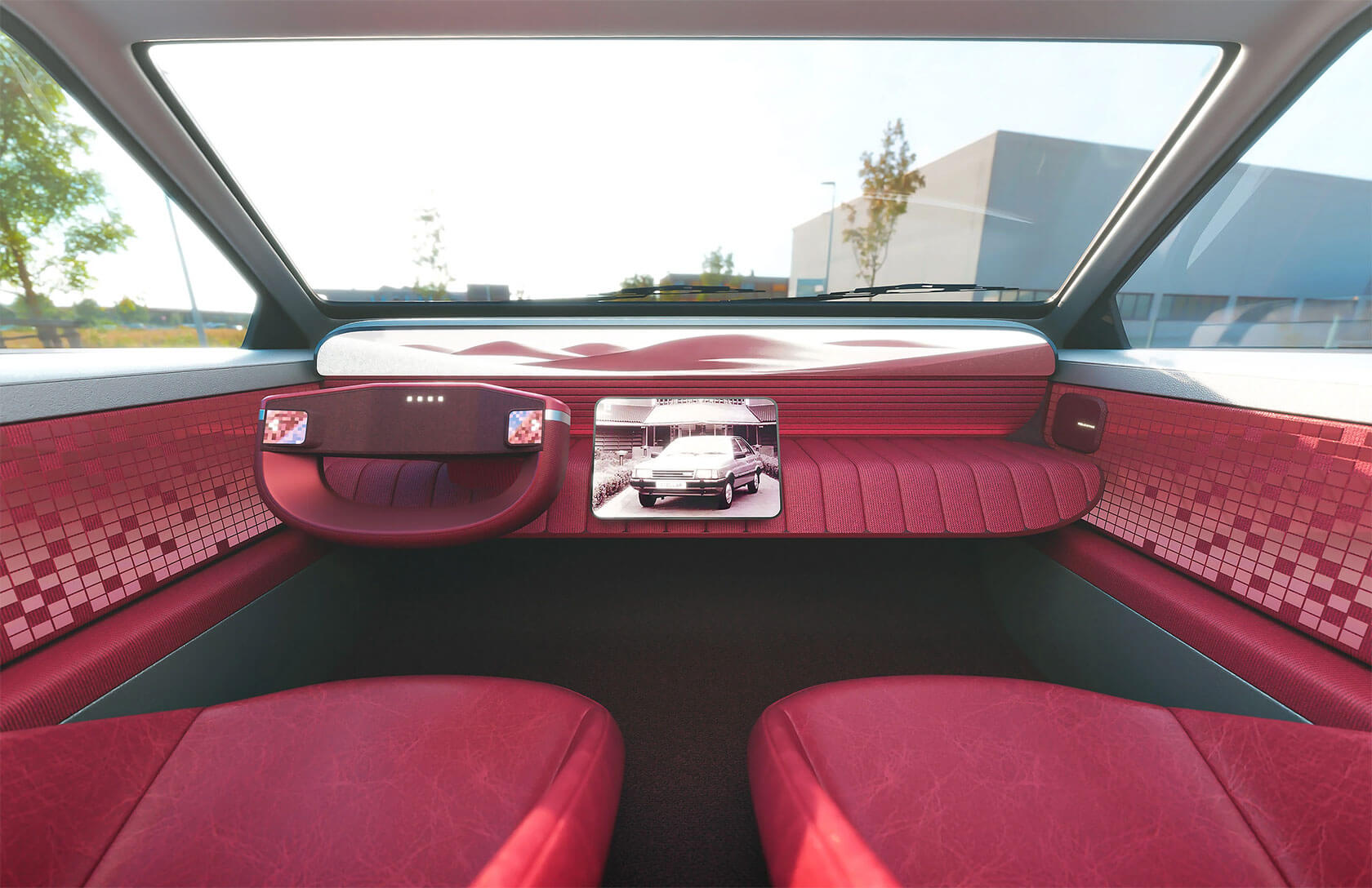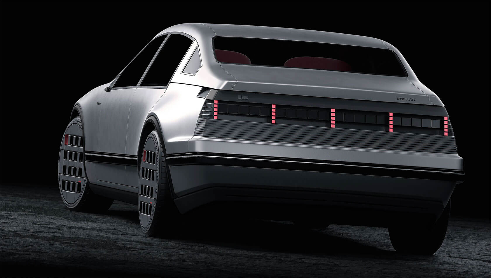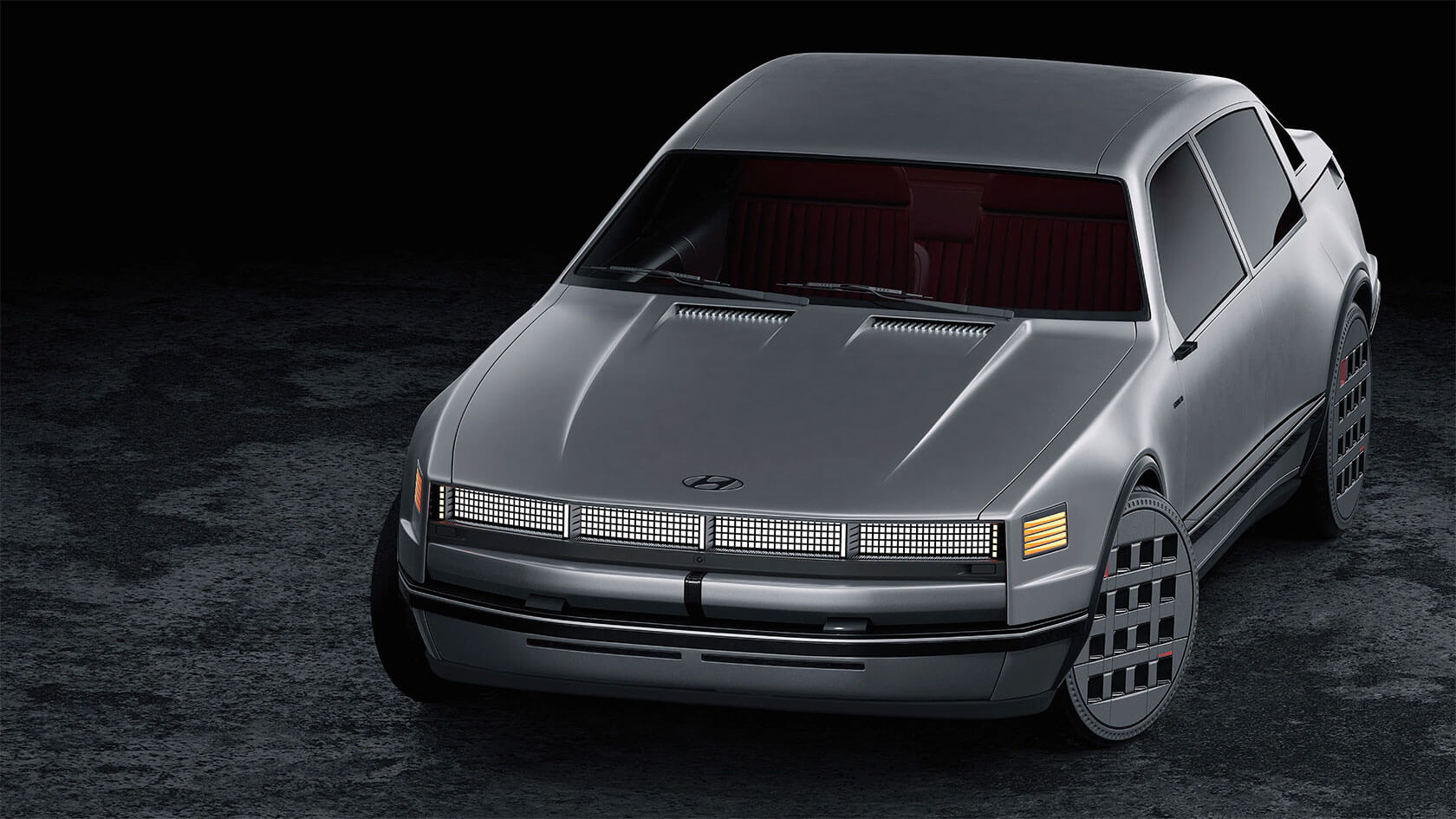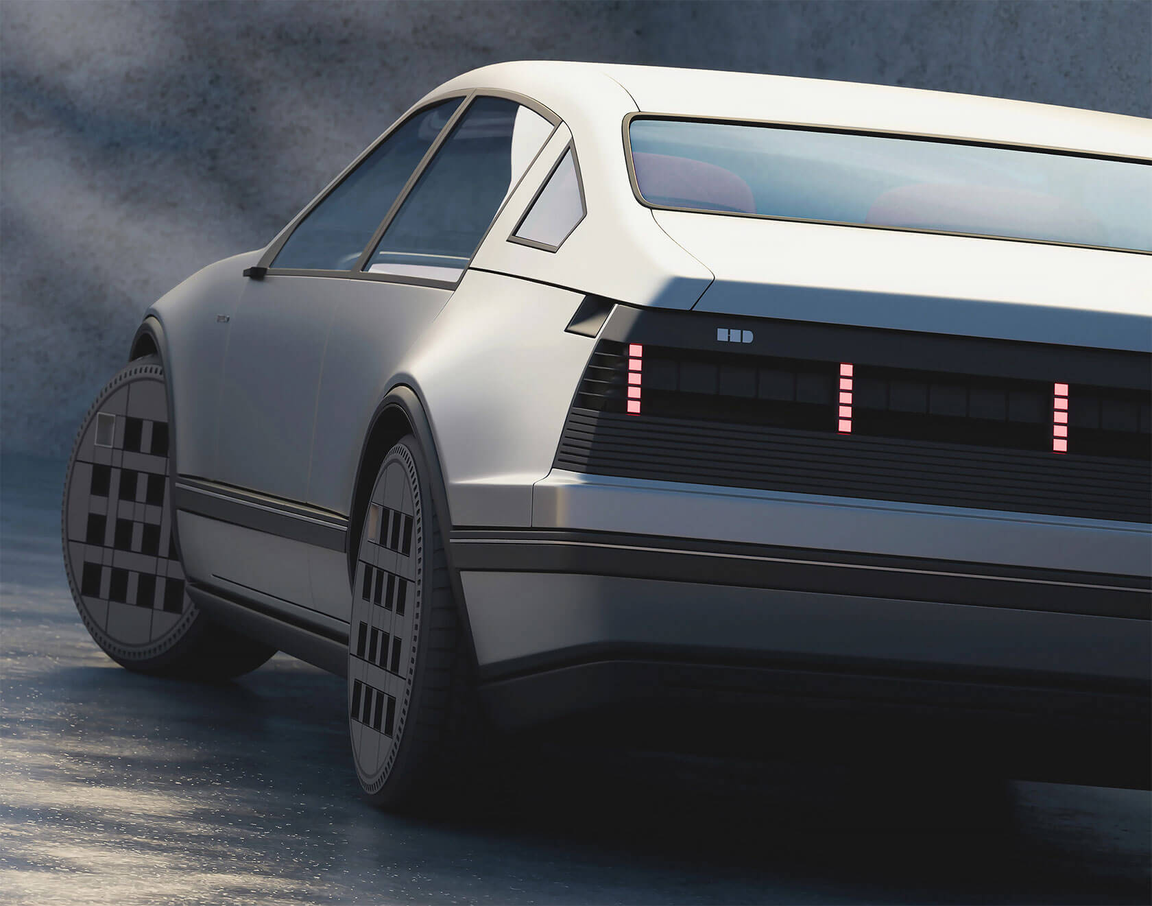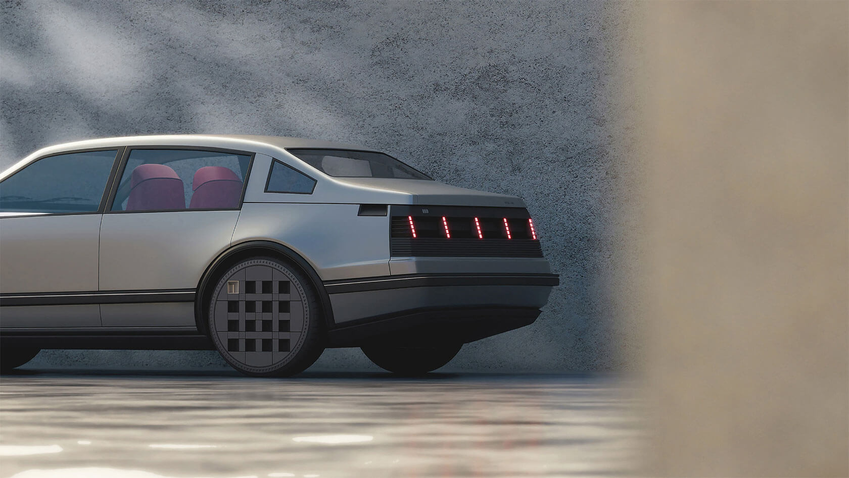 That idea of continuity shapes every part of the project. The exterior retains the clean, understated geometry of the 1980s sedan, but its proportions and surfaces are refined into something sharper and more sculptural. Pixel-like lighting details and bold, grid-pattern wheels add a modern edge, but the car still feels true to its heritage.