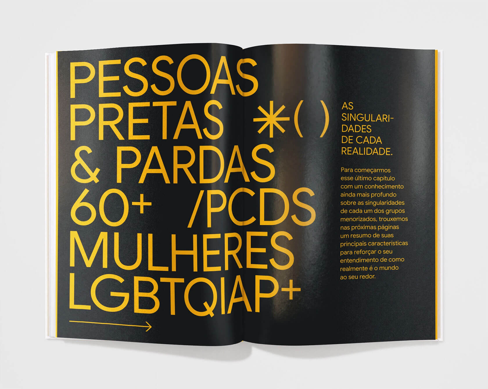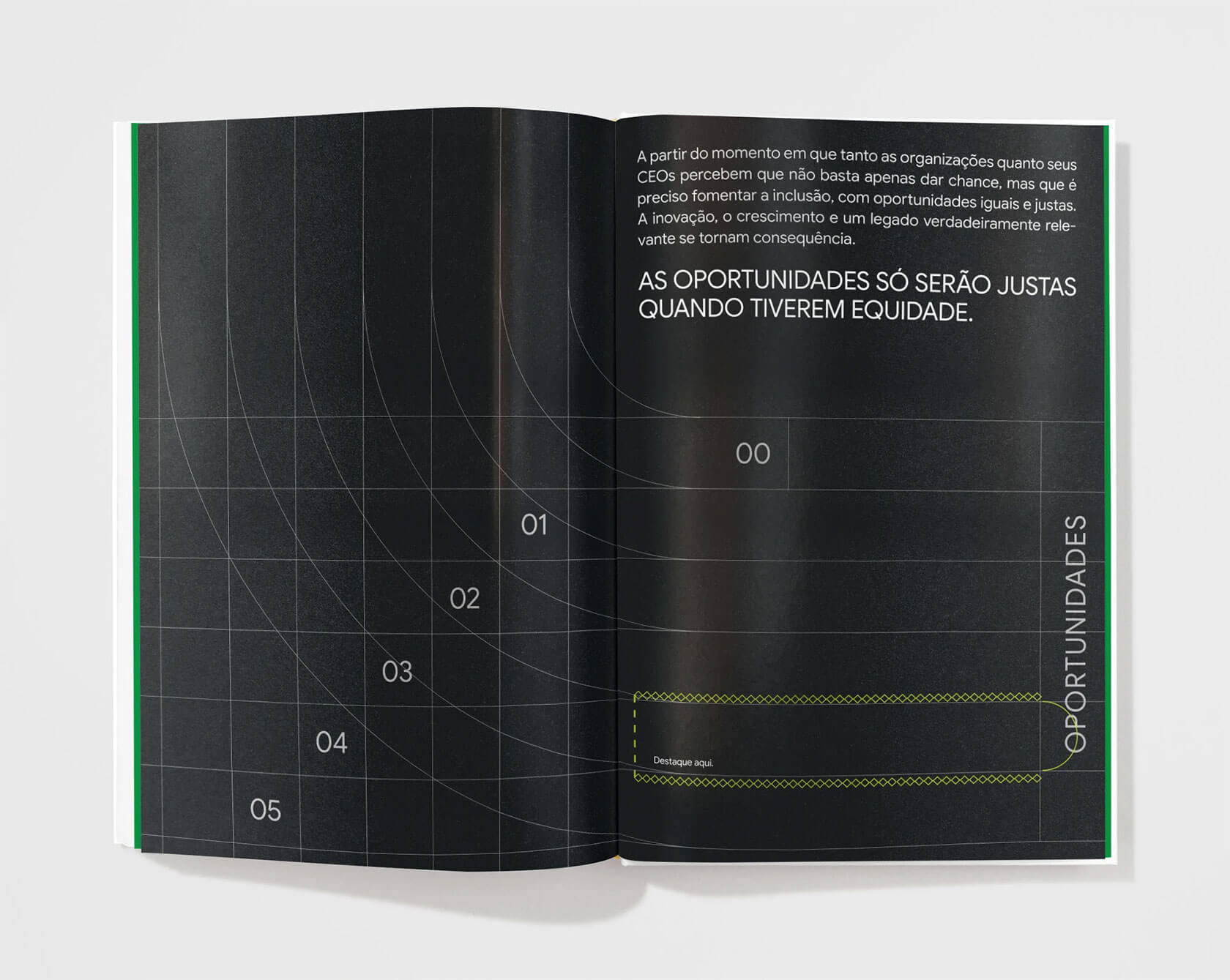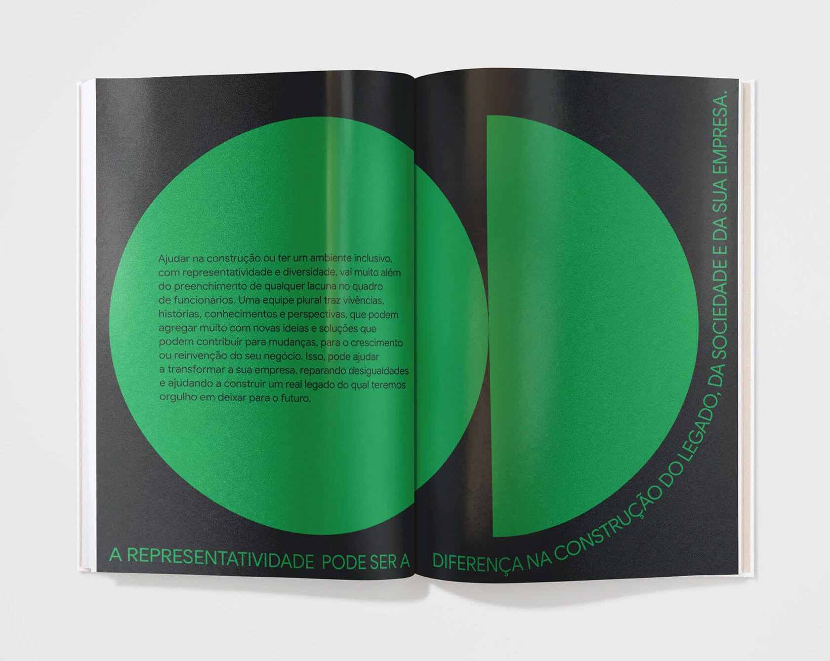 Inside, bold colors, impactful typography and minimalist visuals challenge readers (particularly CEOs) to reflect on their role in shaping a legacy of diversity, equity and inclusion. The book’s graphic language, from geometric shapes to vibrant chromatic transitions, reinforces a simple truth: inclusion must be seen, felt and acted upon.
