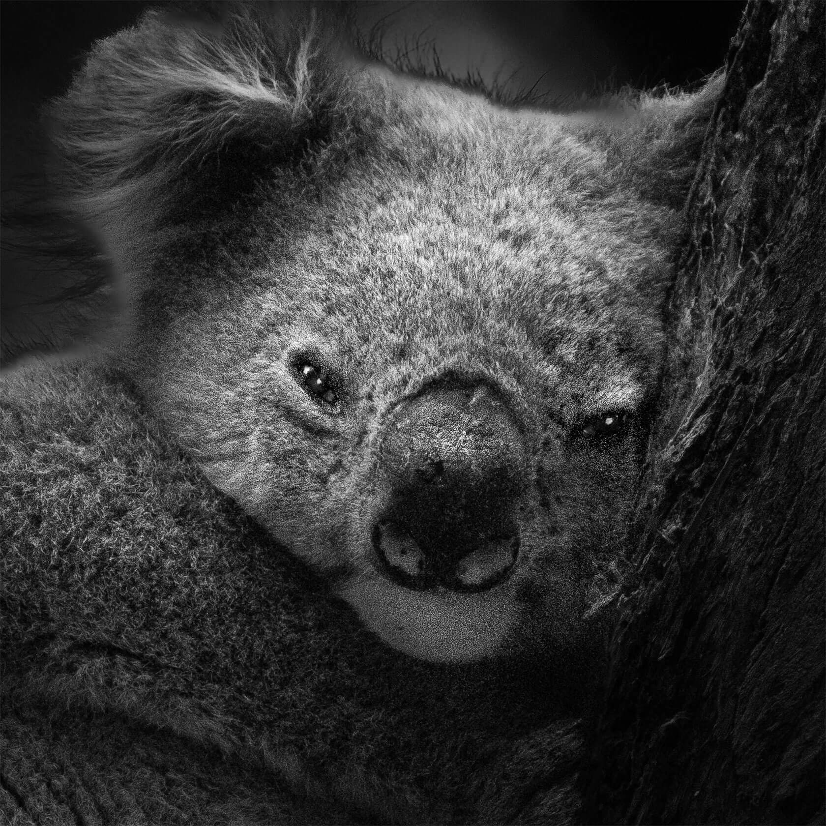 In The Primal Gaze, photographer Darrel Rhea strips away color to reveal the raw, sentient essence of the animal world. This series of monochrome portraits confronts the viewer with unwavering eye contact, creating an immediate sense of connection and equality between subject and observer.