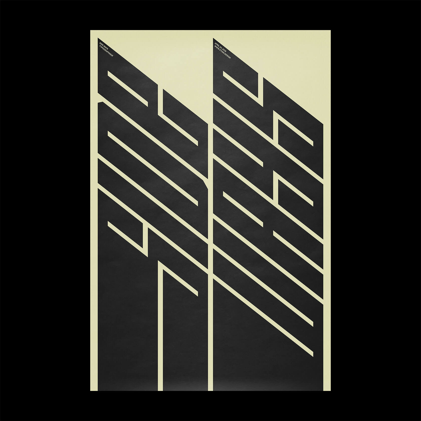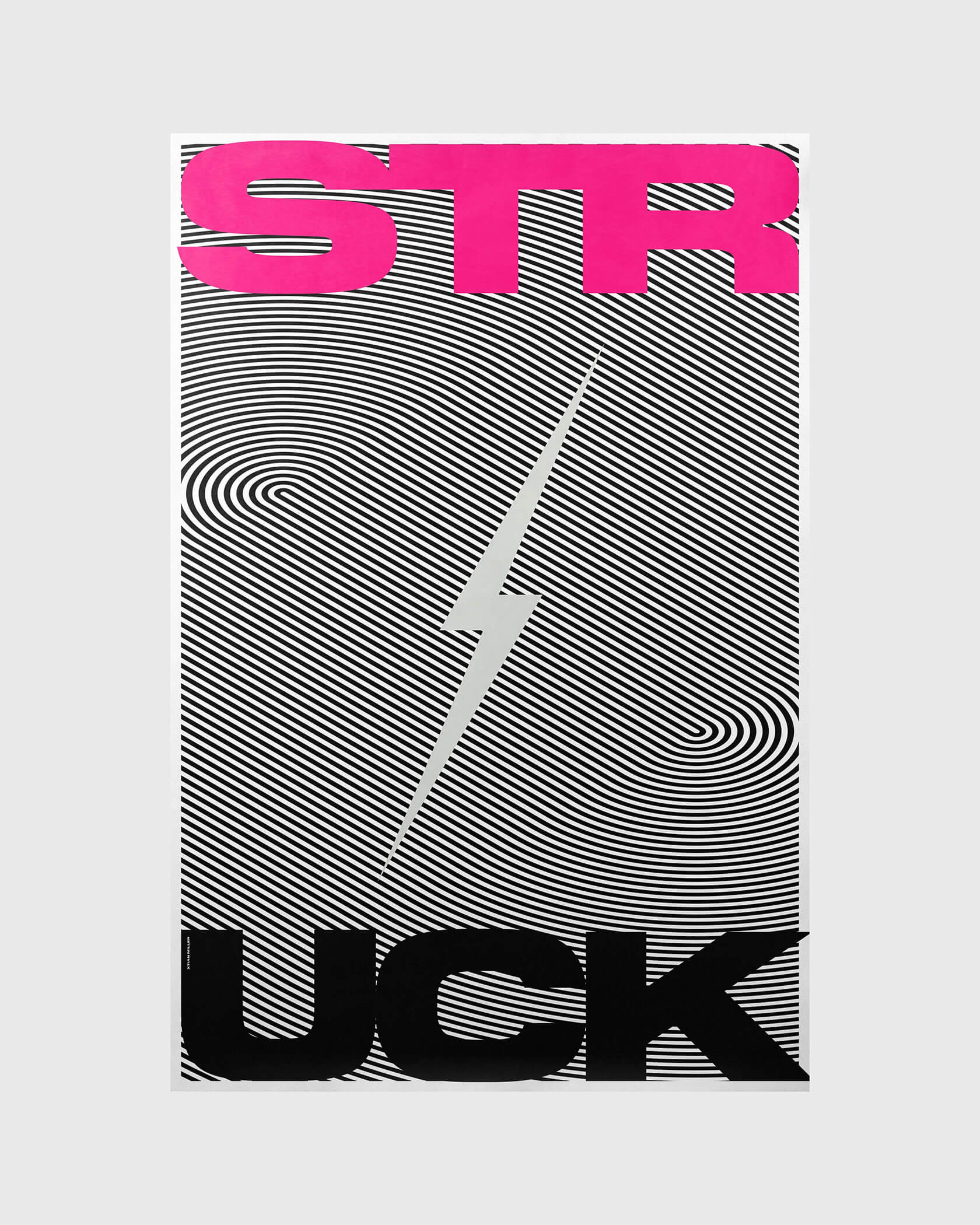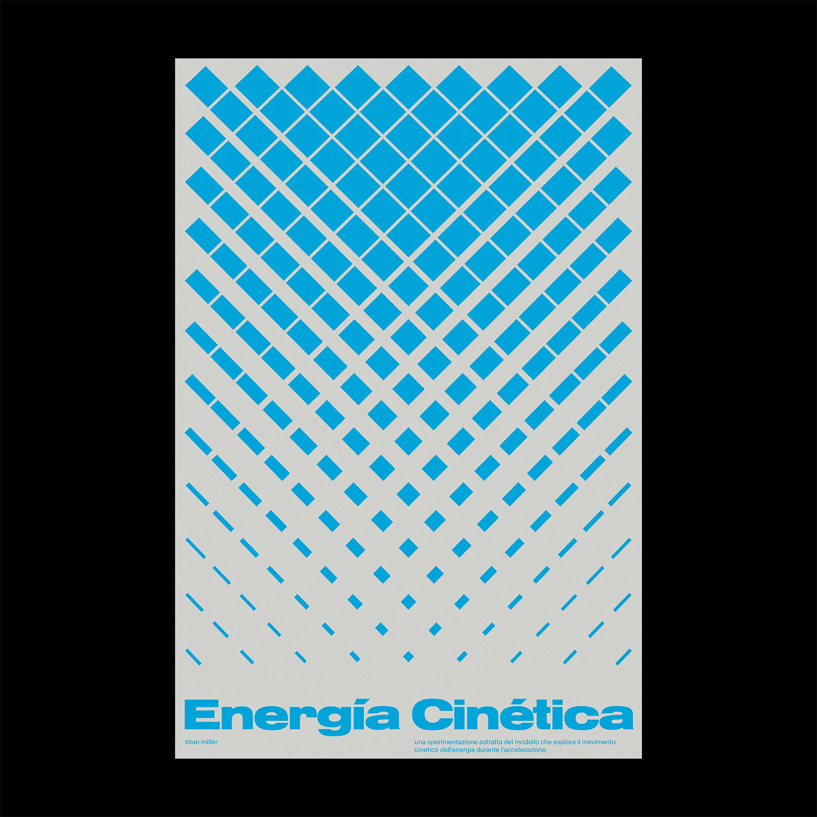 Xtian’s work is driven by a fascination with how words function in our brains, how we see, feel and process them beyond their literal meaning. His posters channel that curiosity into striking visual compositions: kinetic grids that pulse with motion, warped type that seems to vibrate, and bold color contrasts that jolt the senses.