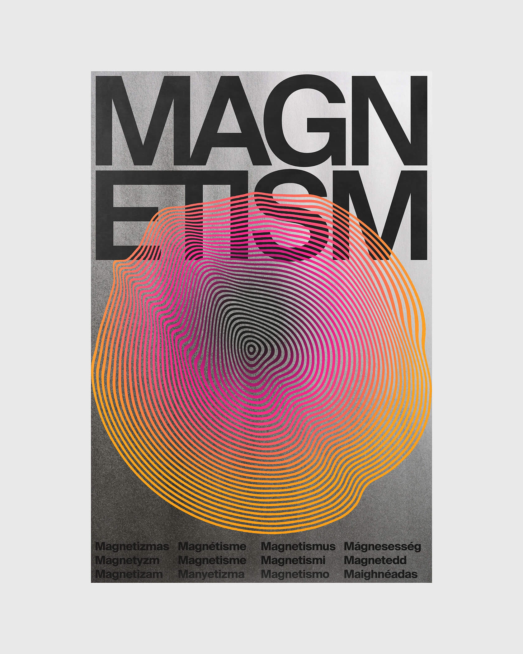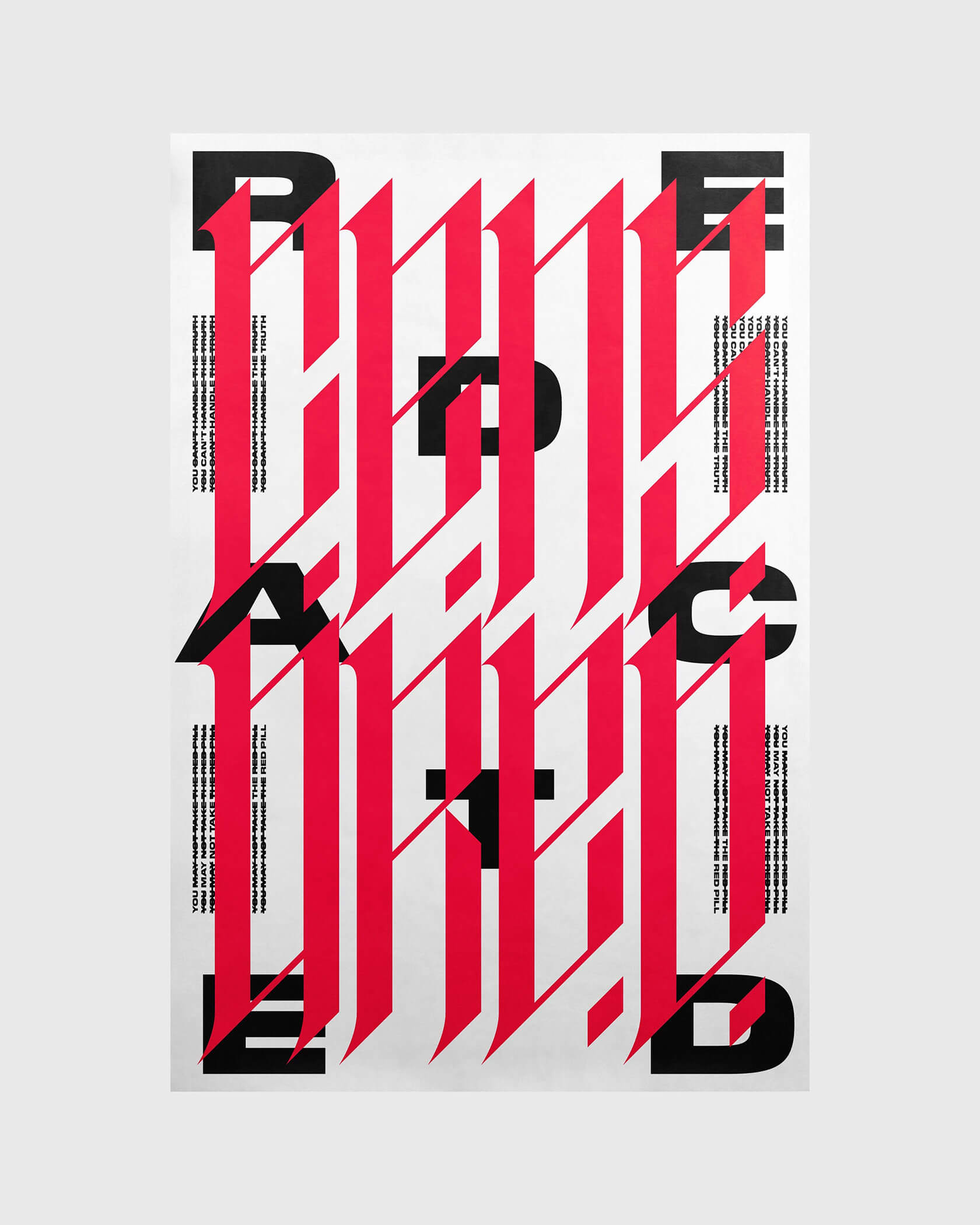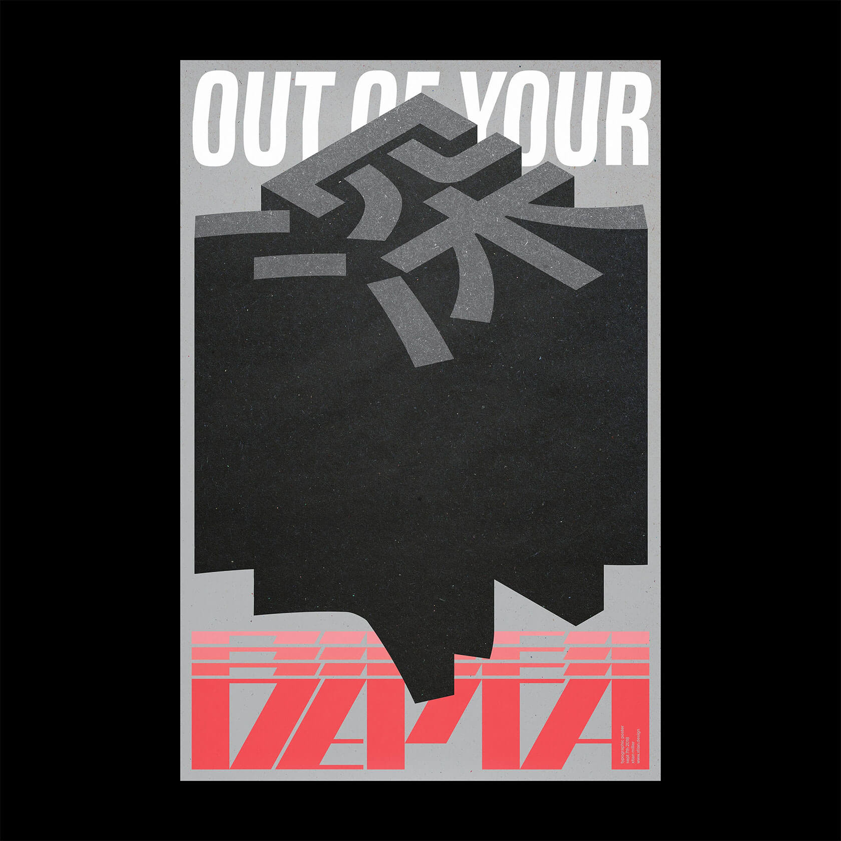 Xtian’s work is driven by a fascination with how words function in our brains, how we see, feel and process them beyond their literal meaning. His posters channel that curiosity into striking visual compositions: kinetic grids that pulse with motion, warped type that seems to vibrate, and bold color contrasts that jolt the senses.