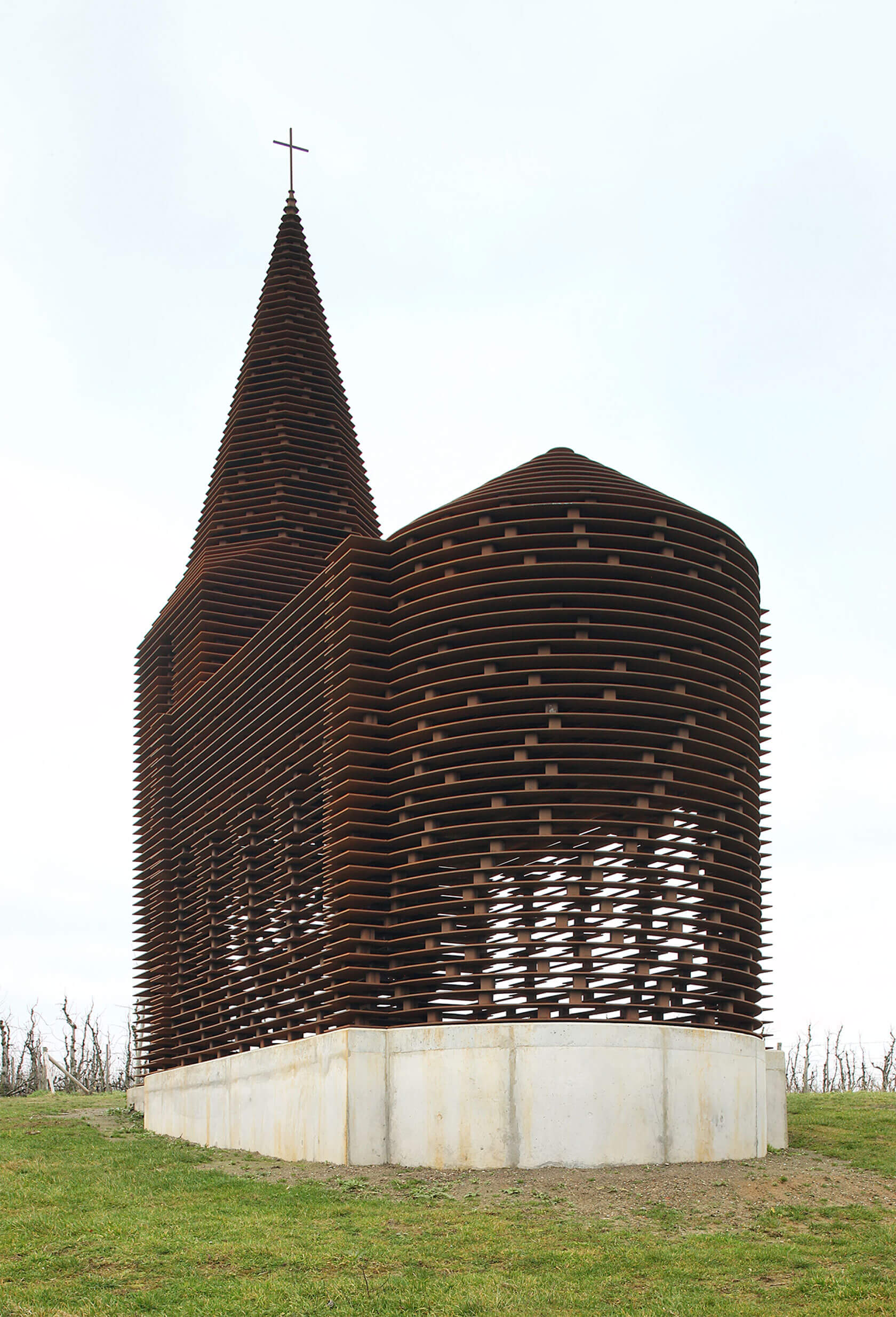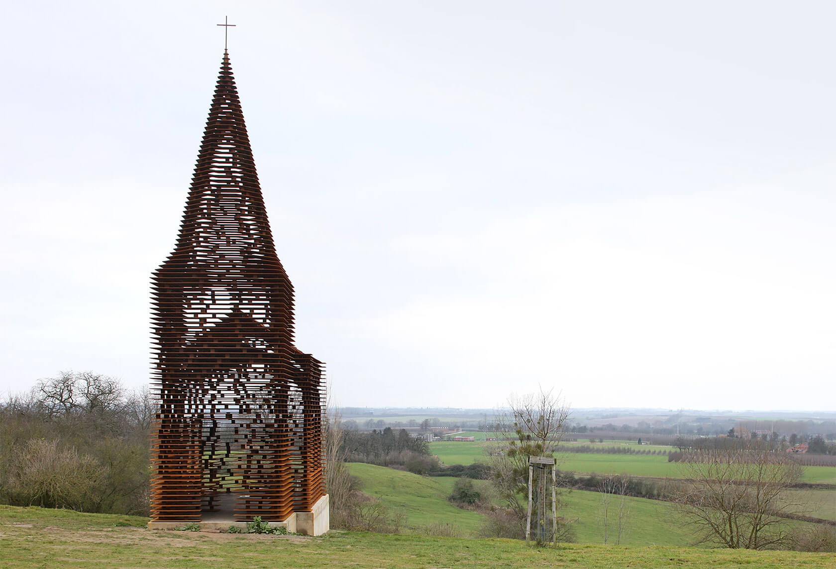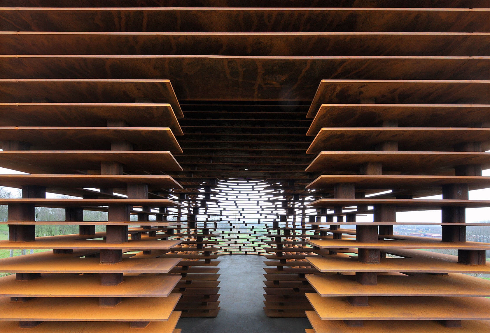 Their most famous work, though, is Reading Between the Lines, from 2011. This chapel made of stacked steel plates acts as a large-scale optical illusion: solid from afar, but increasingly transparent as you approach, dissolving into the landscape like a mirage. A more recent highlight, Inverse Ruin (completed this year), flips the idea of preservation inside out. Temple-like fragments float inside a geometric scaffolding frame, creating the sensation of stepping into the outline of a ruin rather than its remains.